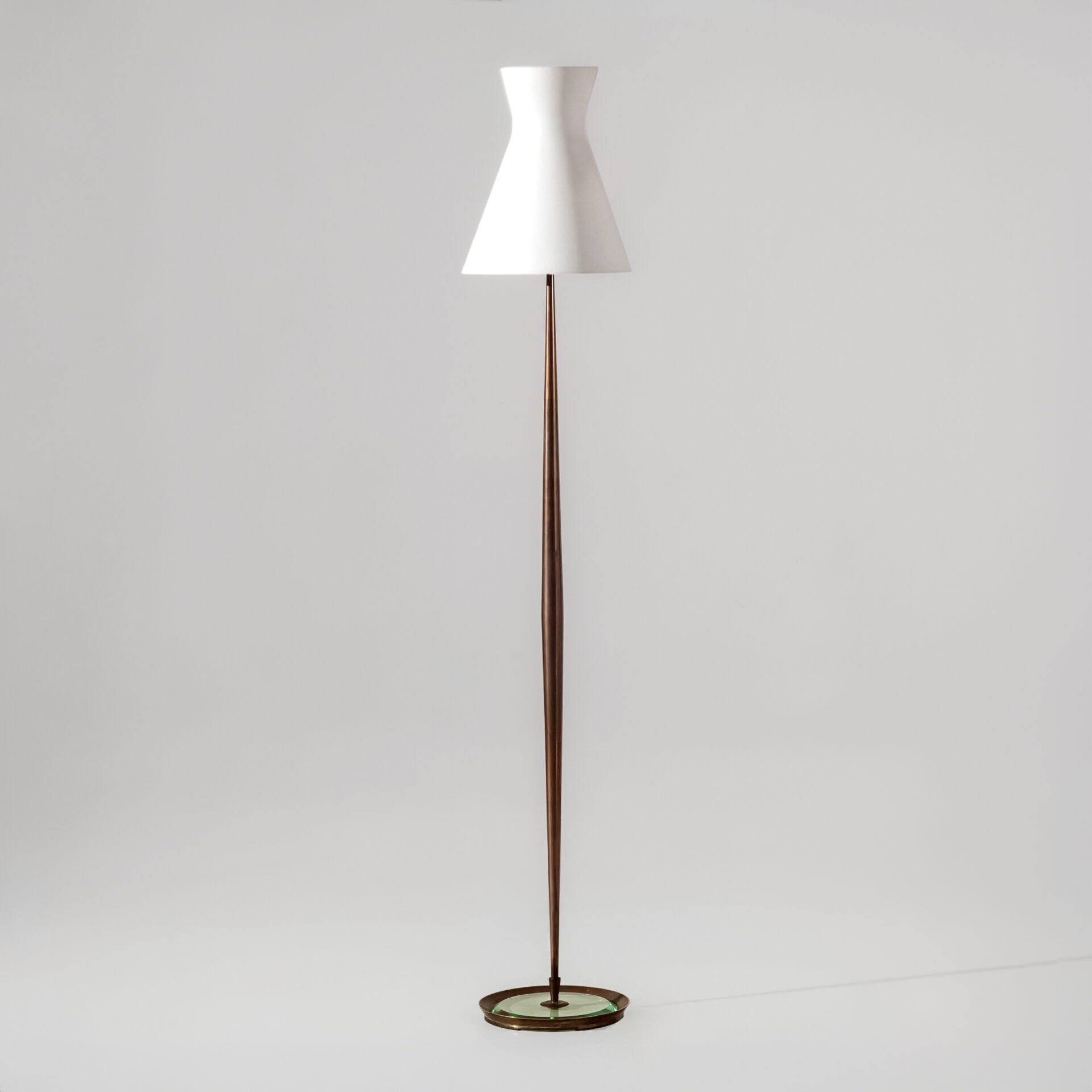 Max Ingrand (1908-1969) Floor lamp Brass, bevelled glass & frosted glass Model 2156 Produced by Fontana Arte c. 1960 Italy