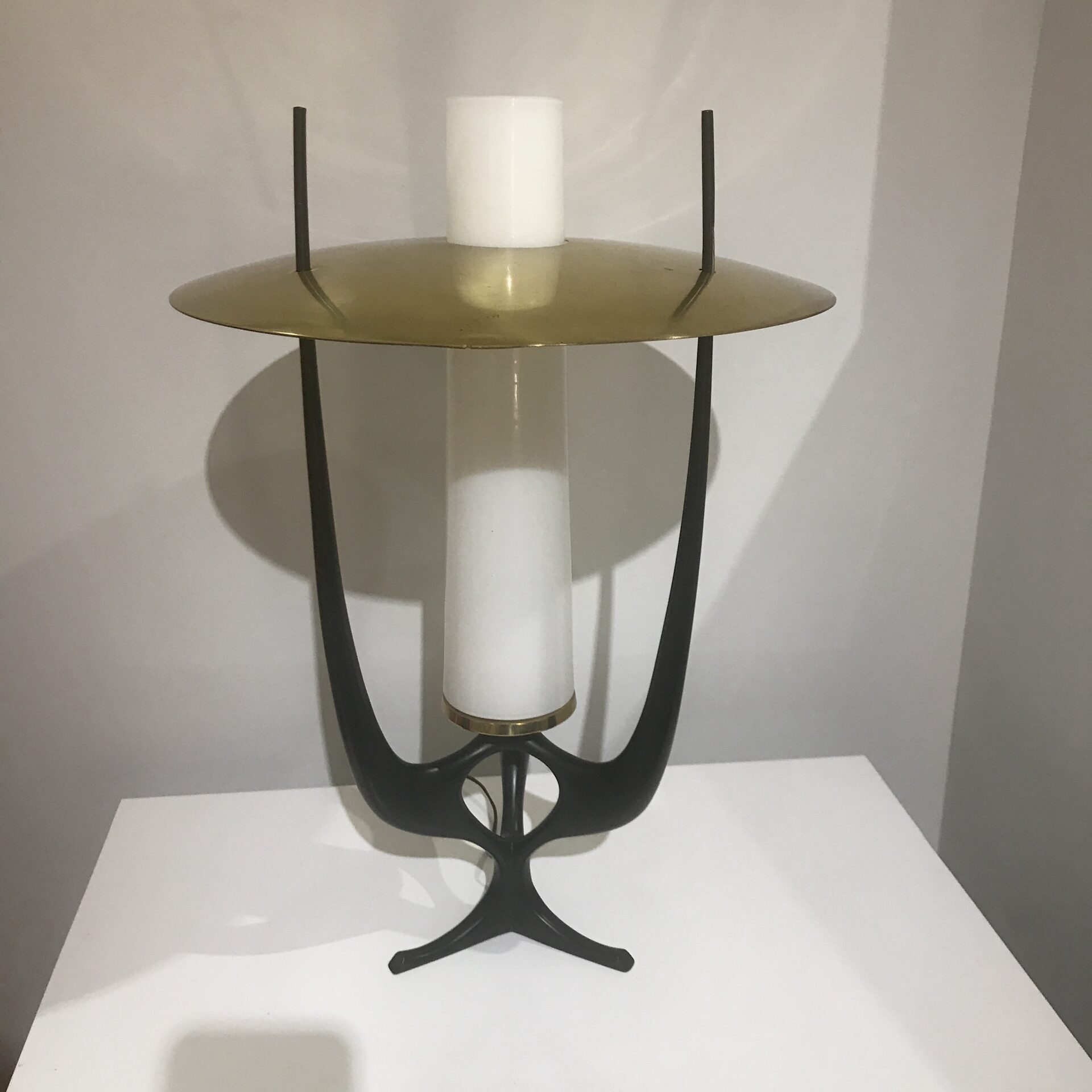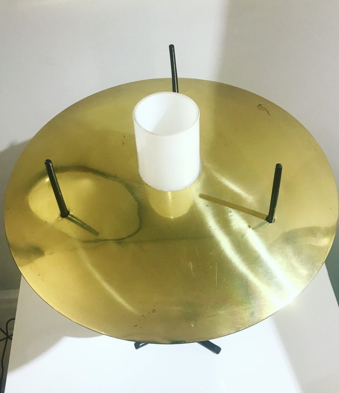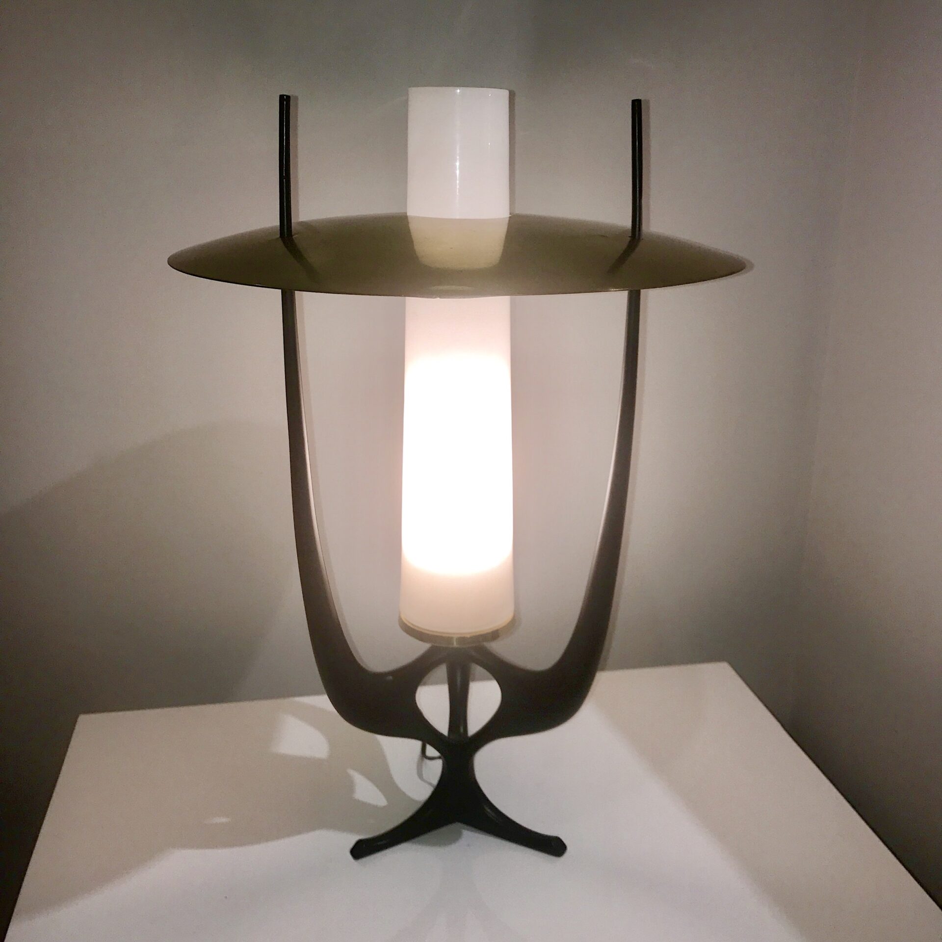 Painted metal, brass and opaline glass