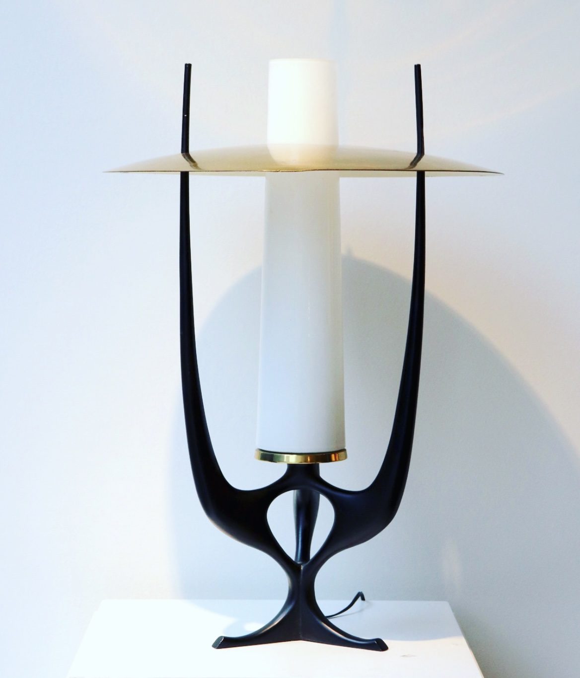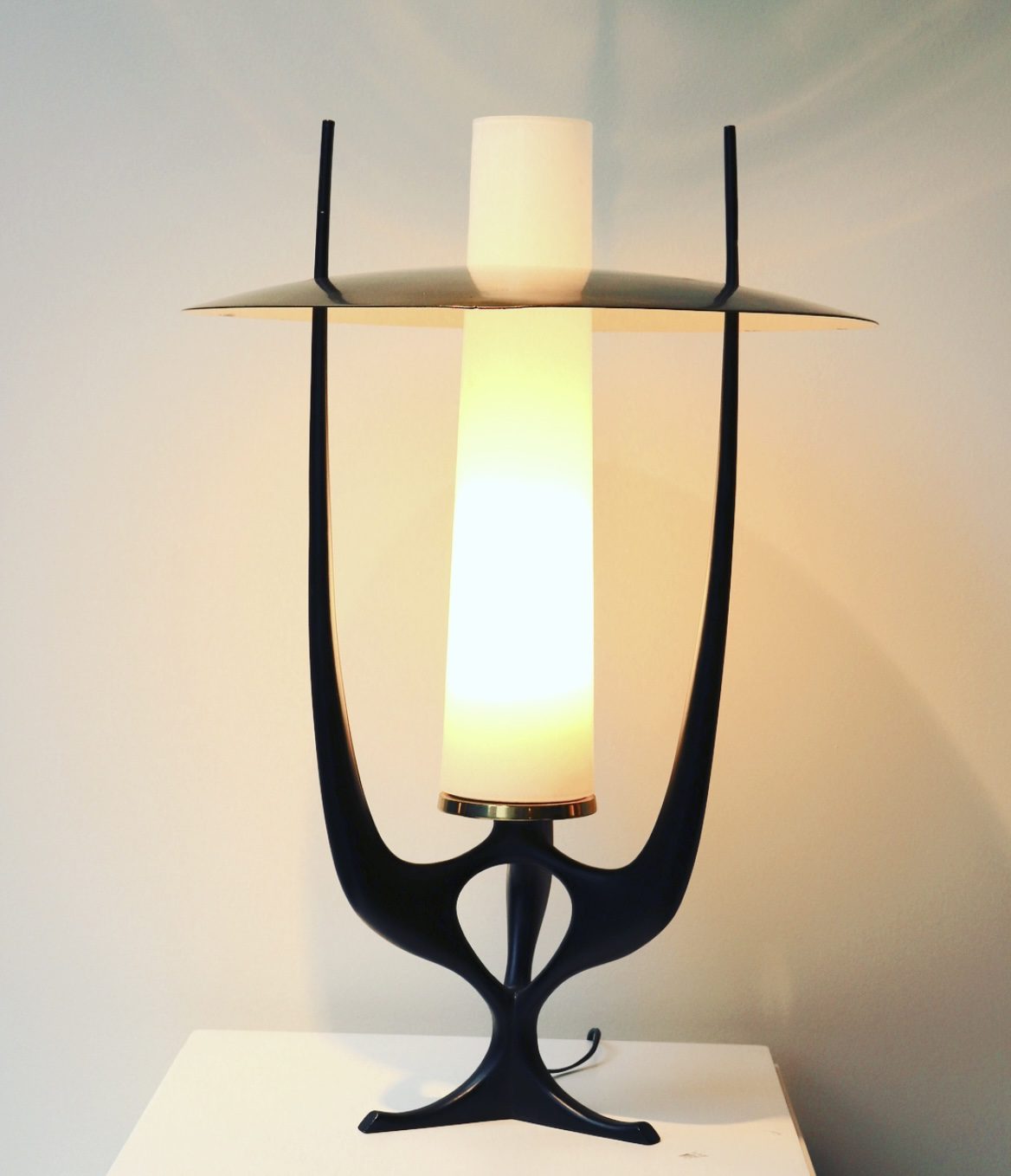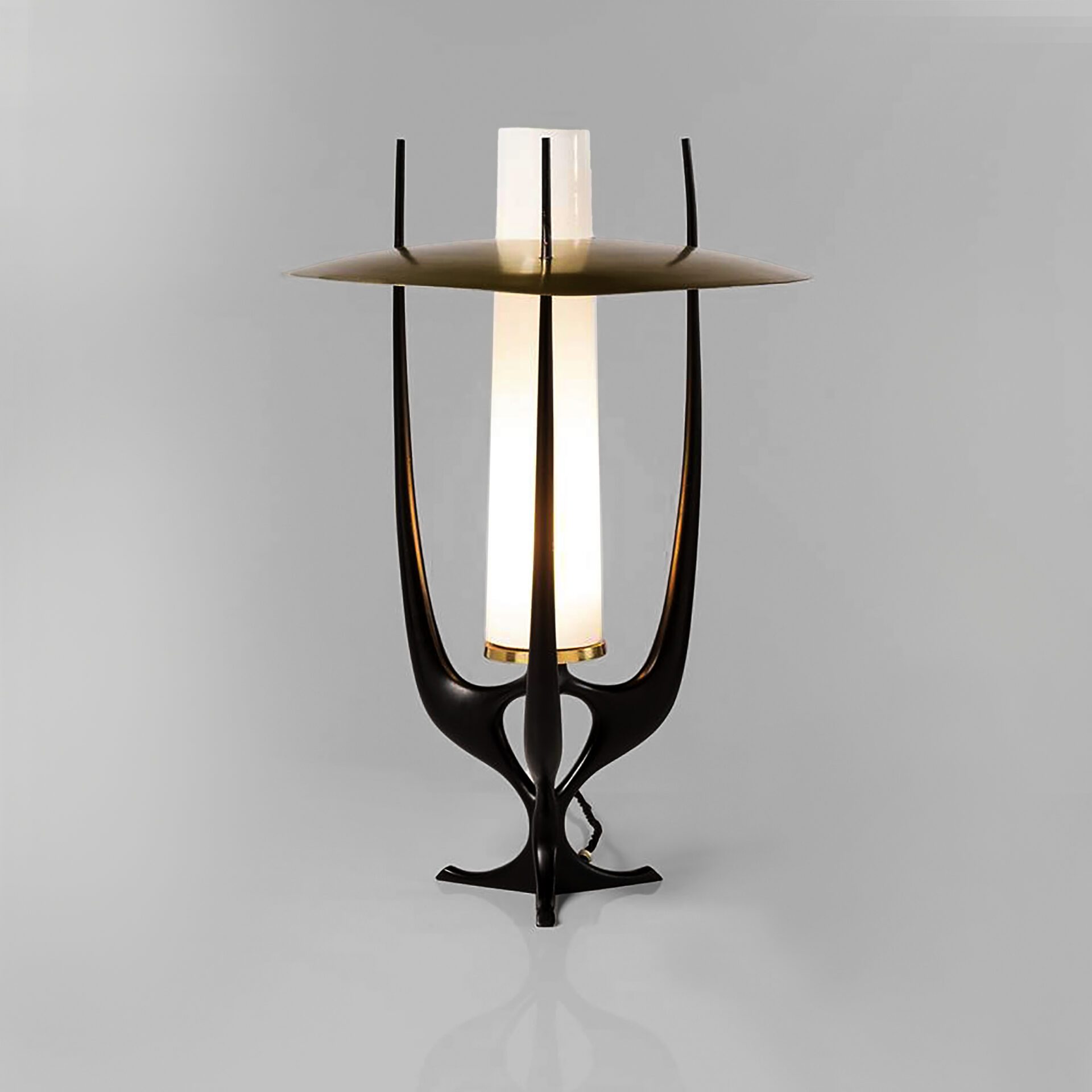 Painted metal, brass and opaline glass