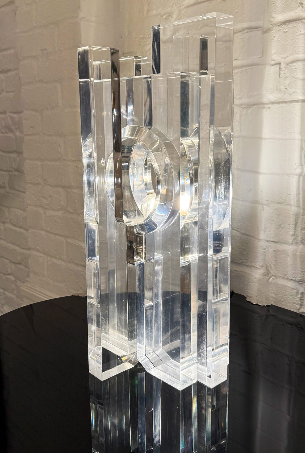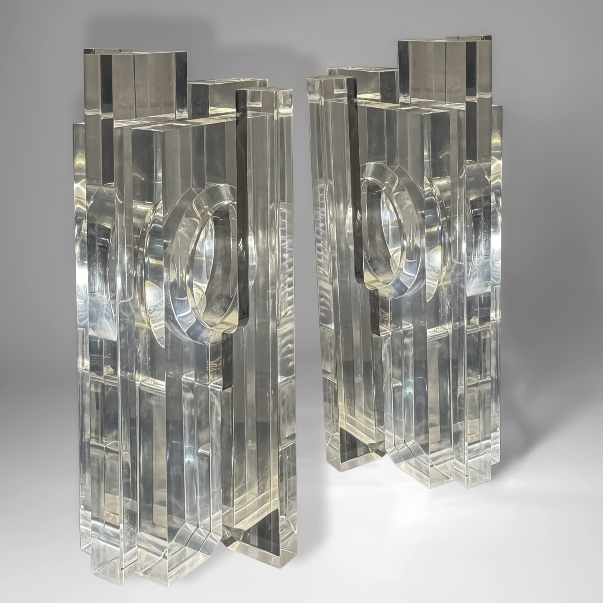 Sandro Petti (1927-2022) Pair of space age table lamps Lucite and chrome-plated metal, composed of interlocking elements Produced by Angolo Metal Arte Retailed by Maison Jansen c. 1975 Italy