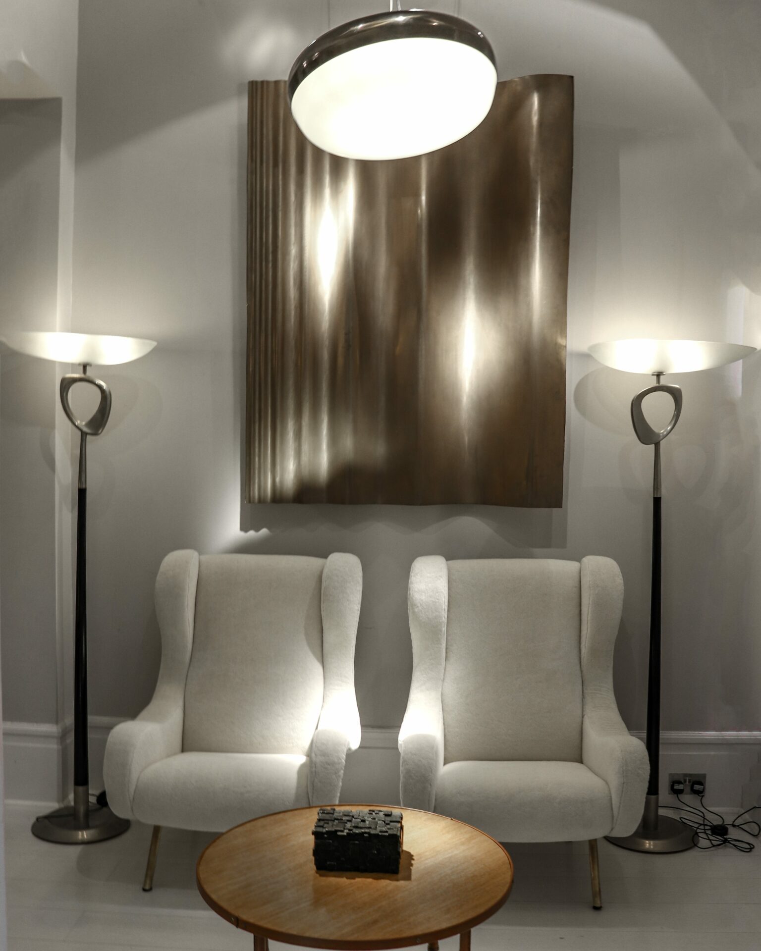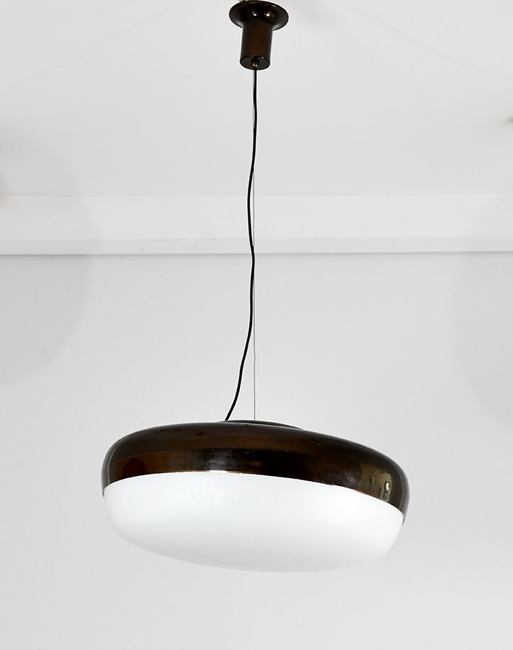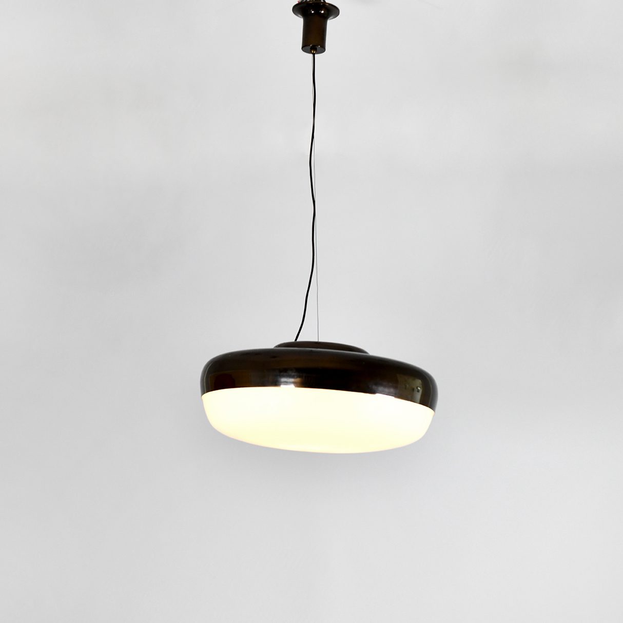 Stilnovo Suspension light Bronzed metal and opaline glass c. 1960 Italy