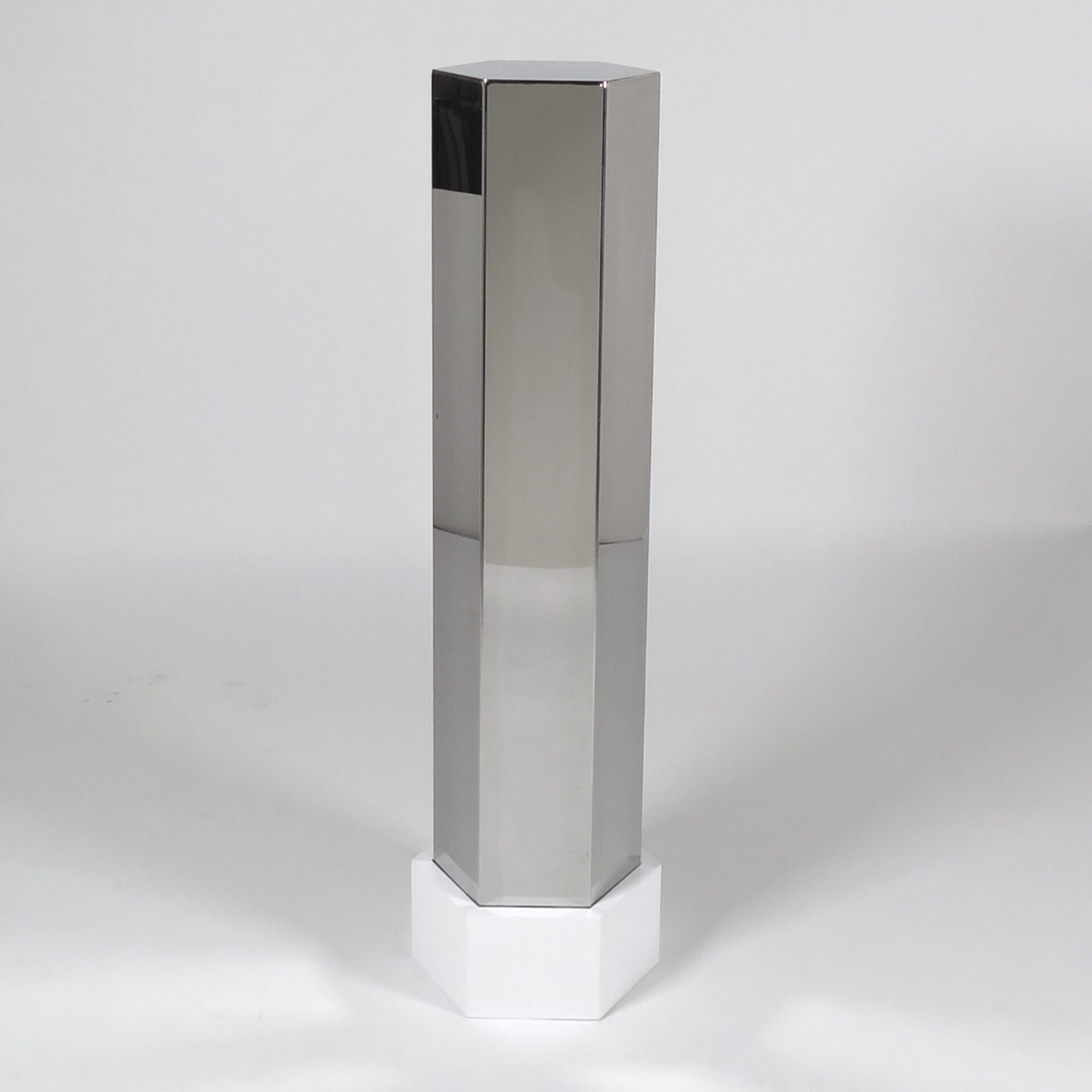 Italian School Hexagonal display pedestal Mirror finished chrome and white lacquered base c. 1970 Italy