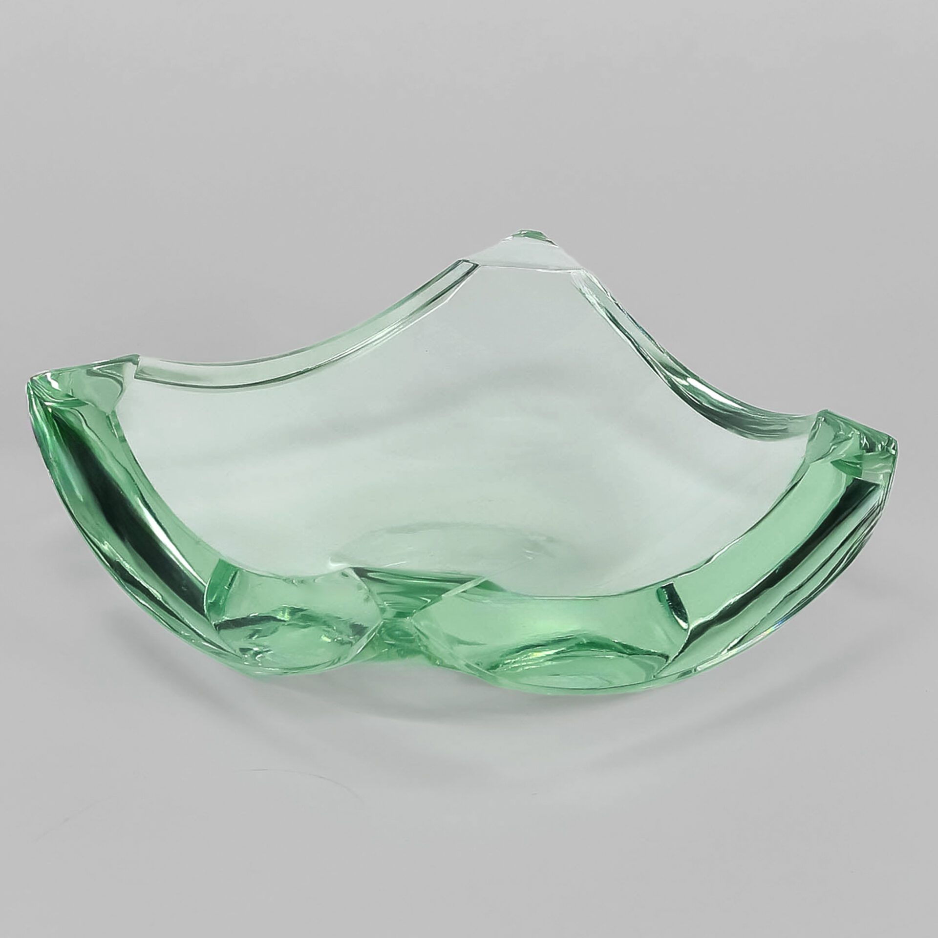 Erwin Walter Burger (1909-1982) Glass dish / Vide poche Bevelled and cut clear glass Produced by Fontana Arte c. 1955 Italy