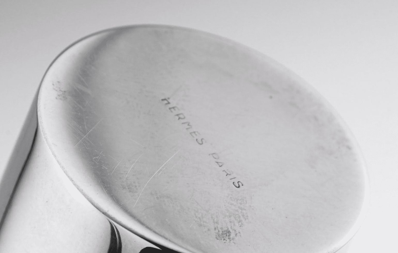 Hermes (1837-) Novelty Canister for wine bottle or tennis balls Bayonet screw locking lid with rope decoration Silver plated metal Possibly a social commission and unique piece Stamped Hermes c. 1960 France