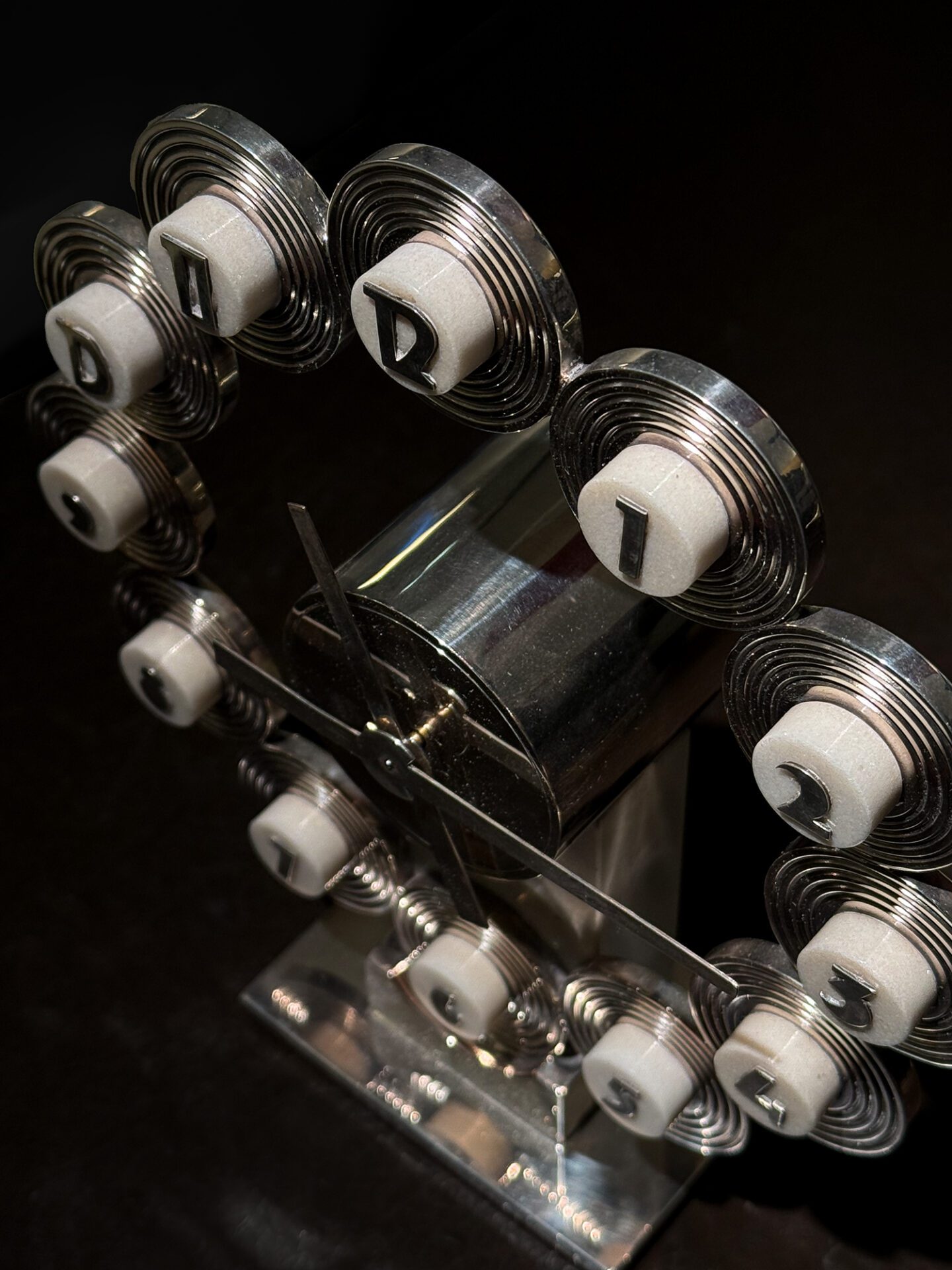 Jean Elysée Puiforcat (1887-1945) Rare ‘Constellation’ clock Silver plated bronze and alabaster Engraved on base ‘JEAN E. PUIFORCAT BRONZE’ 1932 France