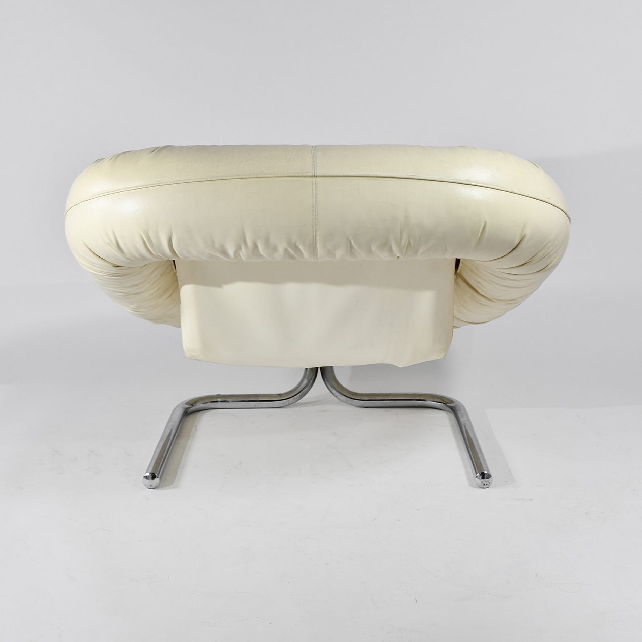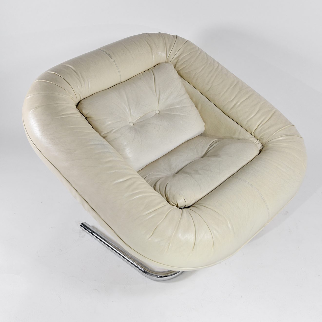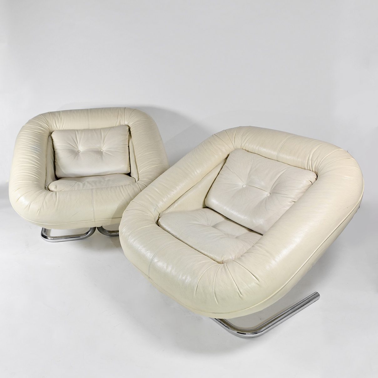 Adriano Piazzesi (1923-2009) Pair of spring lounge chairs, Model “TRE D” Chromed metal and white leather c. 1973 Italy