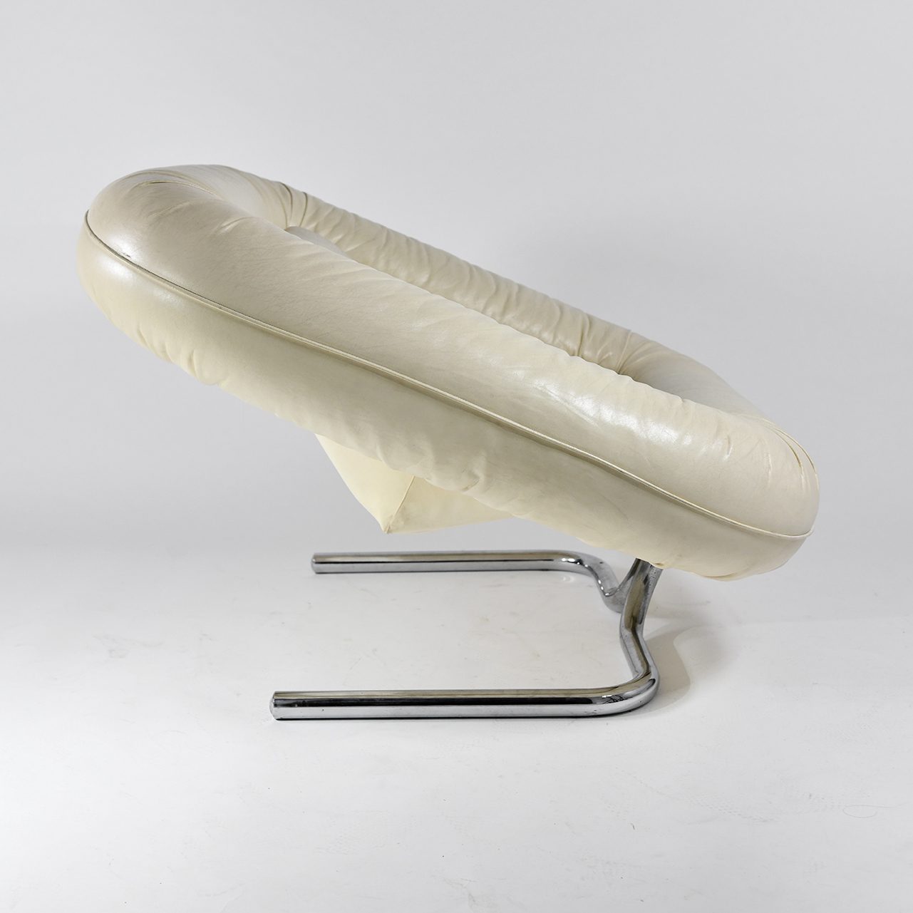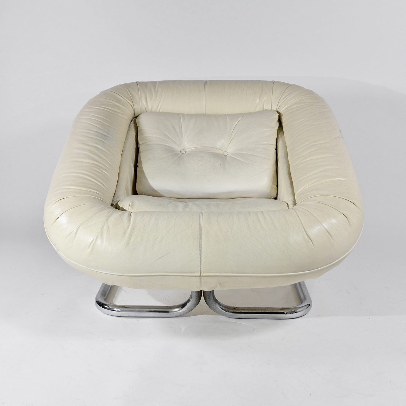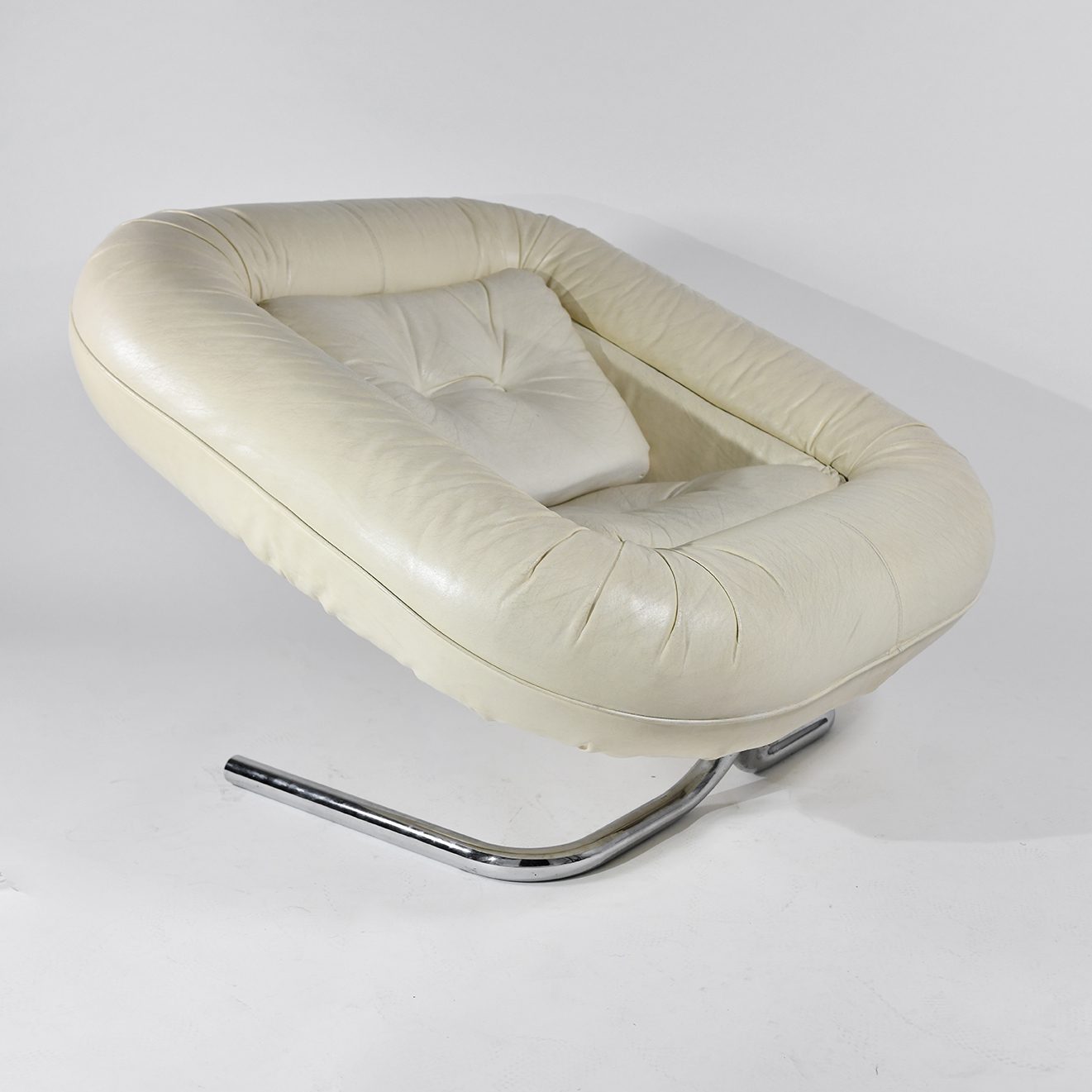 Adriano Piazzesi (1923-2009) Pair of spring lounge chairs, Model “TRE D” Chromed metal and white leather c. 1973 Italy