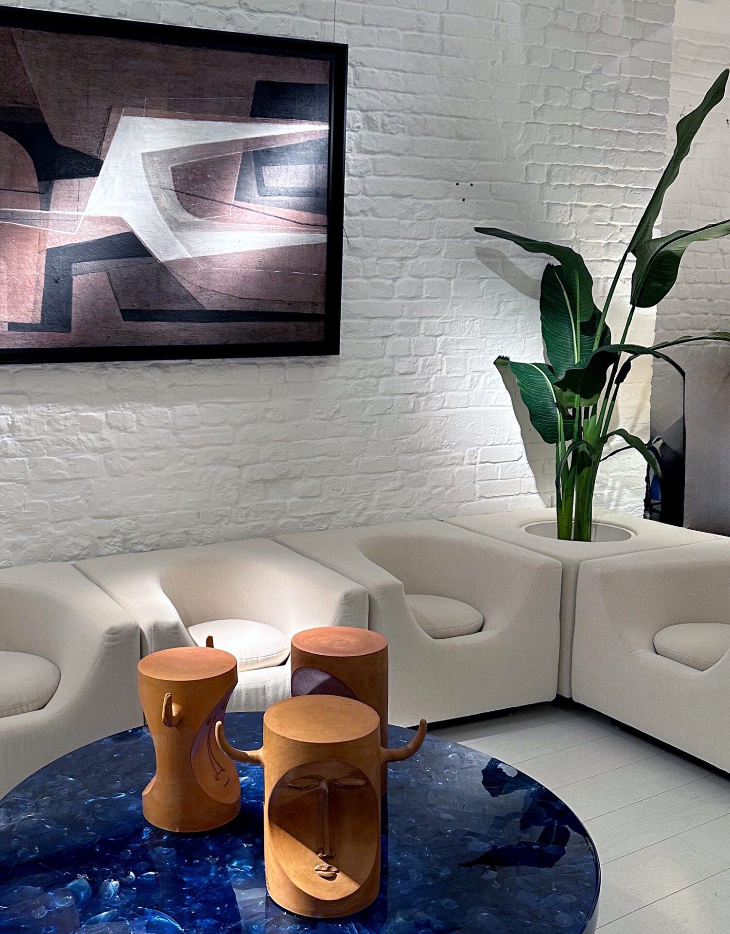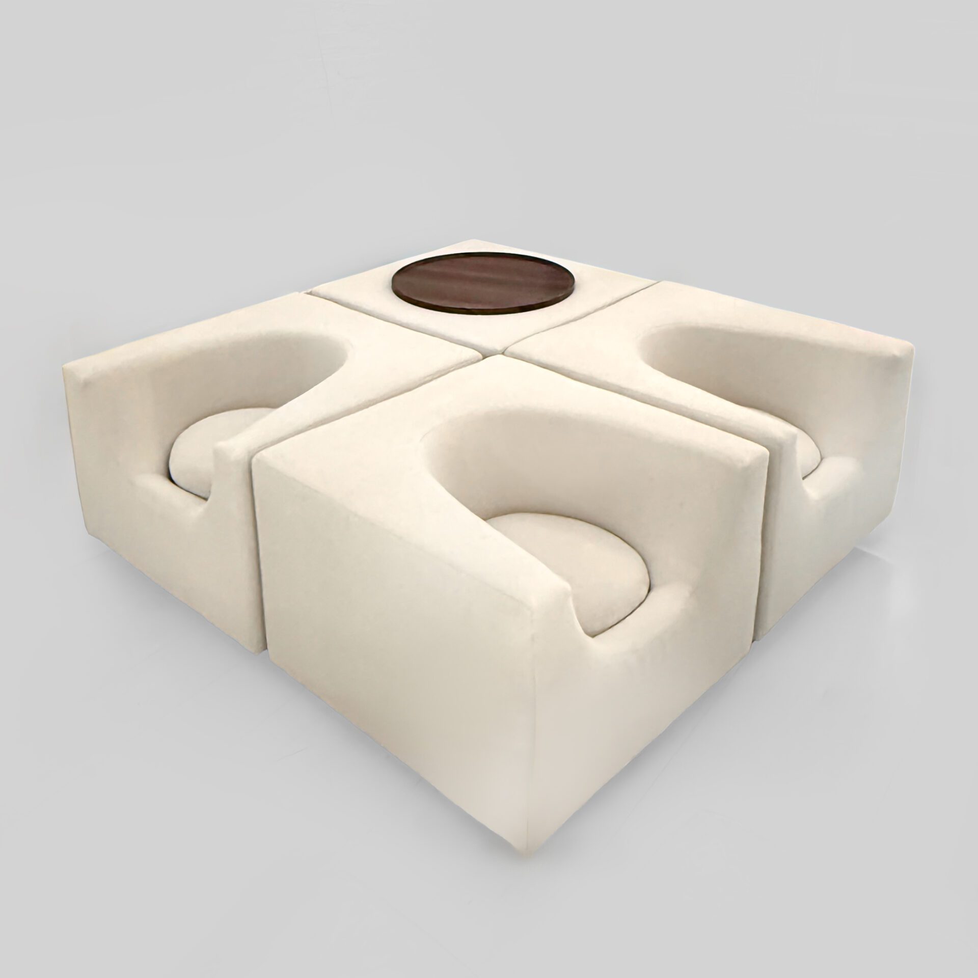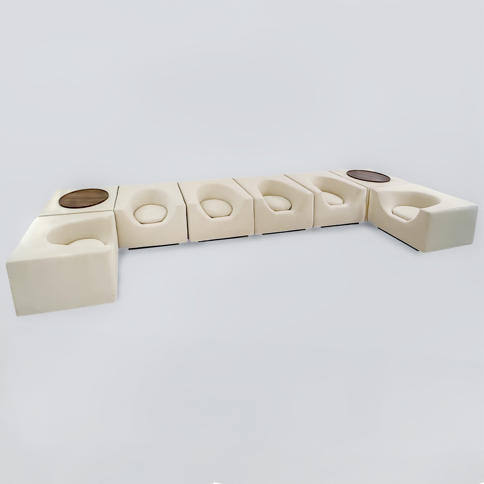 Set of six Elliptique armchairs, and two side table/planters
