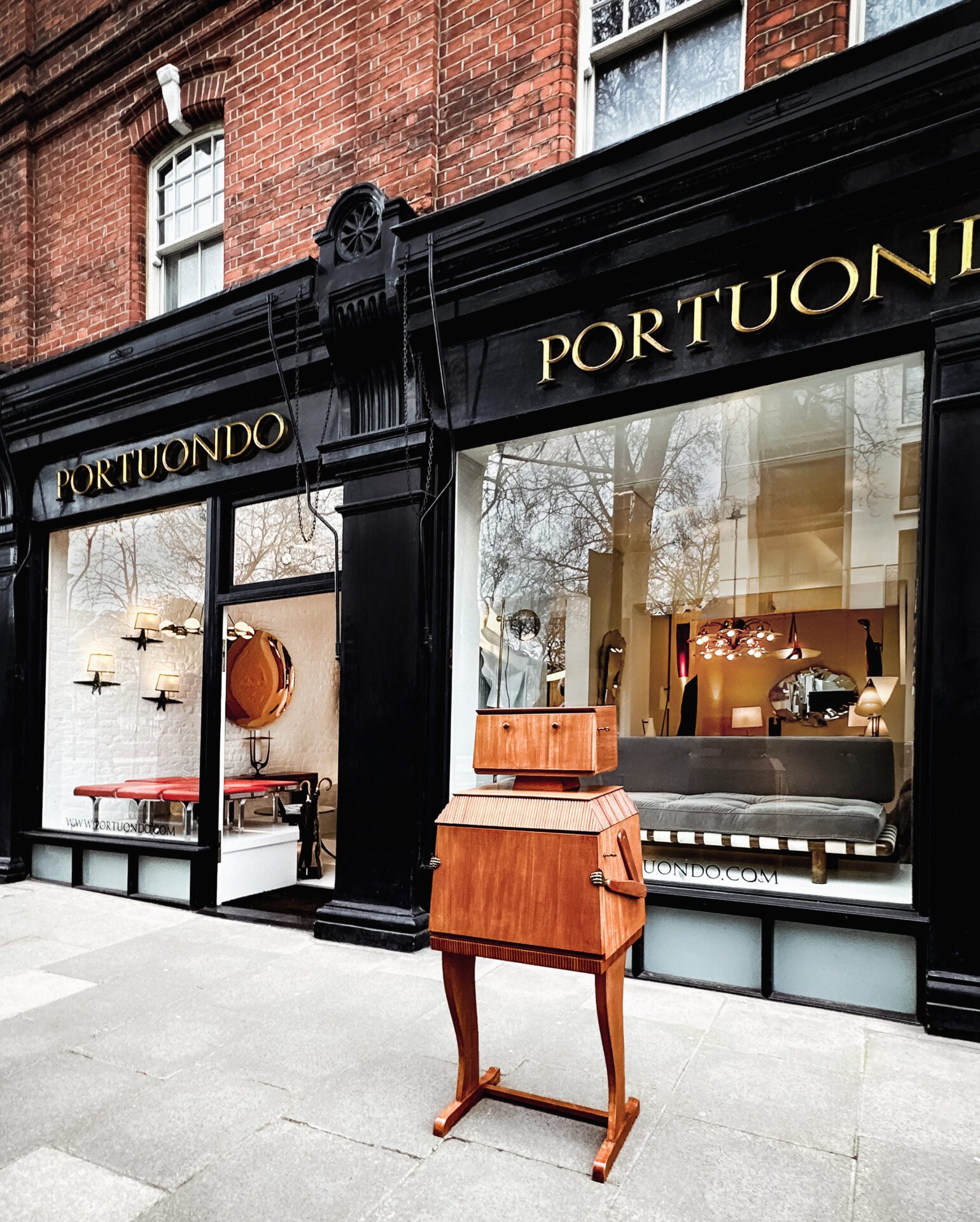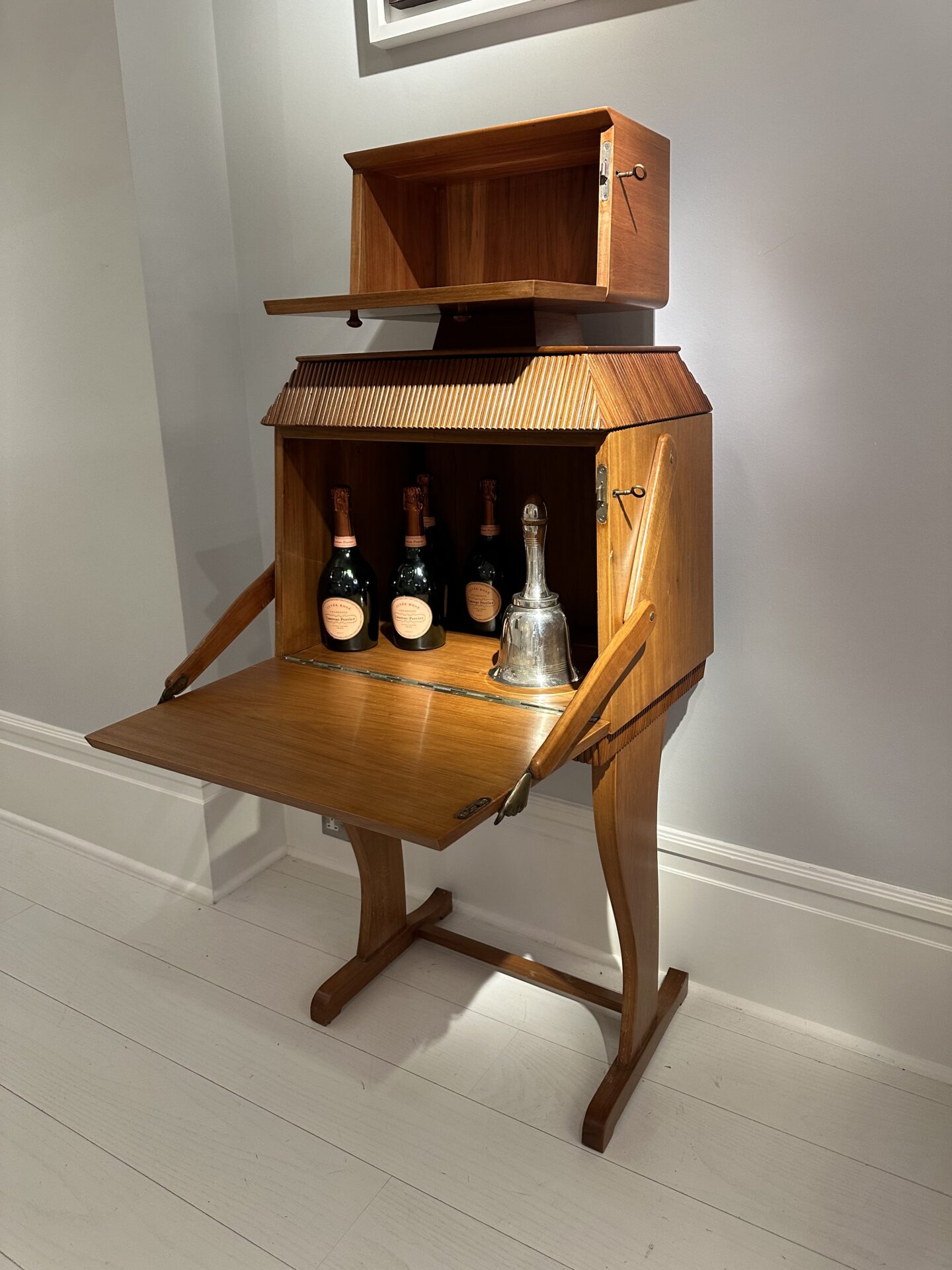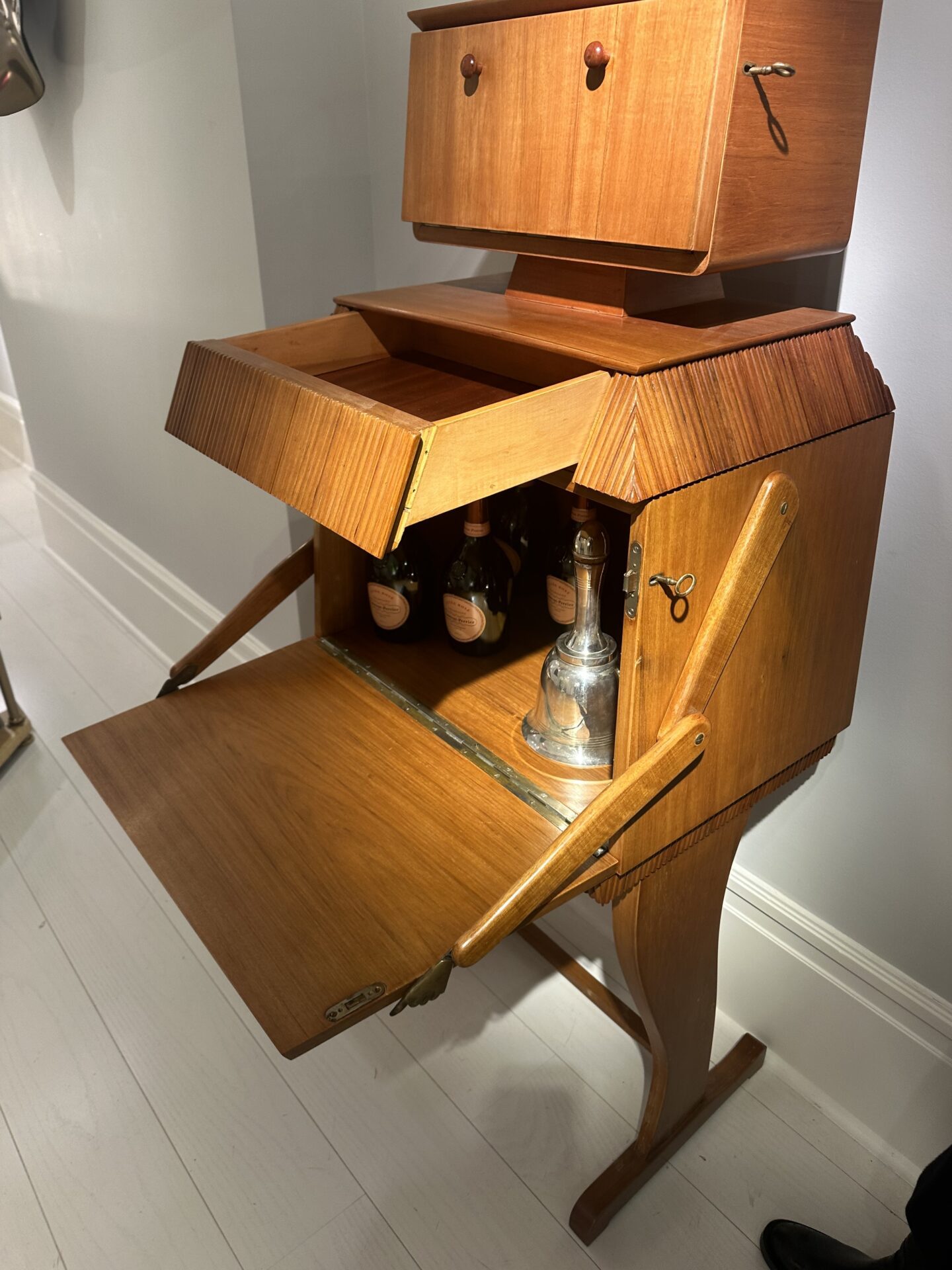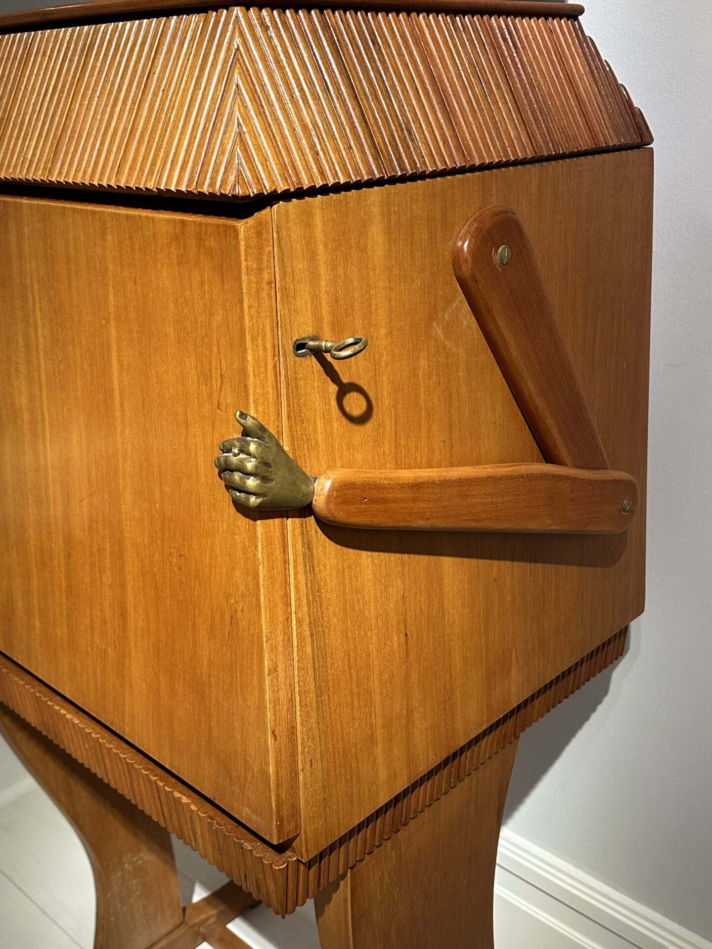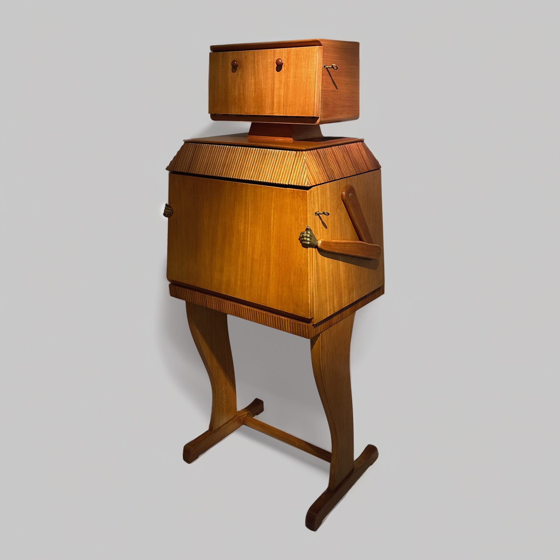 Borghesani Rare robot bar Walnut, cast brass and mirrored glass Edited by Borghesani SRL, Verona c. 1969 Italy