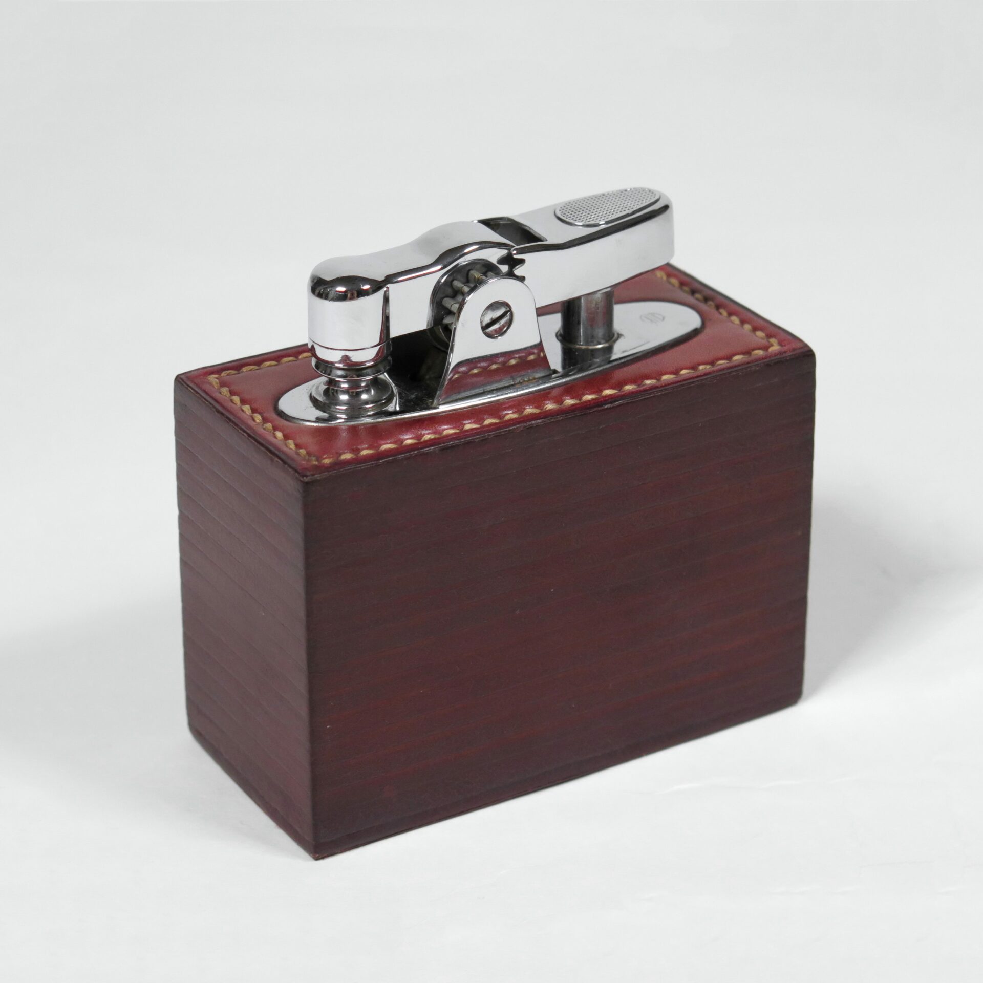 Leather Lighter Designed by Paul Dupre-Lafon Stitched leather and chromed metal. Lighter by Ronson. Stamped Hermes c 1950. France