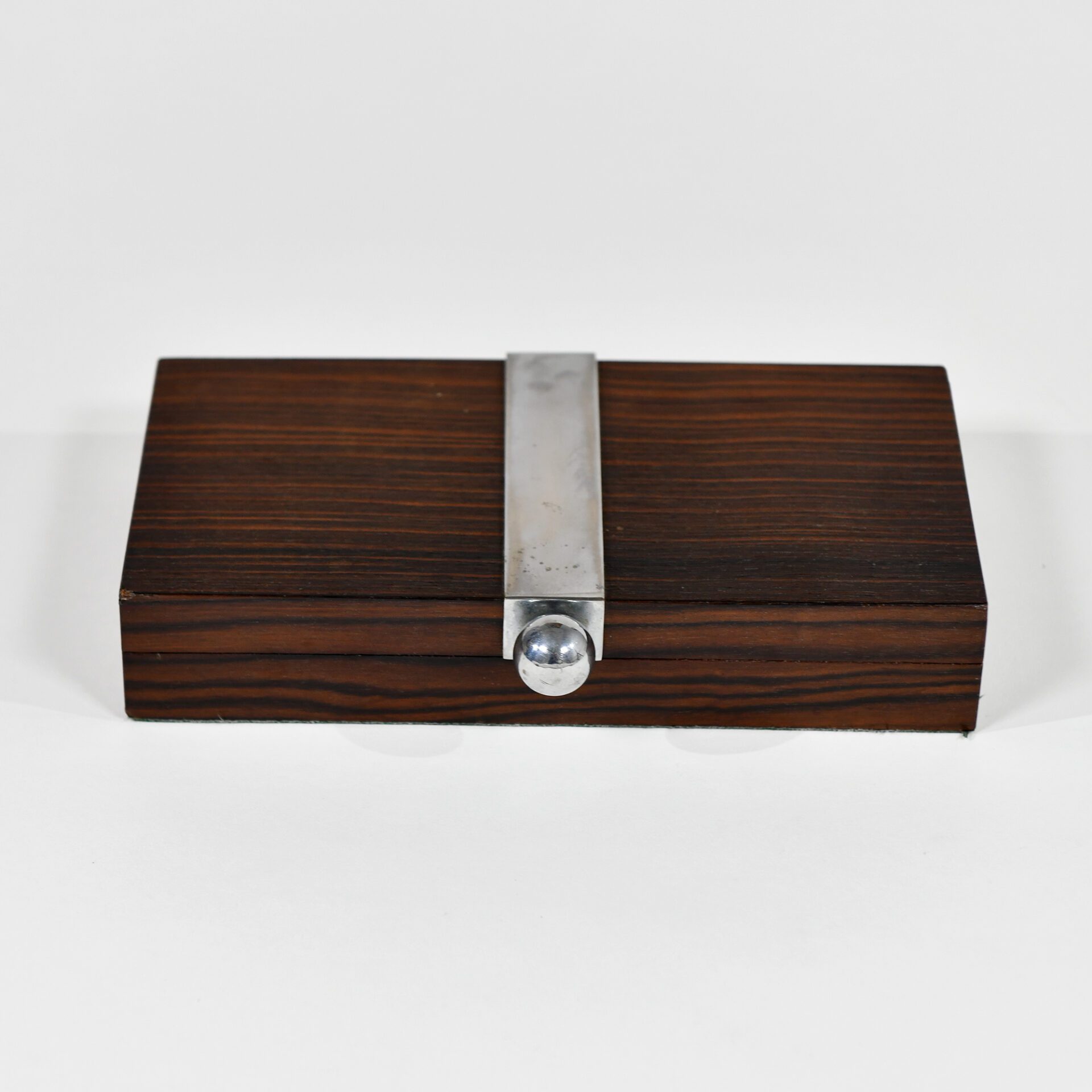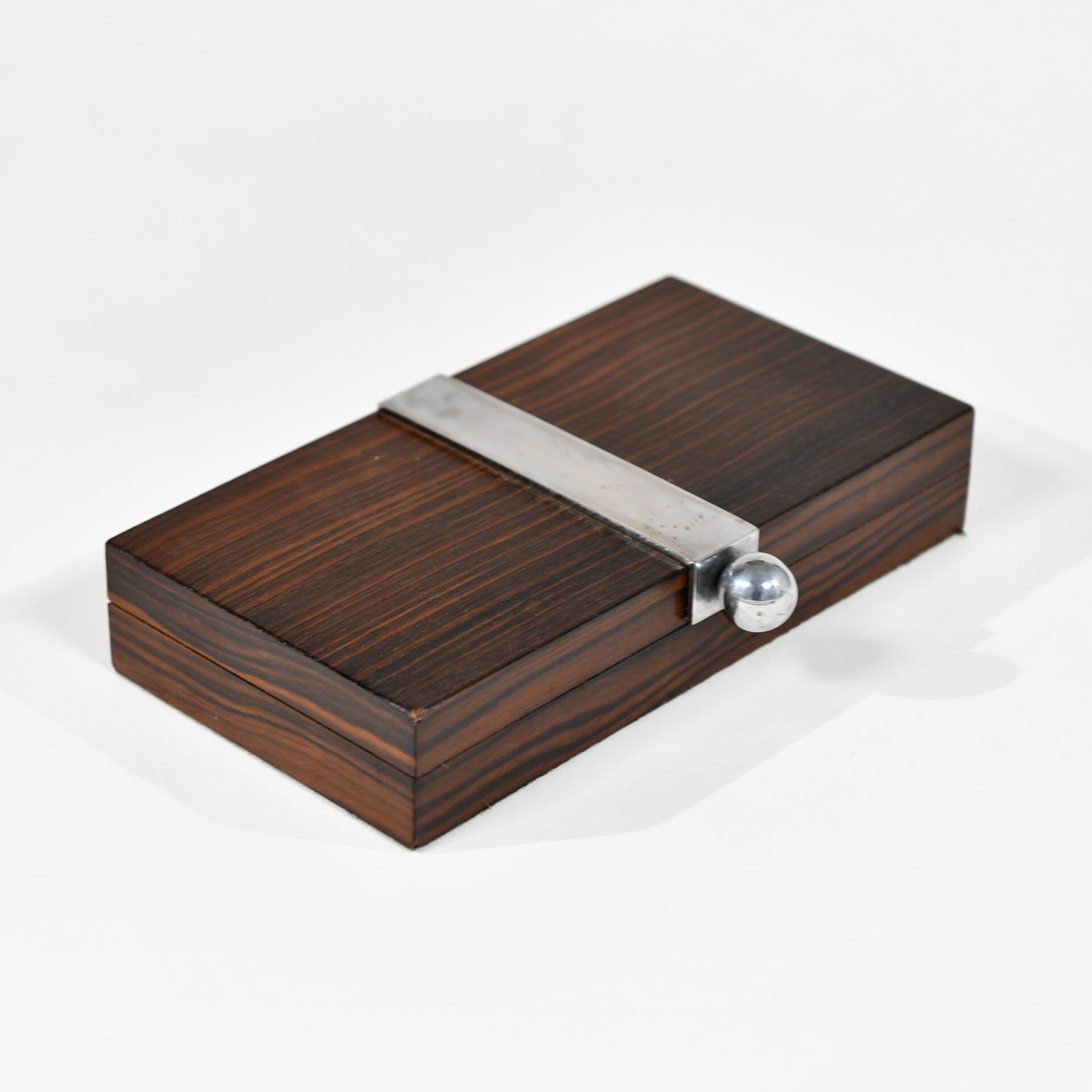 French School Art Deco lidded box Rosewood, oak and chromed metal c. 1935 France