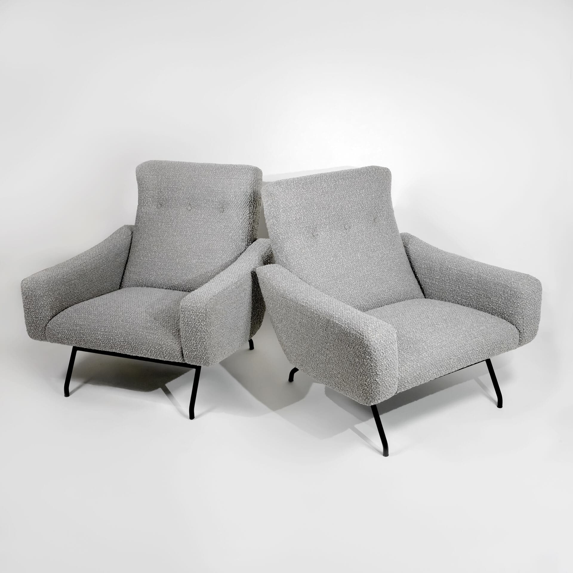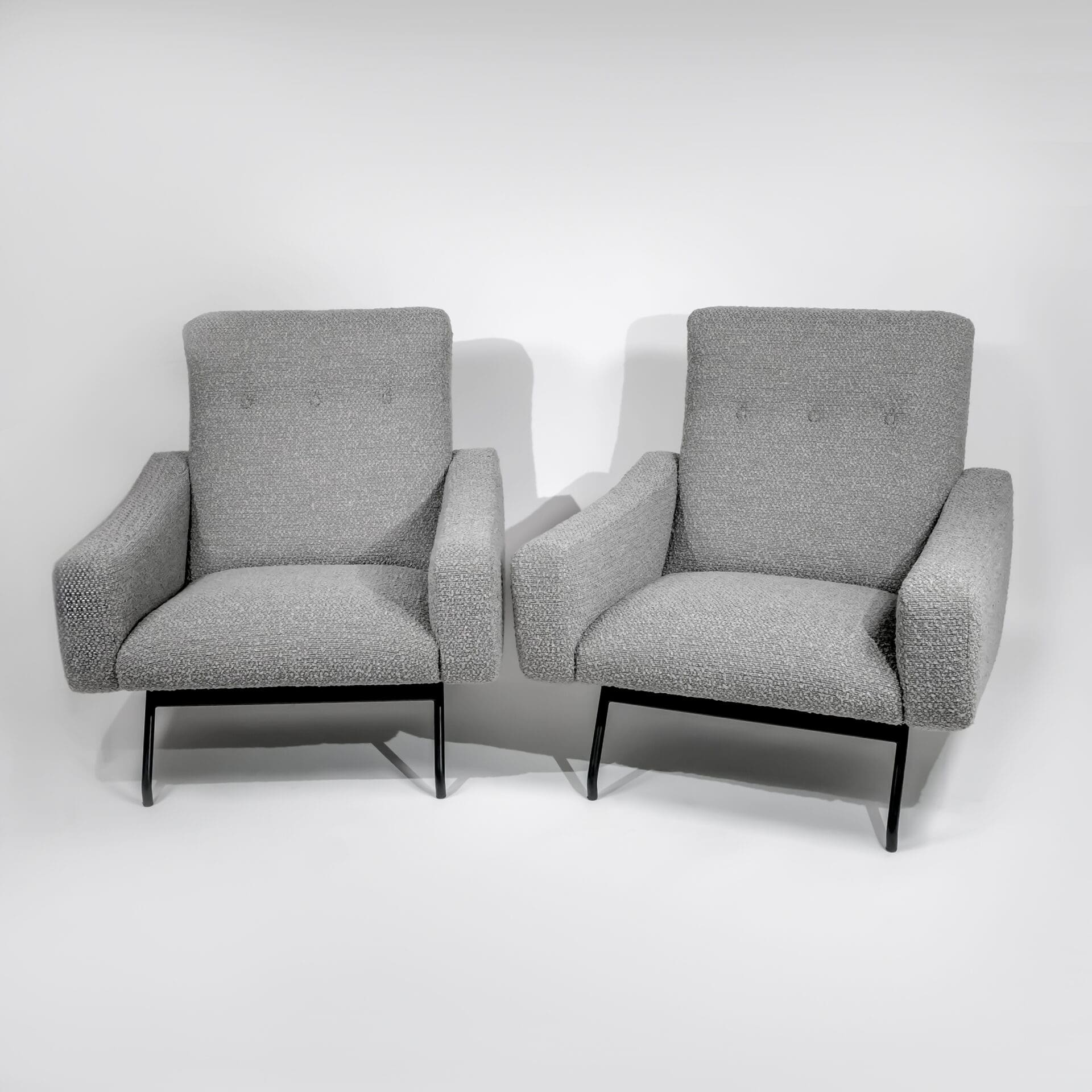 Gilbert Steiner Pair of armchairs, model ‘Galion’ Black painted metal structure Edited by Steiner c.1955 France