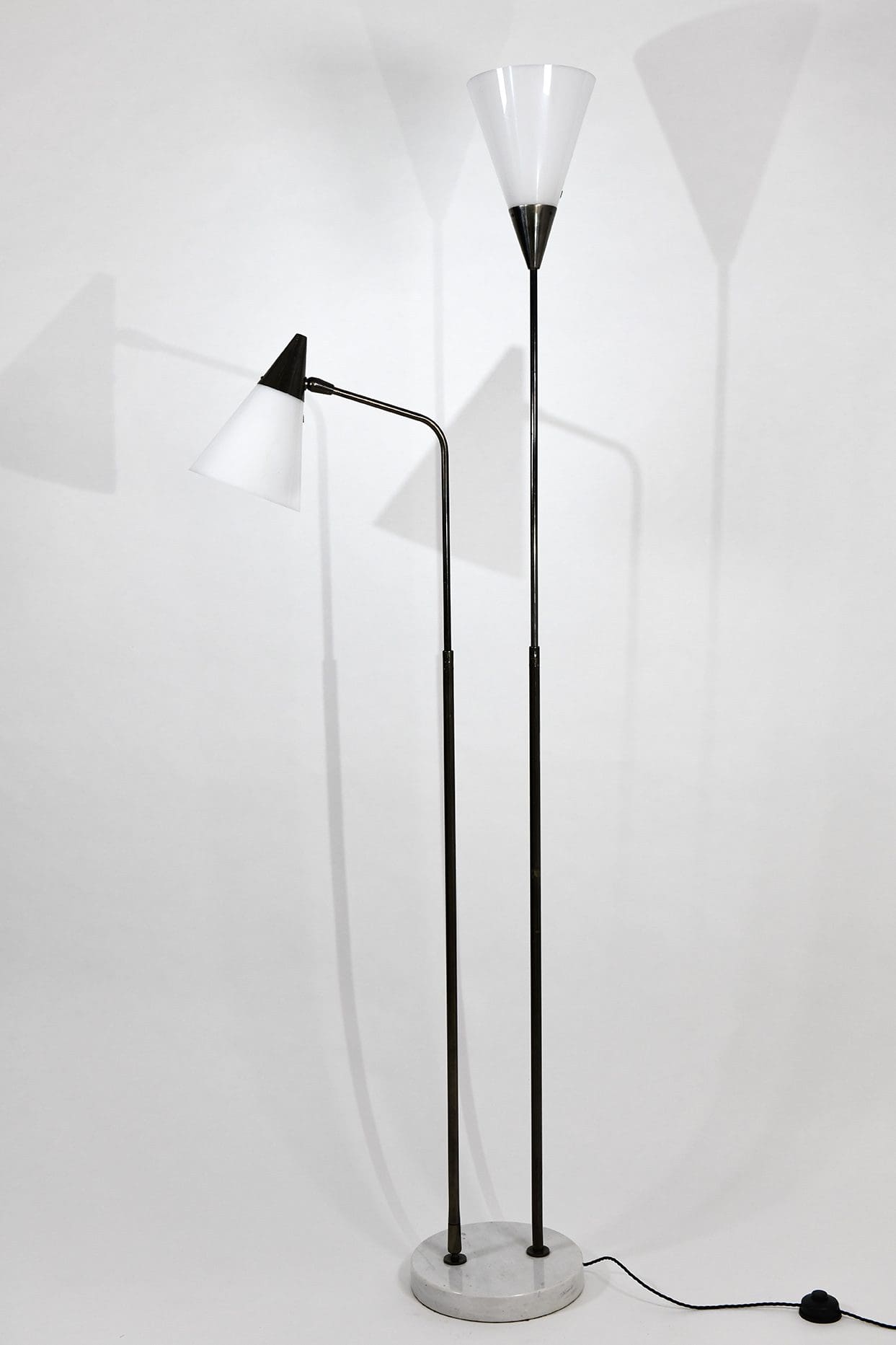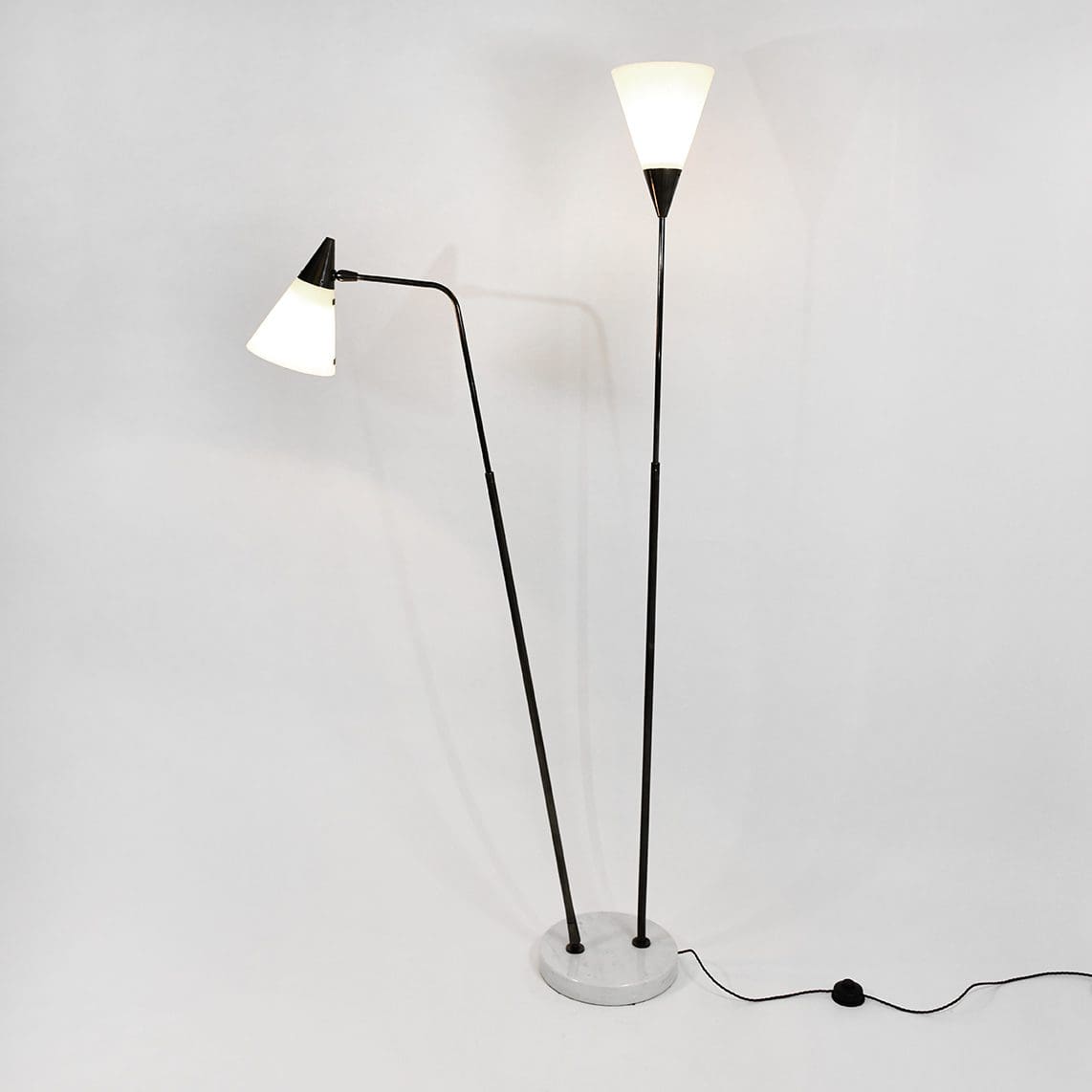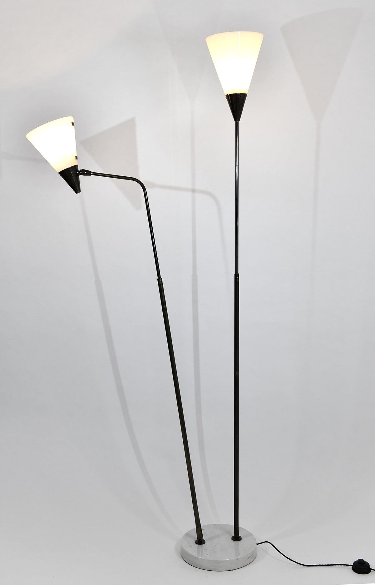 Telescopic and adjustable standing lamp in gunmetal, perspex and marble