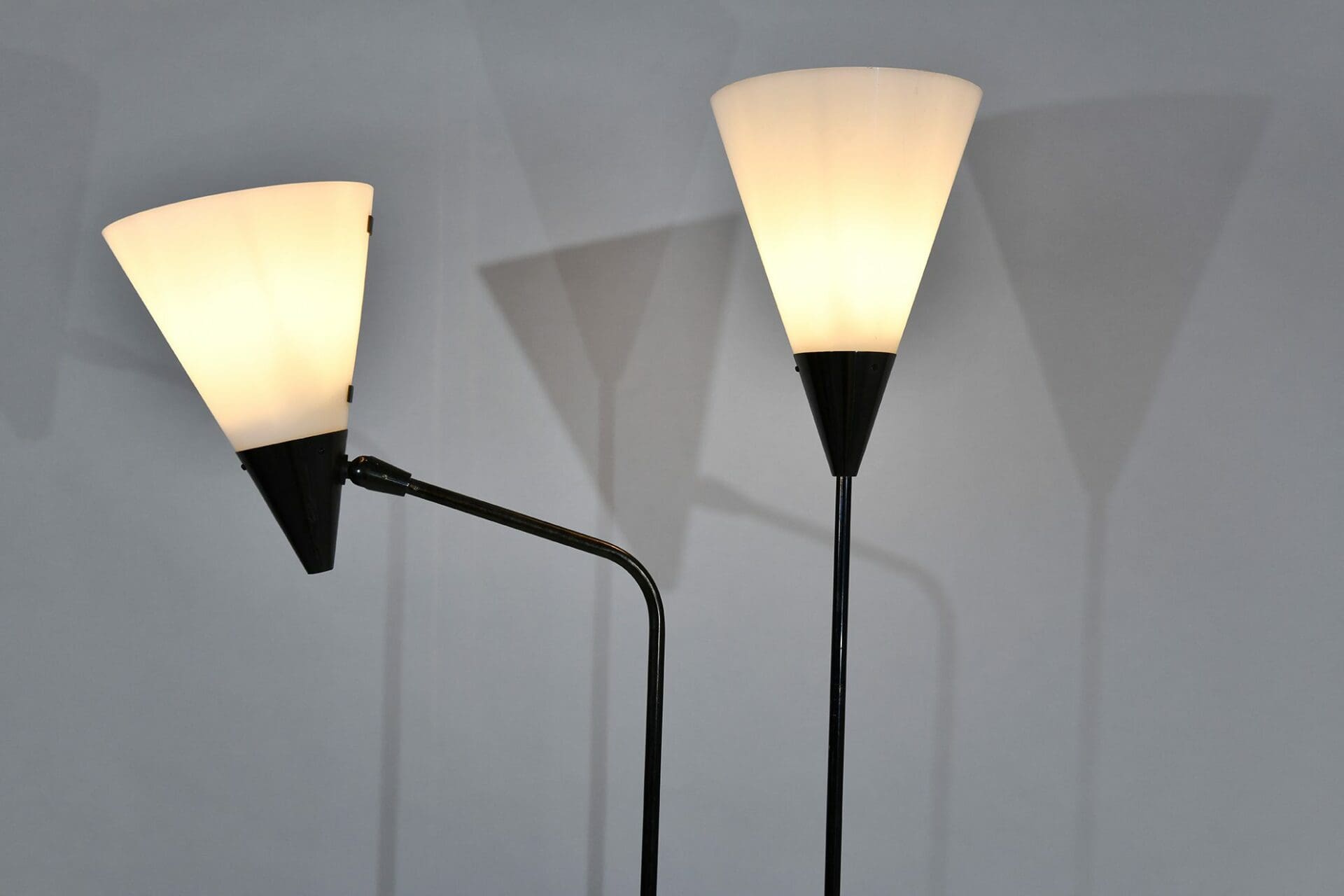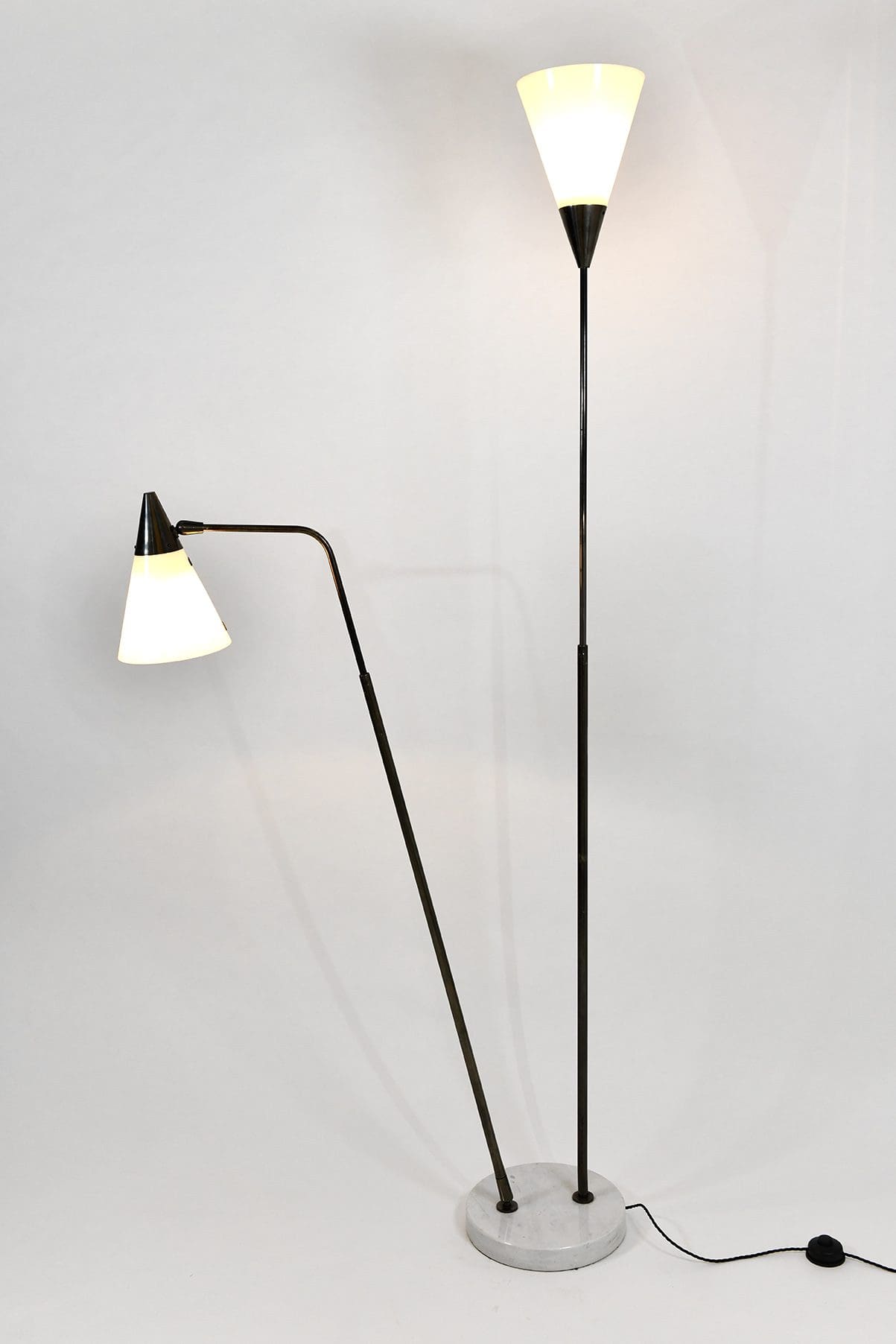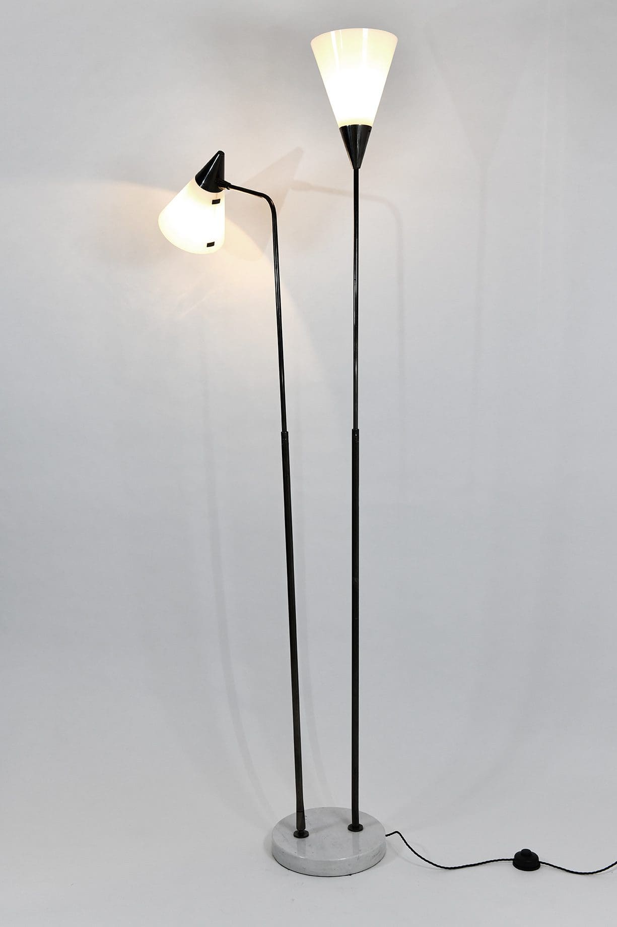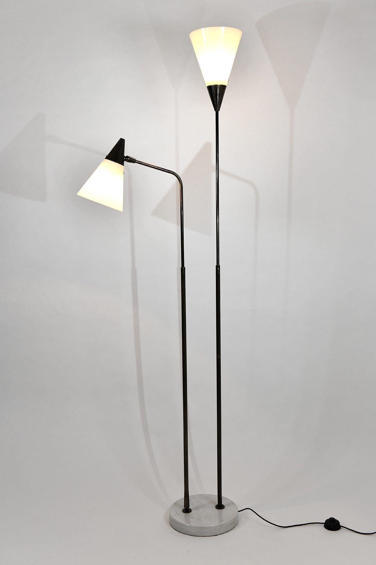 Telescopic and adjustable standing lamp in gunmetal, perspex and marble