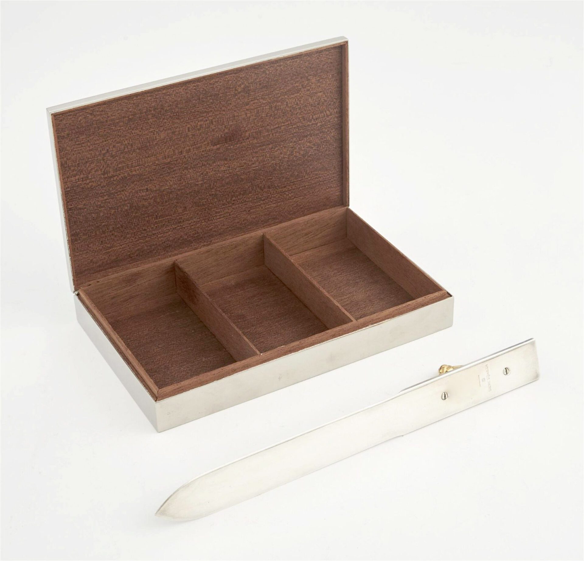 Hermes (1837-) Box & letter opener with horse bit Silver plate & parcel gilt, wood interior Stamped Hermes c. 1960 France