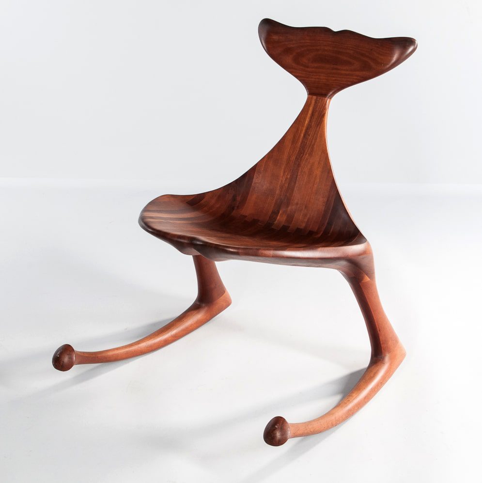 Hunter Studios Whale Fluke Rocking Chair, Cherry wood dated and marked with Hunter brand. 1977 San Diego, USA