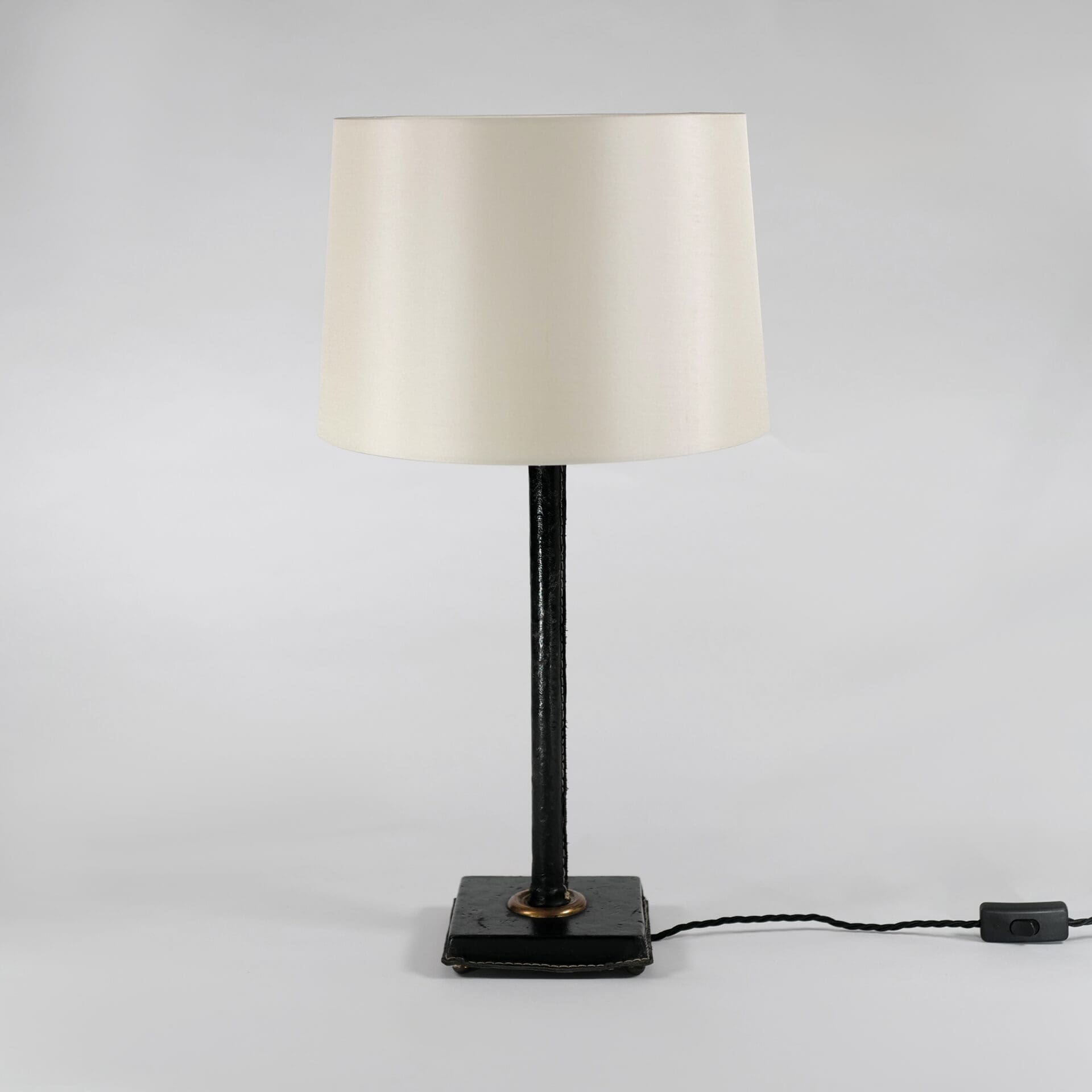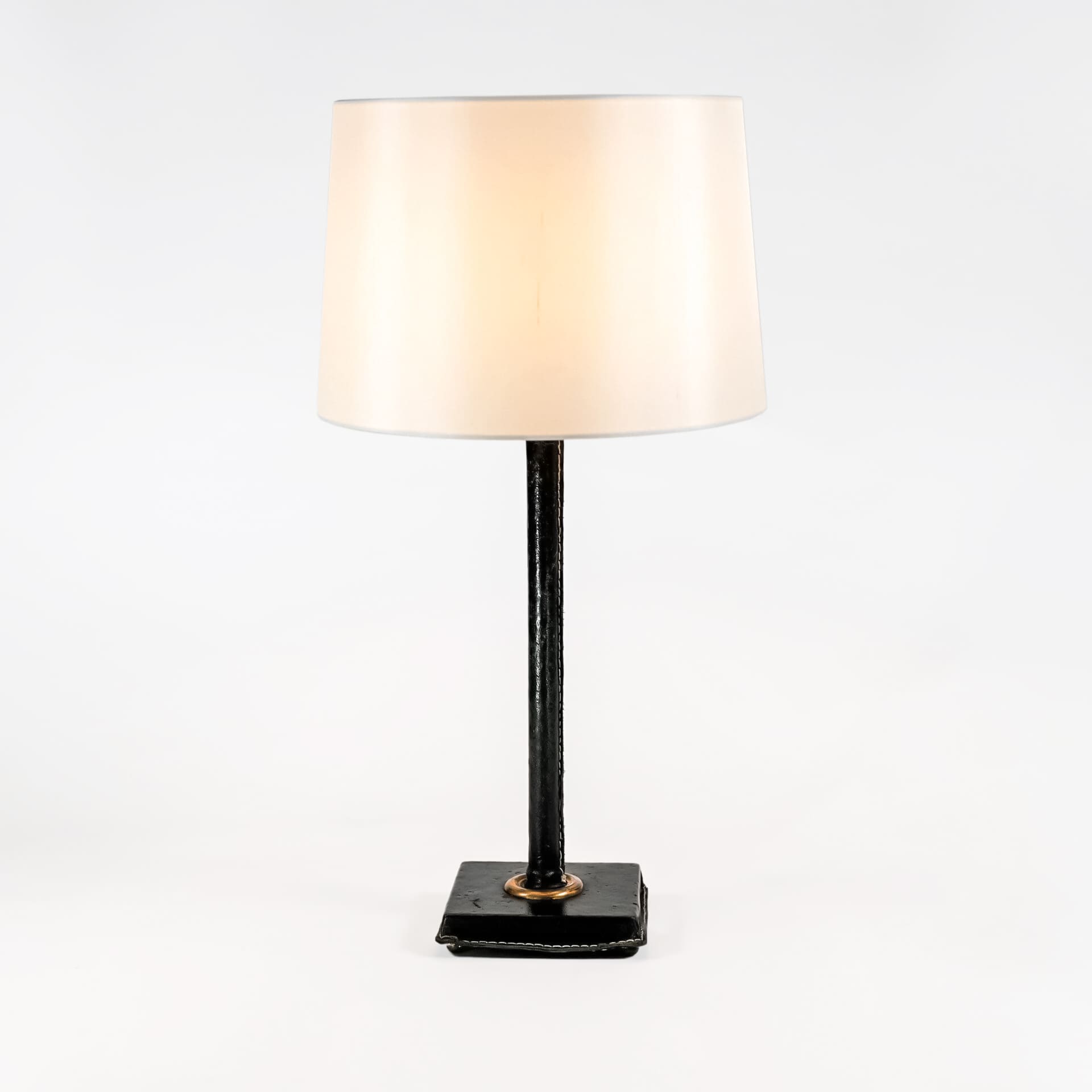 In the manner of Jacques Adnet (1900-1984) Table lamp Steel, stitched leather and brass c. 1960 France