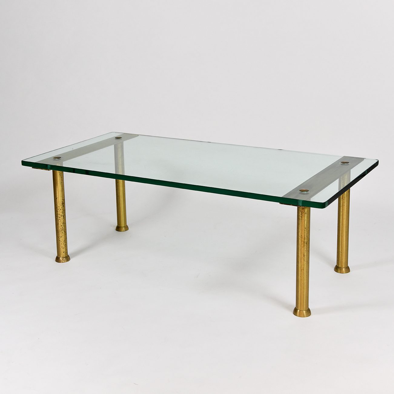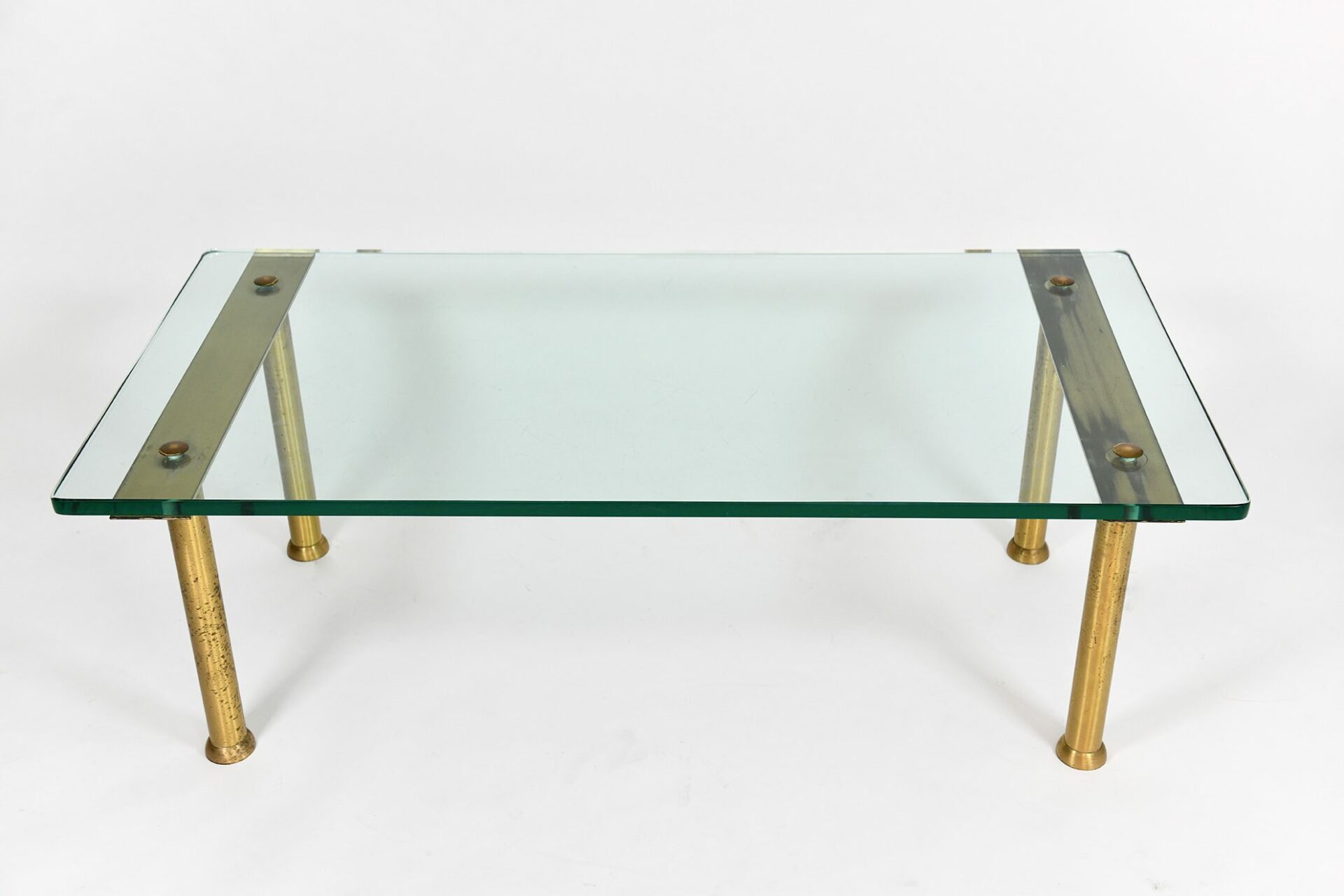 Elegant coffee table Brass & polished glass c. 1965 Italy