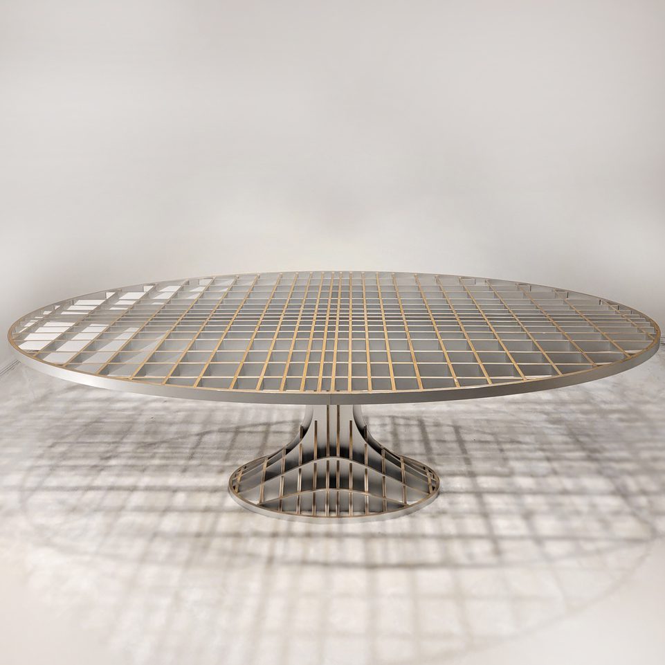 Italian School Oval table Laminated wood, aluminium and glass Rare architect designed table, unique piece Italy c 1985