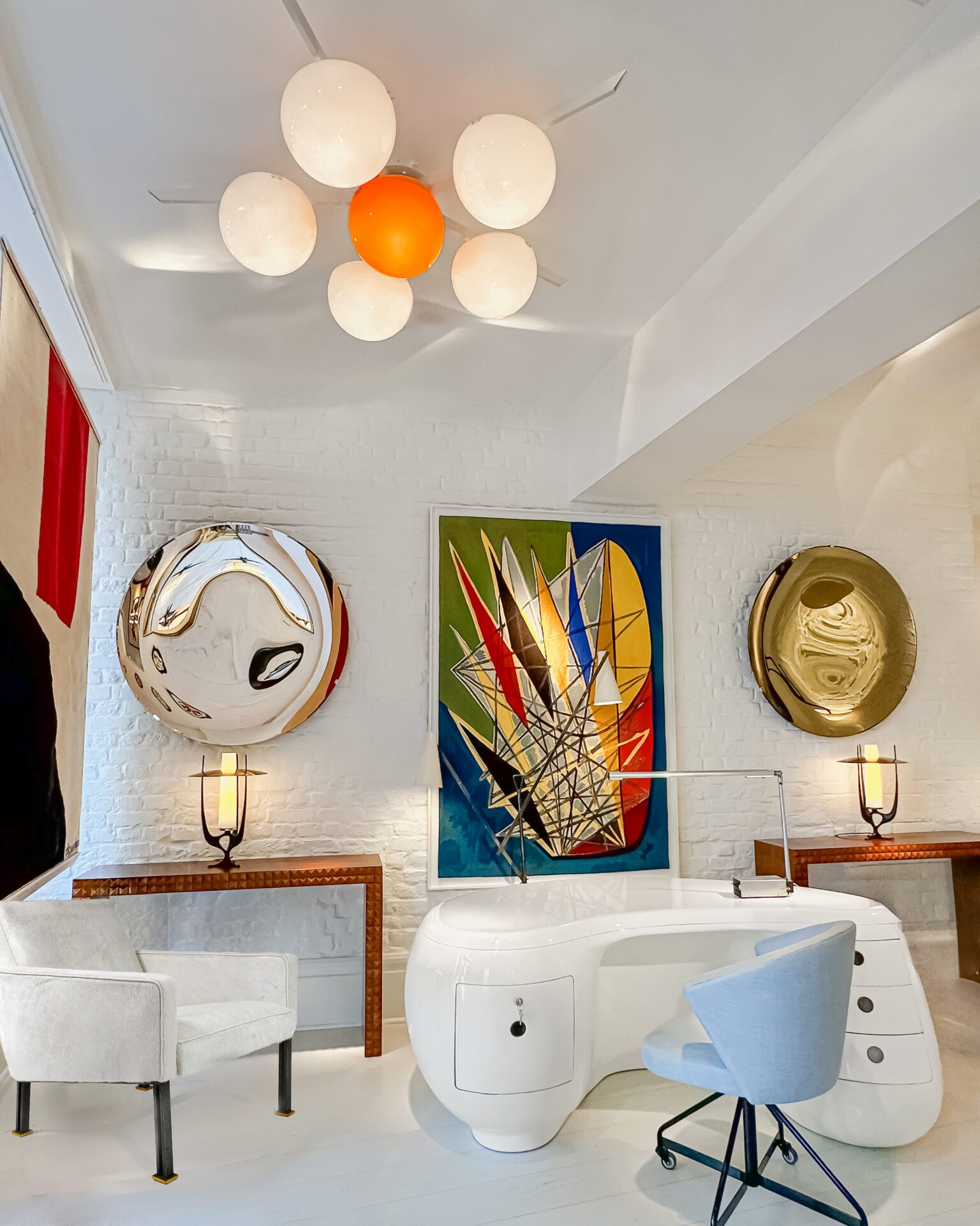 Concave glass mirror Coloured and mirrored glass, brass 2023 Italy