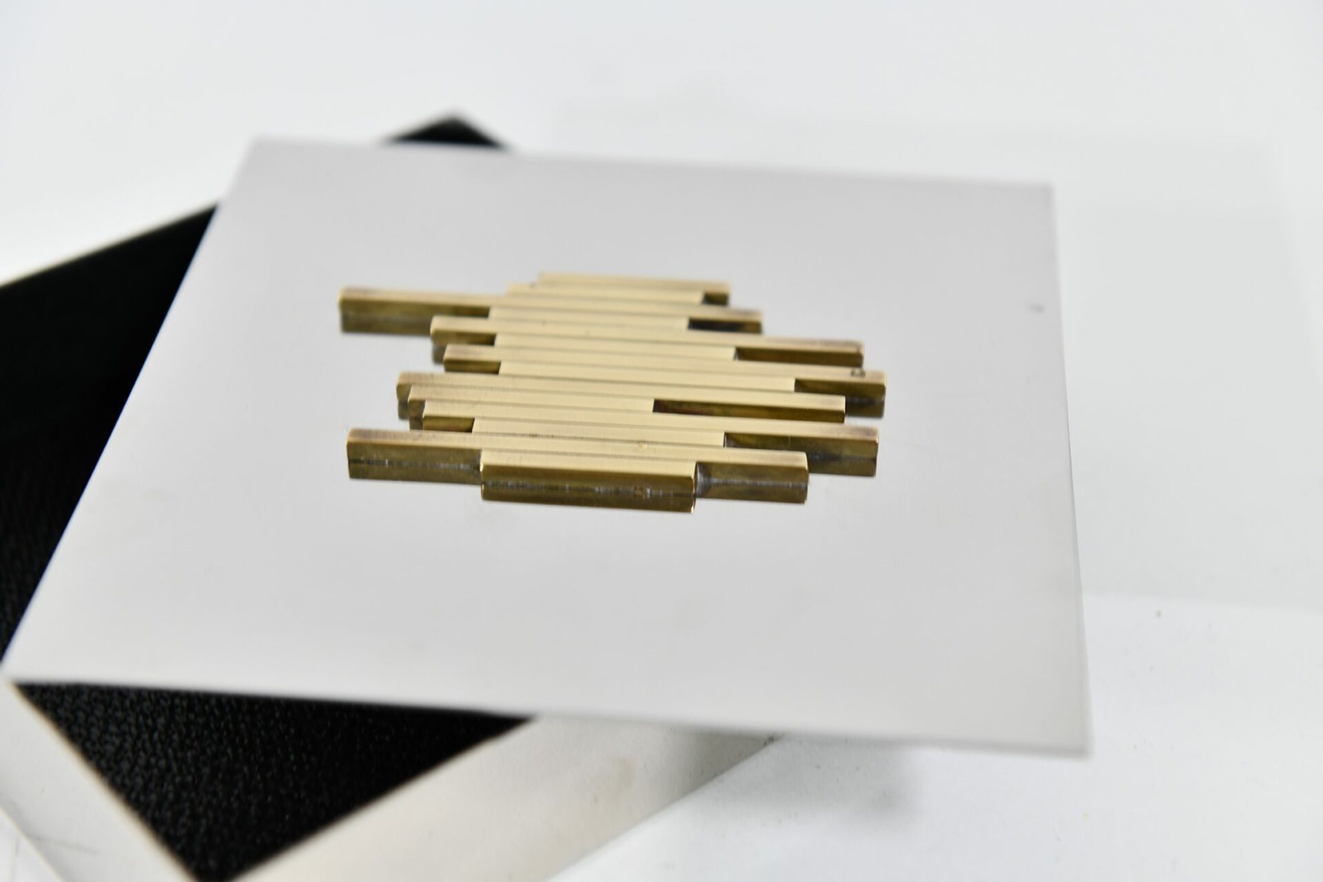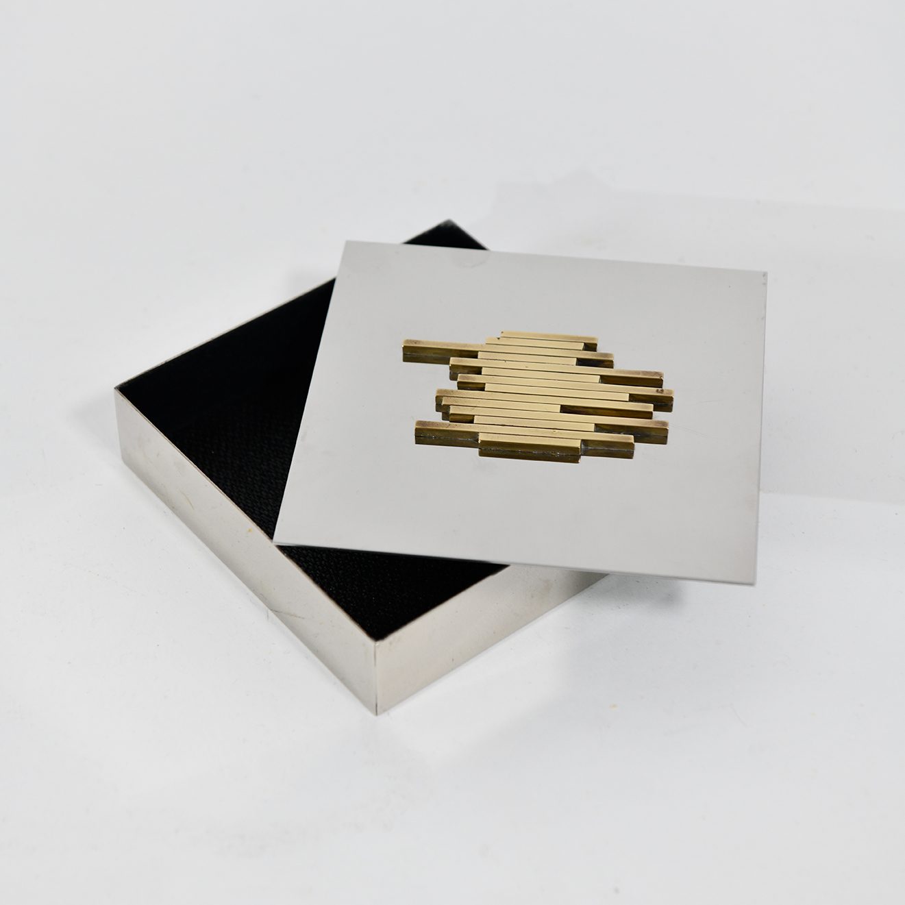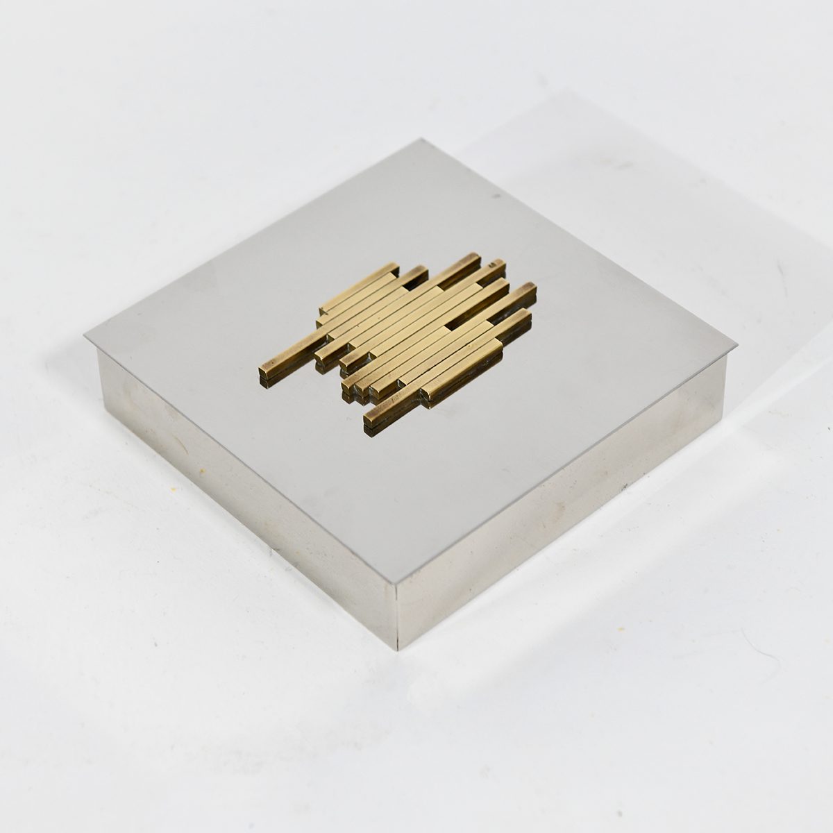Italian School Brutalist lidded box Chrome and brass