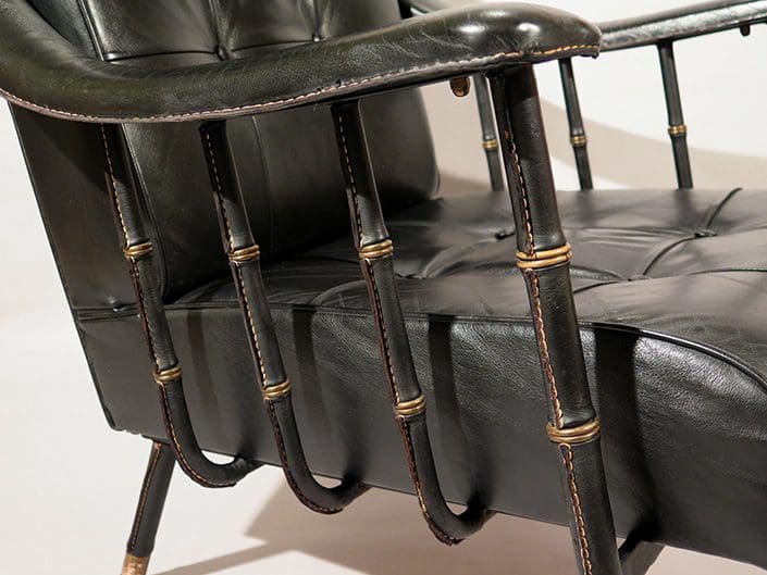 Elegant armchair in brass and stitched leather Jacques Adnet