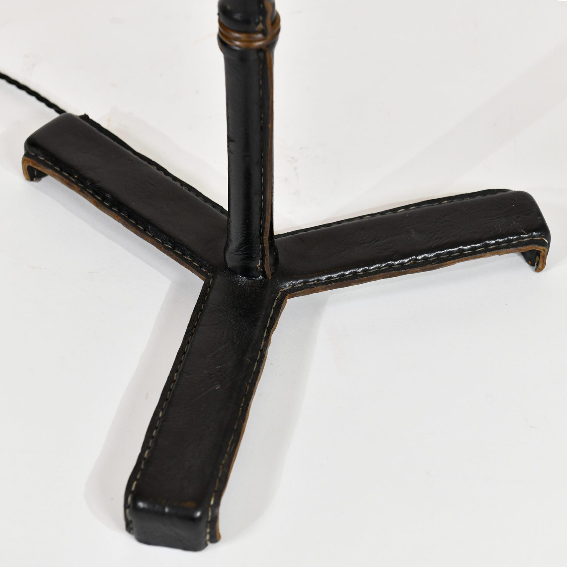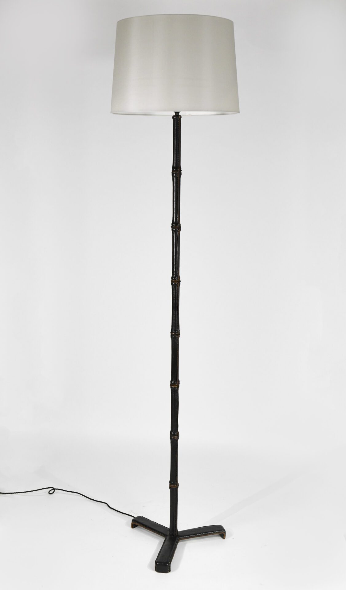 Jacques Adnet (1900-1984) Floor Lamp Steel, stitched leather and brass c. 1955 France