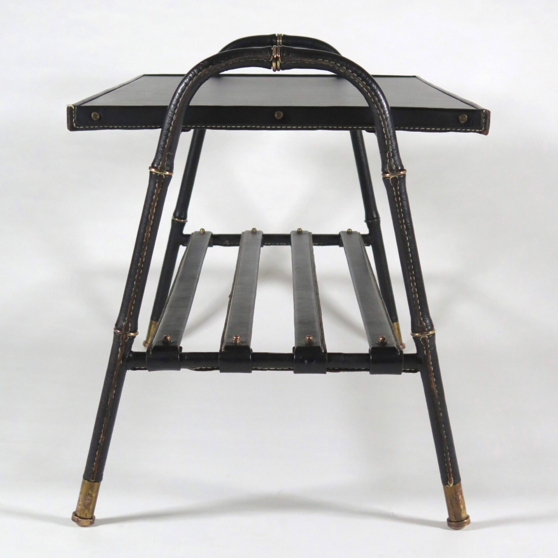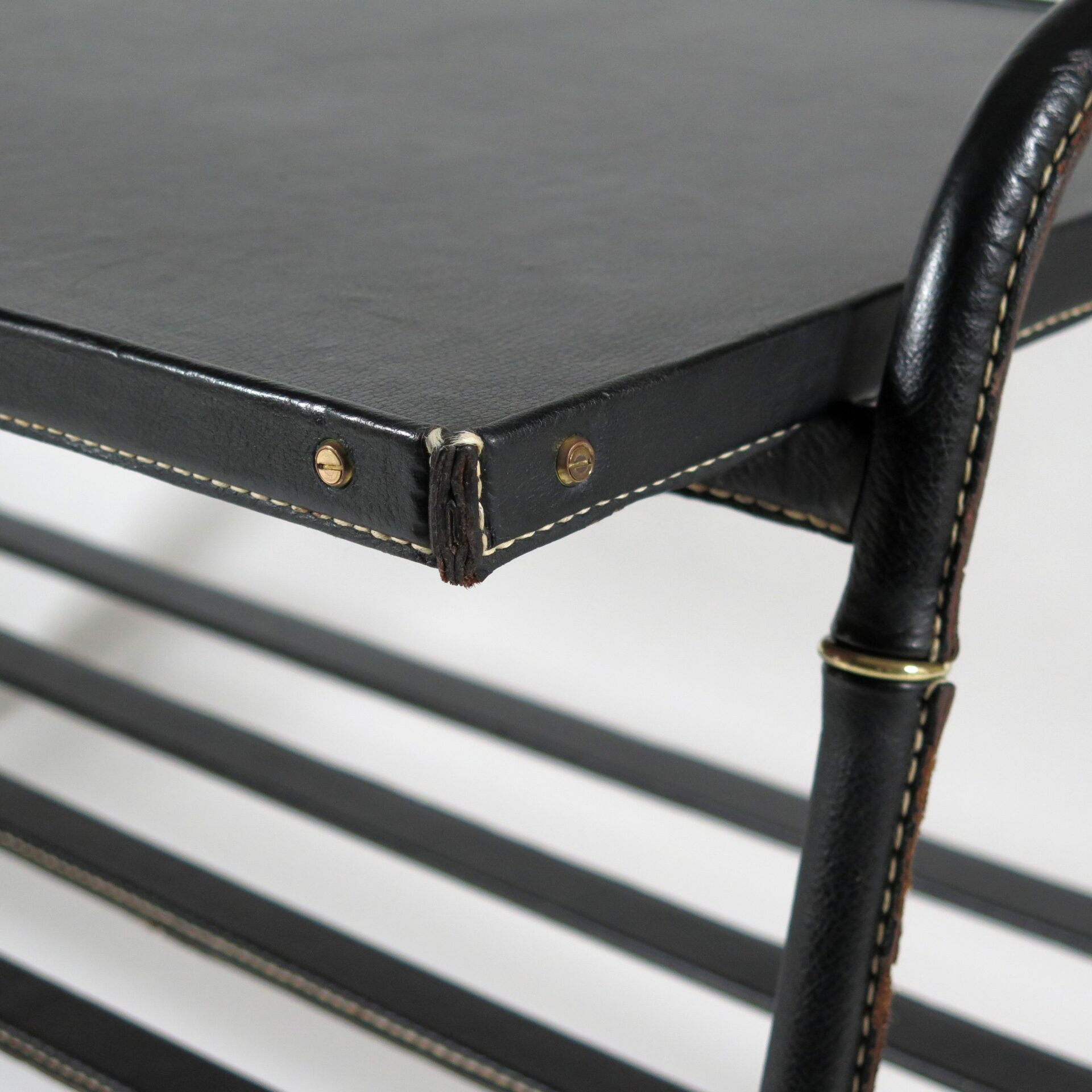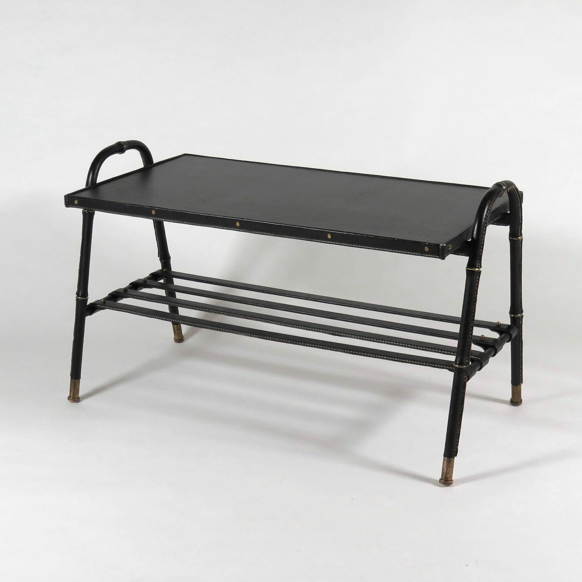 Jacques Adnet (1901-1984) Table in Stitched leather, skai and brass