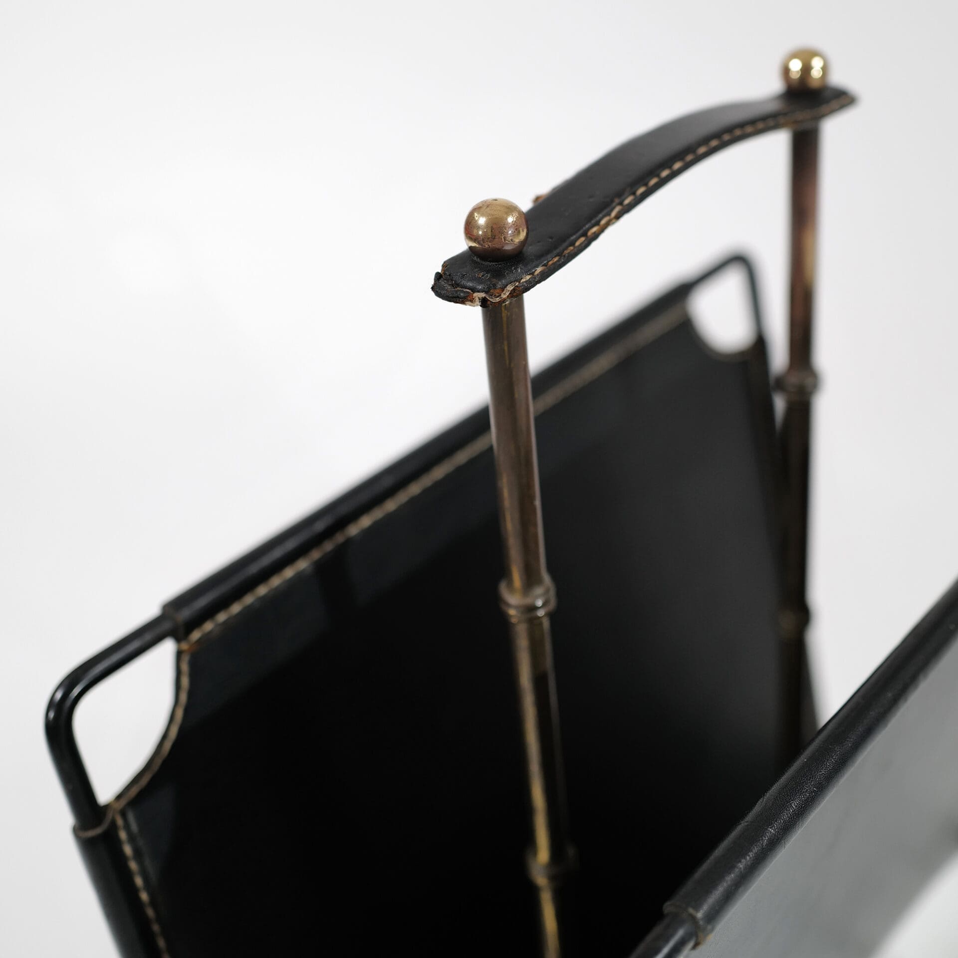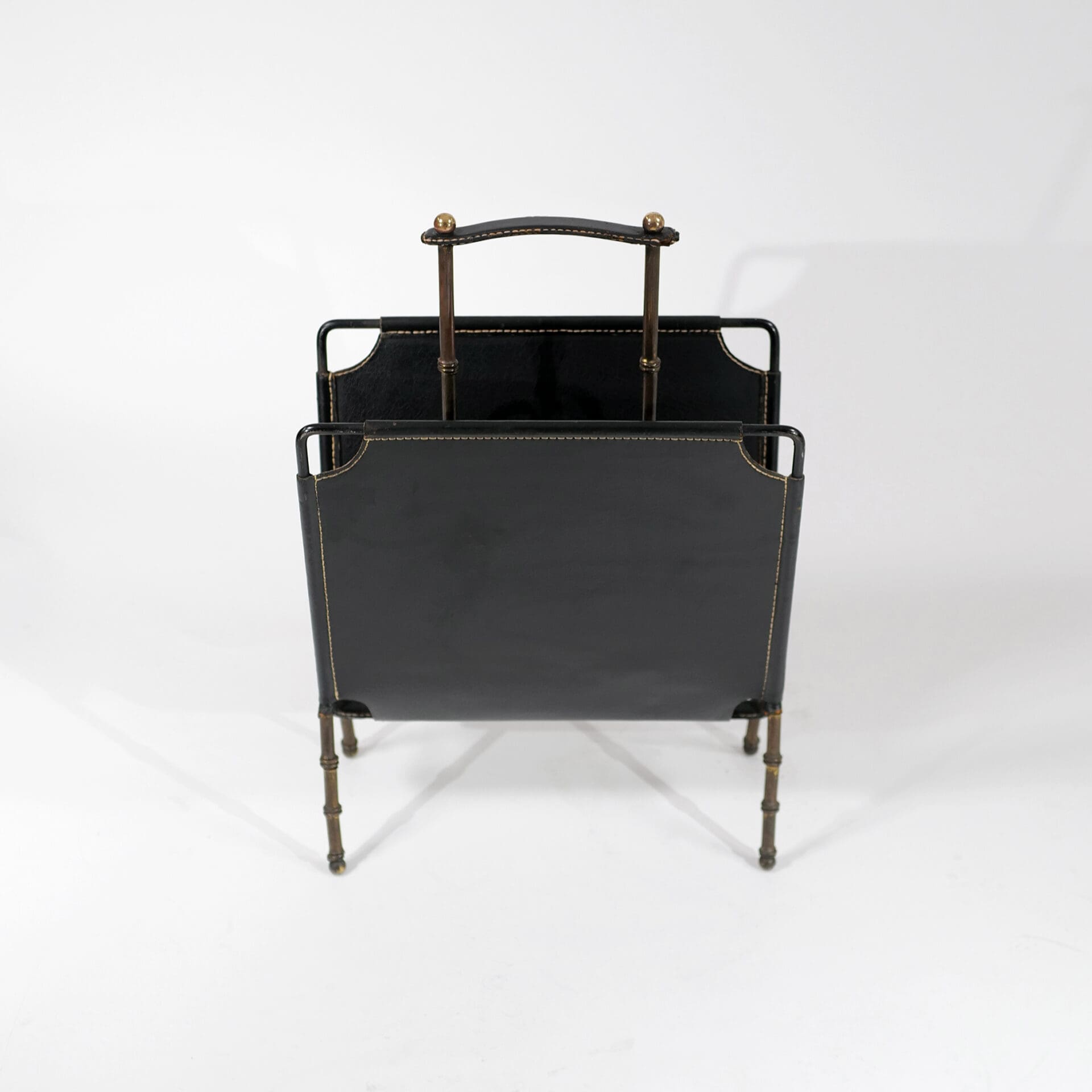 Jaques Adnet (1900-1984) Magazine holder Stitched leather and brass c. 1955 France
