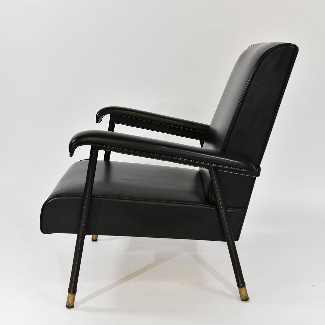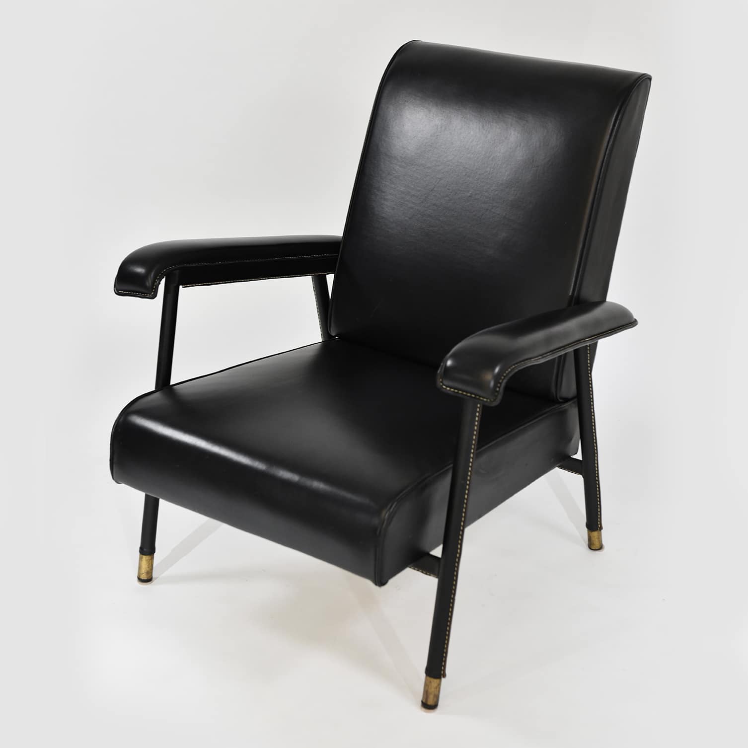 Armchair in stitched leather and moleskin Jacques Adnet