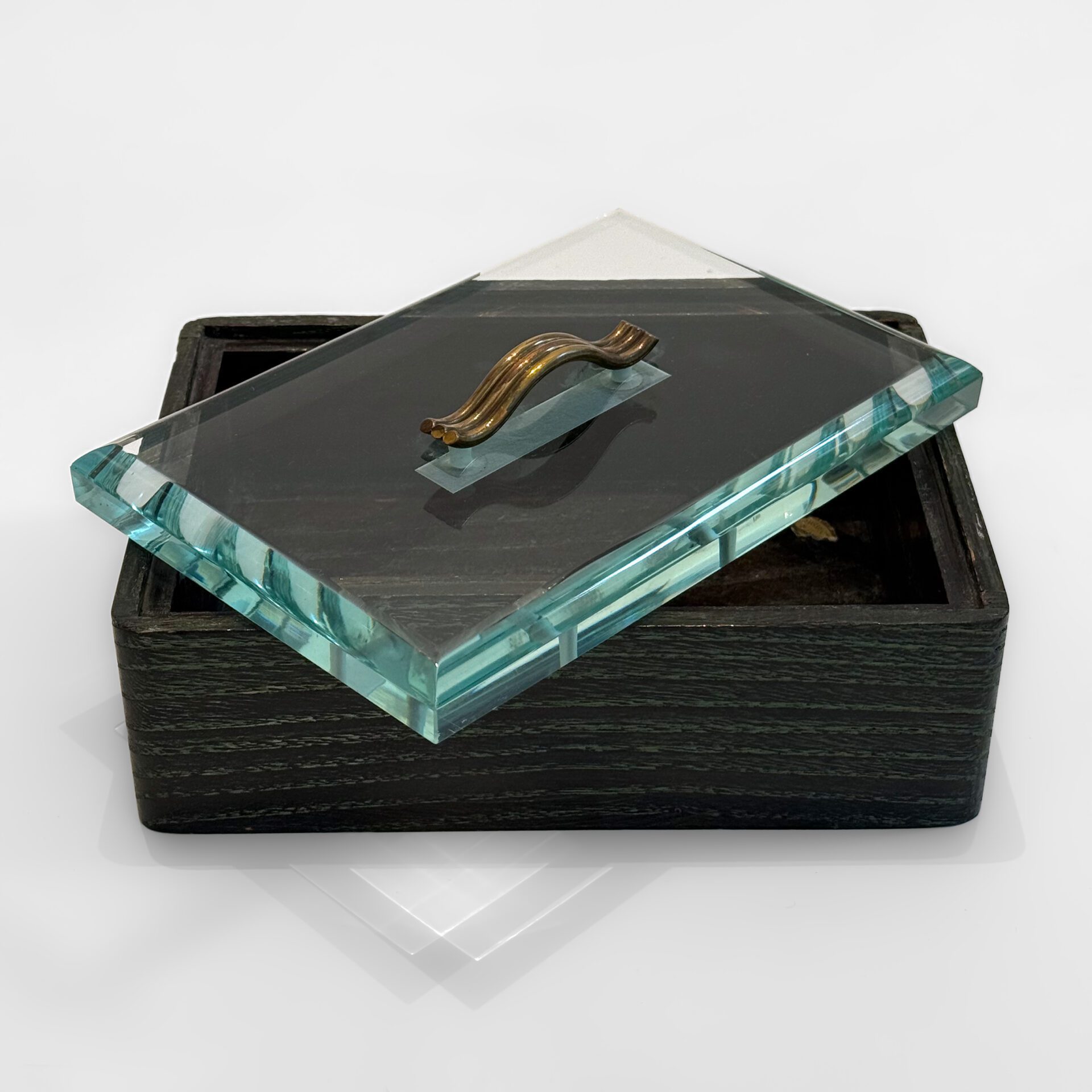 Luigi Brusotti (1877 – 1959) Lidded box Limed oak, bevelled glass and brass c. 1945 Italy