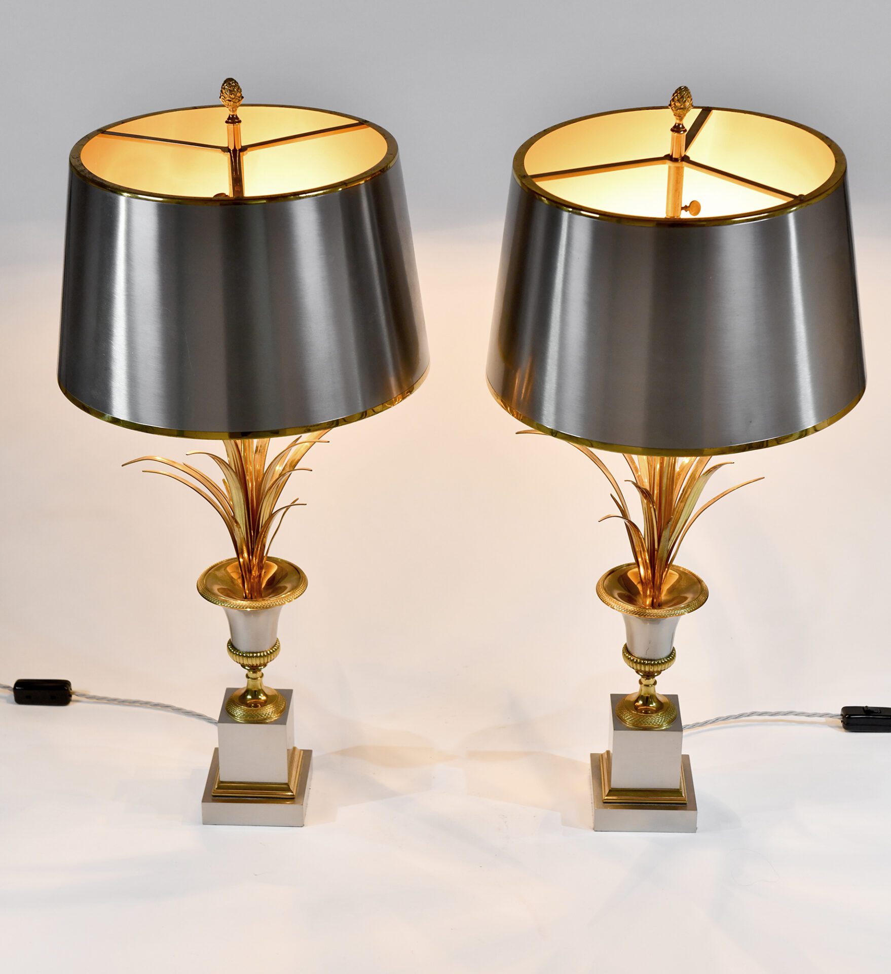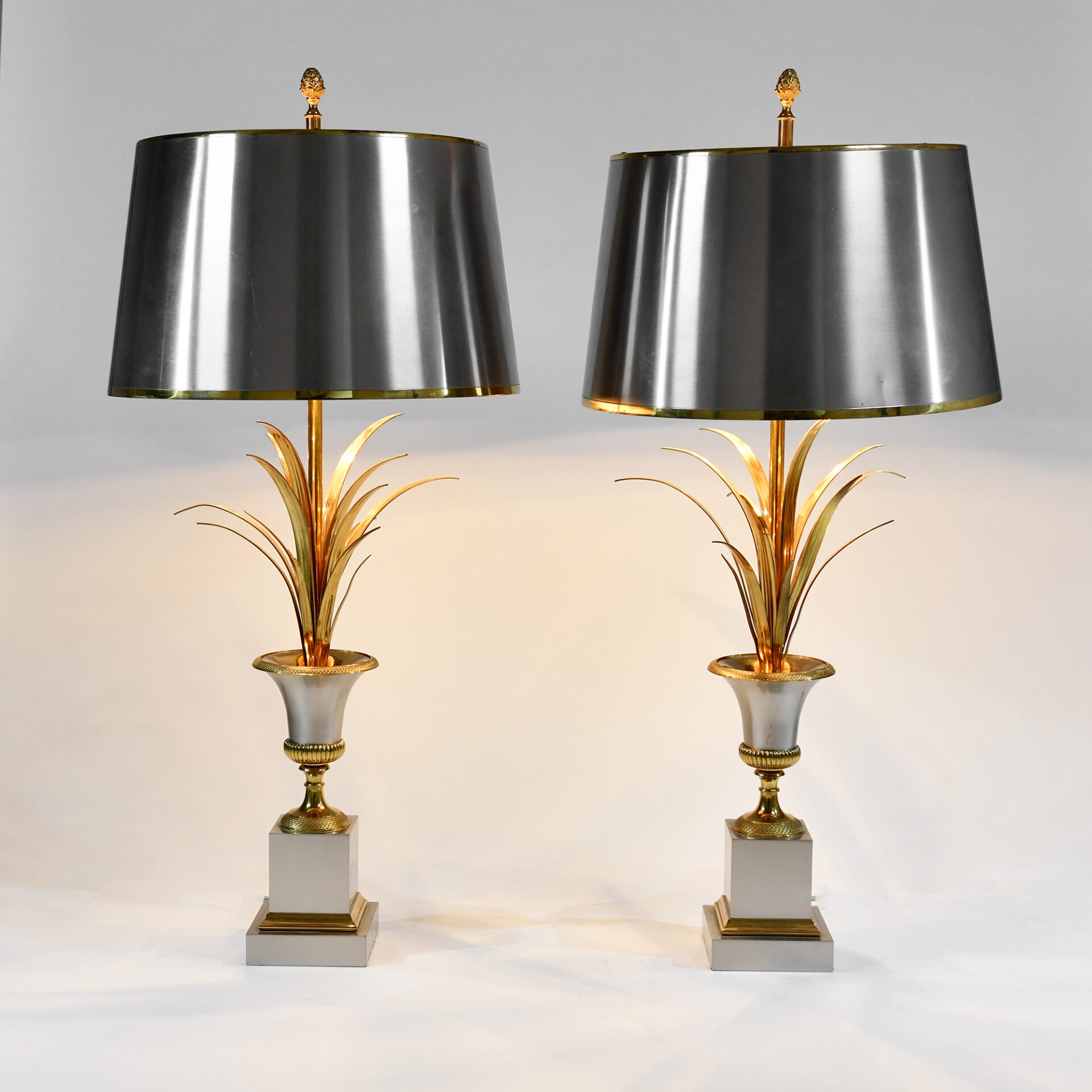 Maison Charles Pair of ‘Vase Roseaux’table lamps Gilt and silver bronze, brass ferns Model number 2359 Stamped ‘Charles’ c. 1970 France