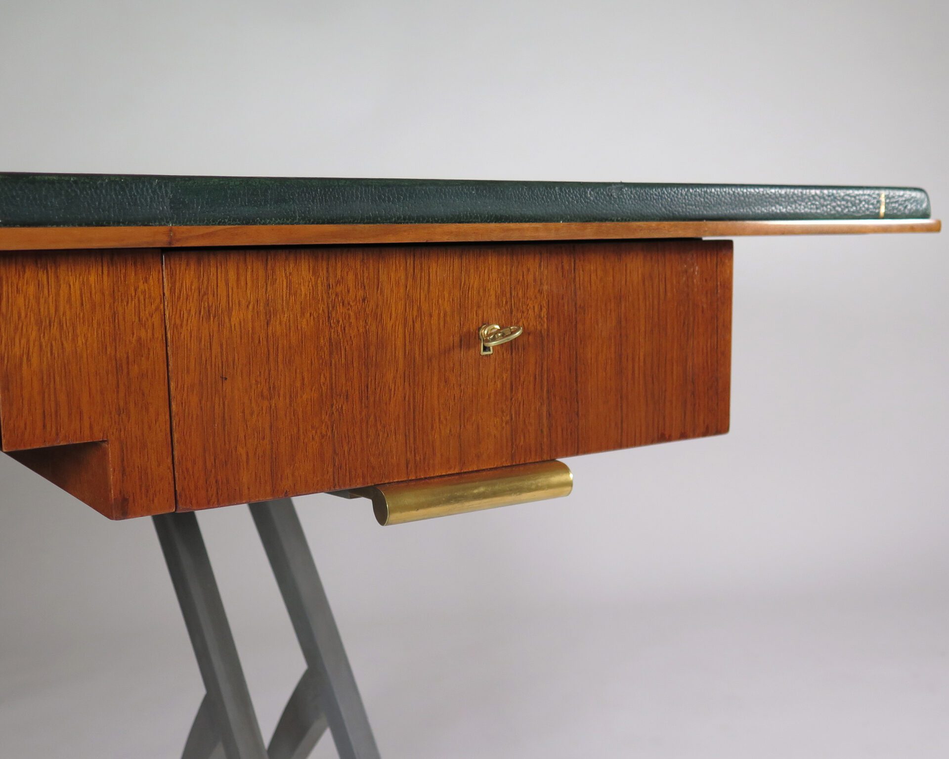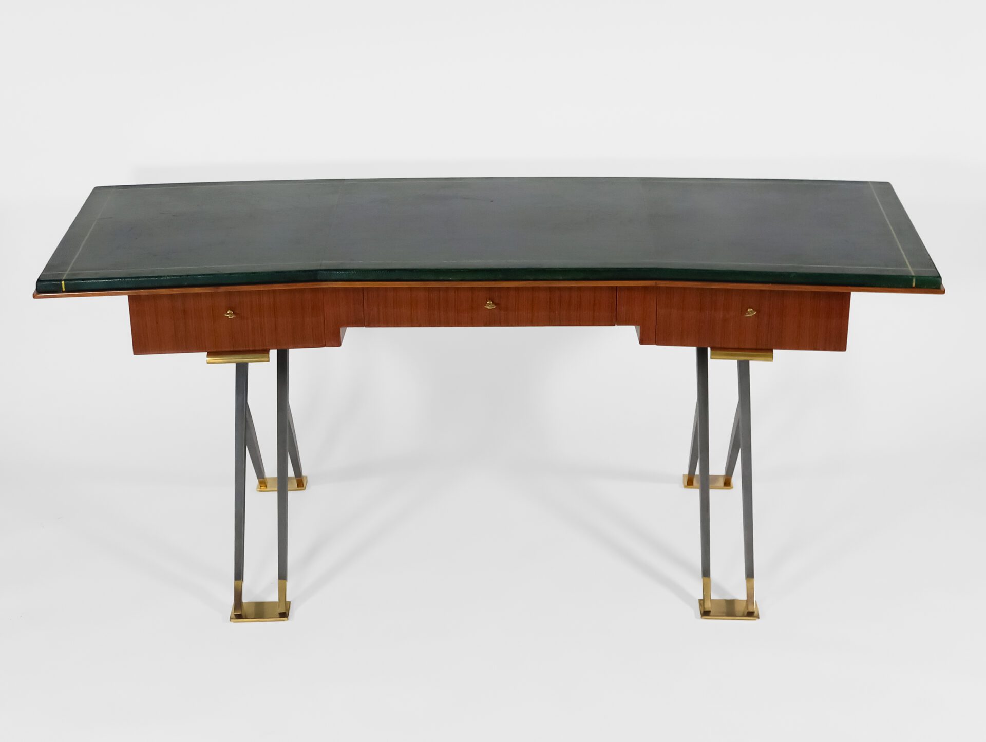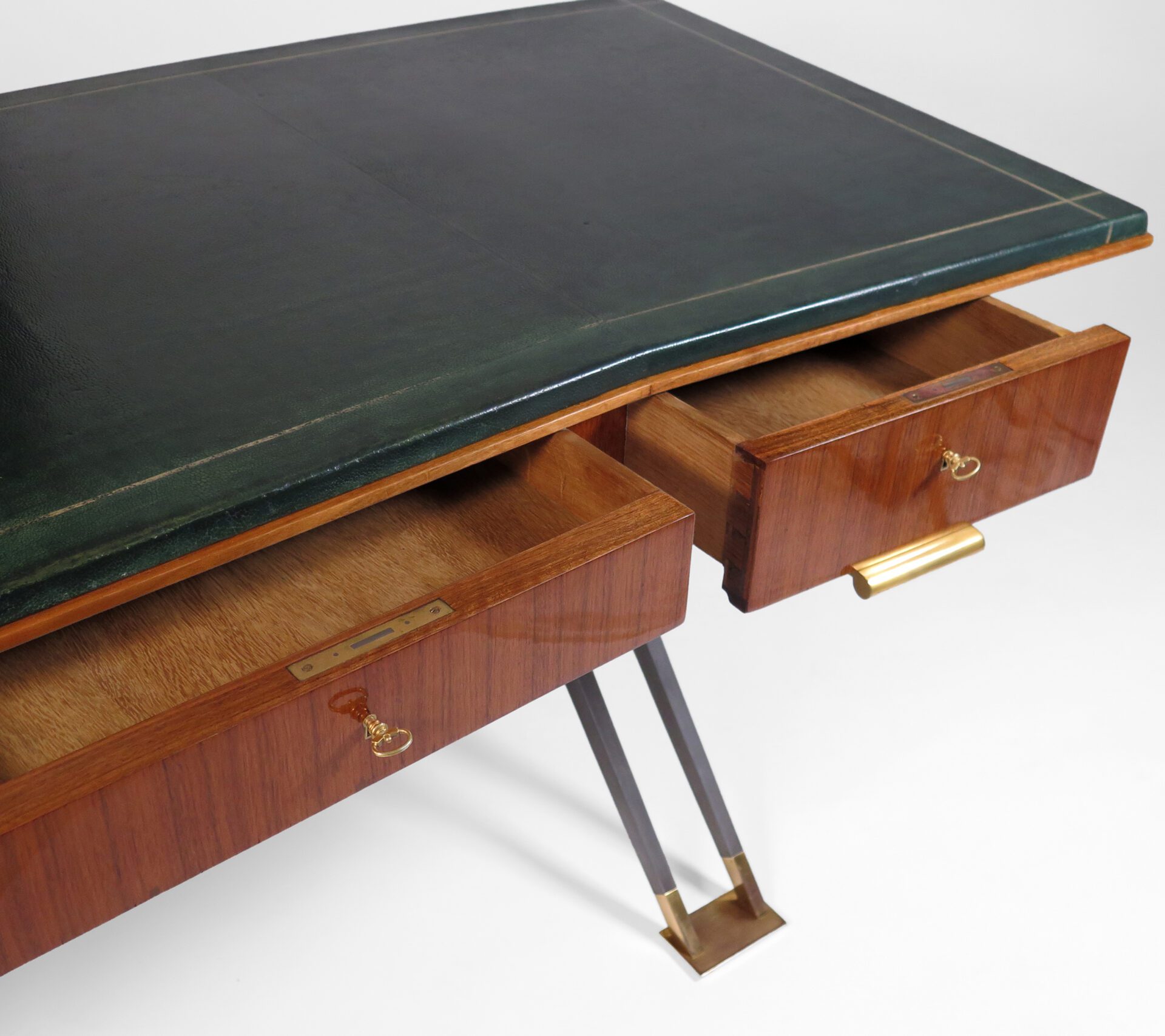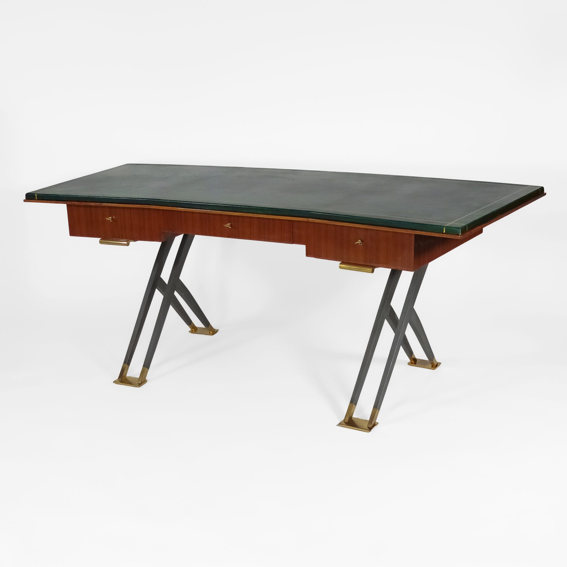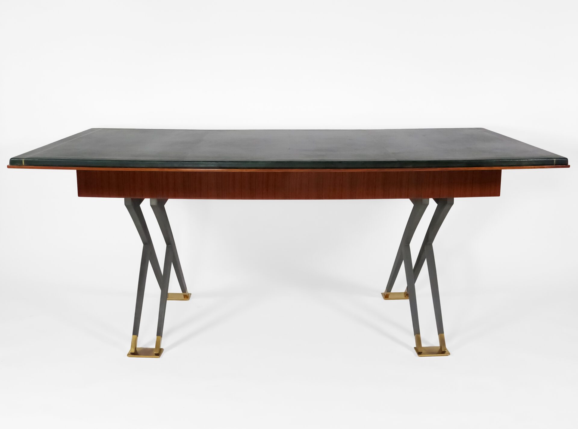 Mahogany, green leather, gunmetal patinated bronze, gilt bronze