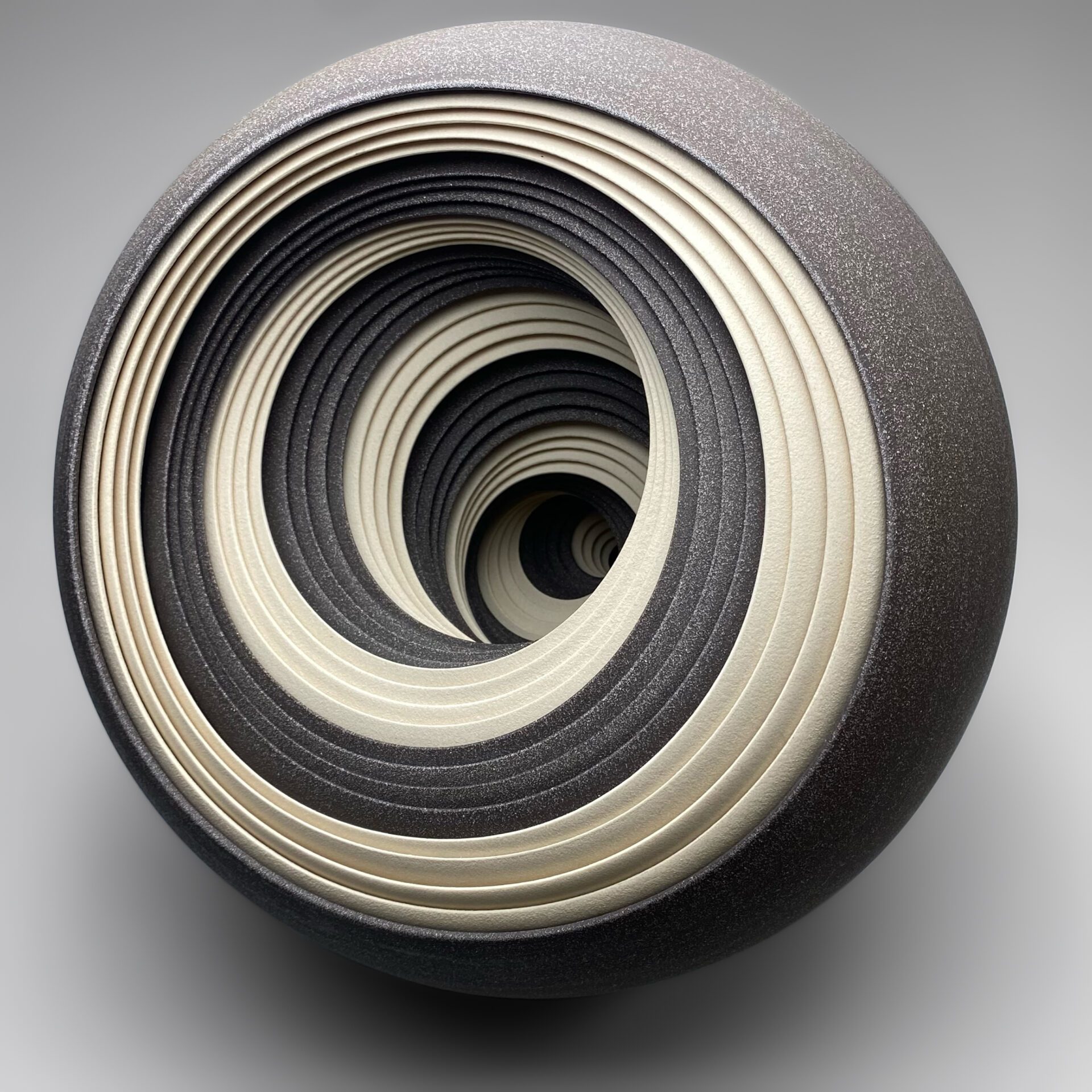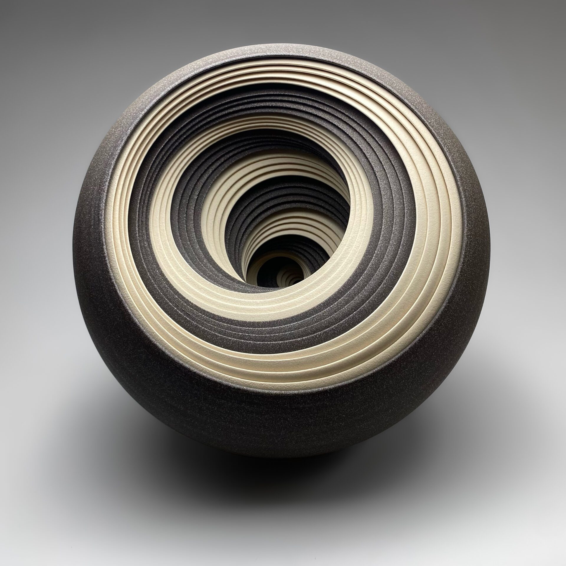 Matthew Chambers specialises in ceramic sculptures constructed of multiple sections built on the potter’s wheel. Finished with integral colour, unglazed but polished, each piece expresses an abstract beauty through its formal qualities of depth, pattern, and repetition.