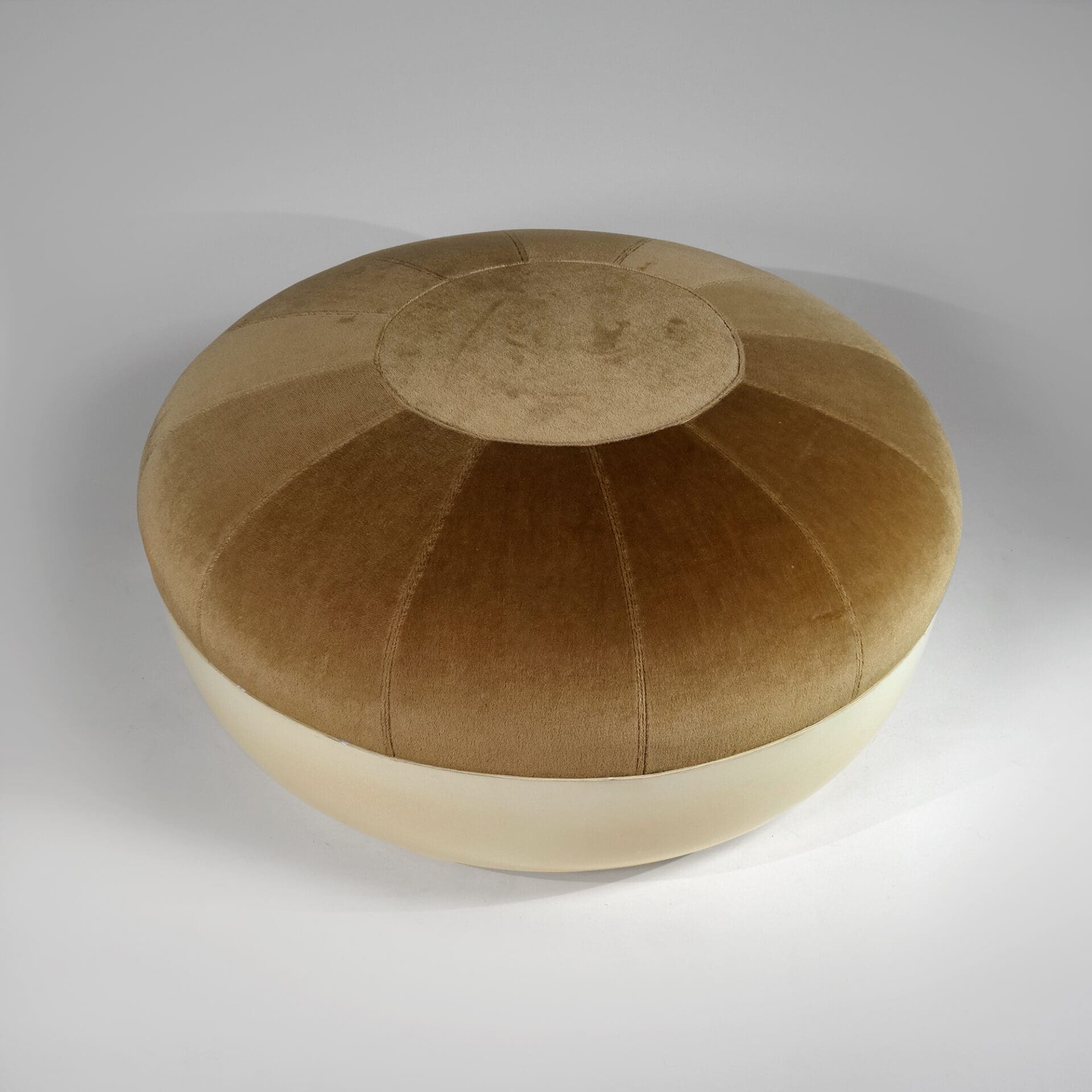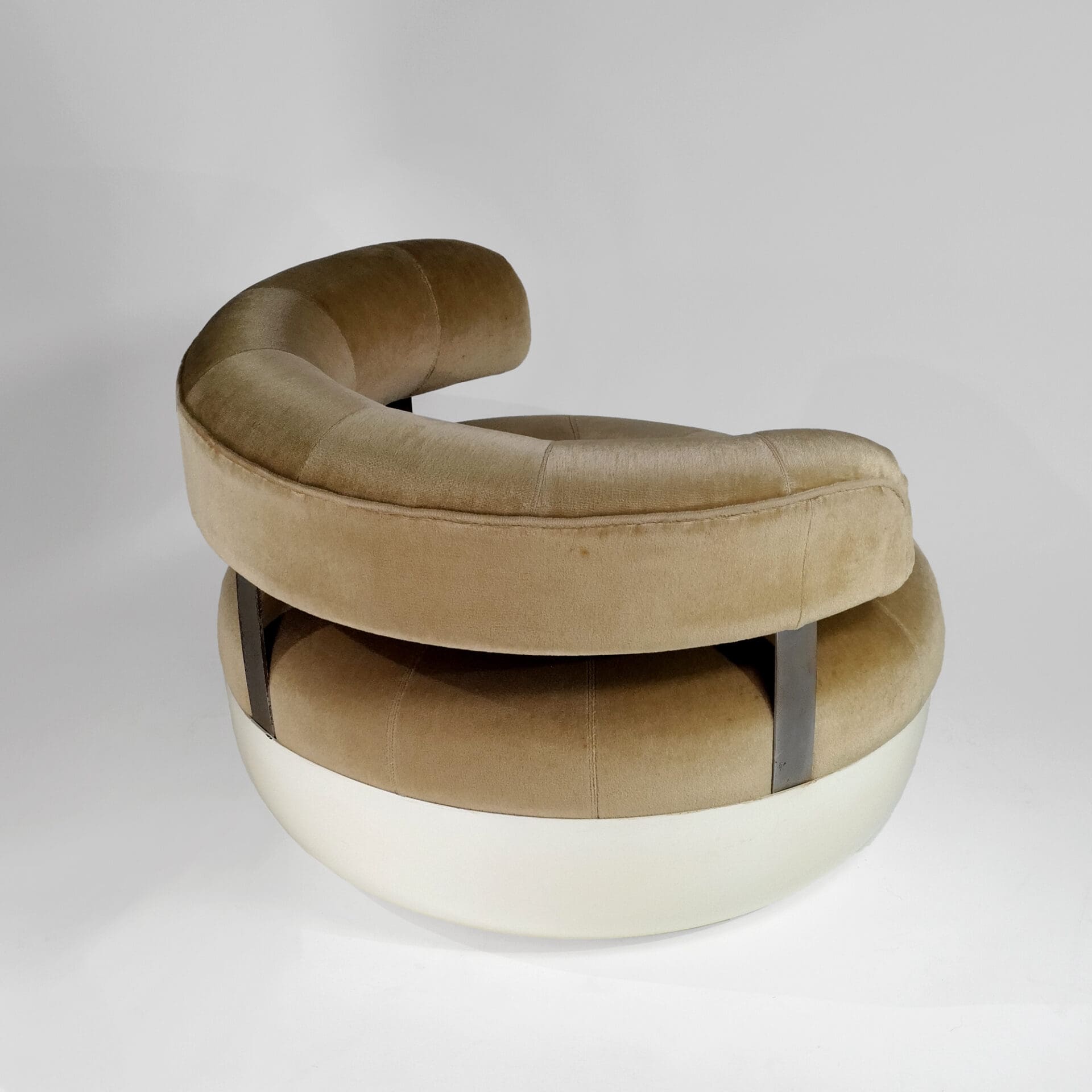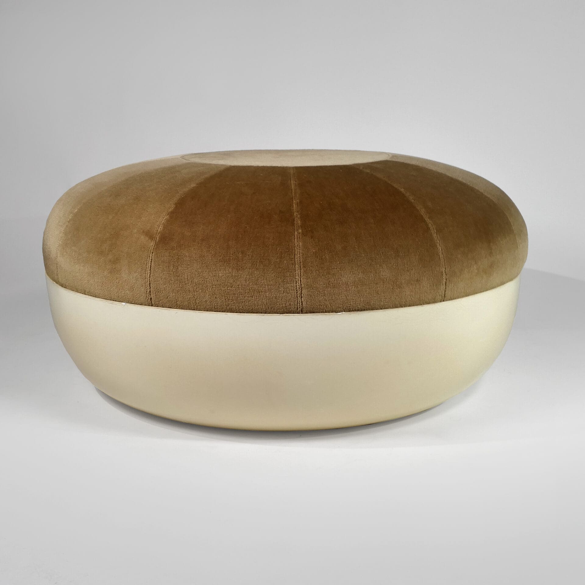 Rare ‘Mandarine’ pair of armchairs and footstool