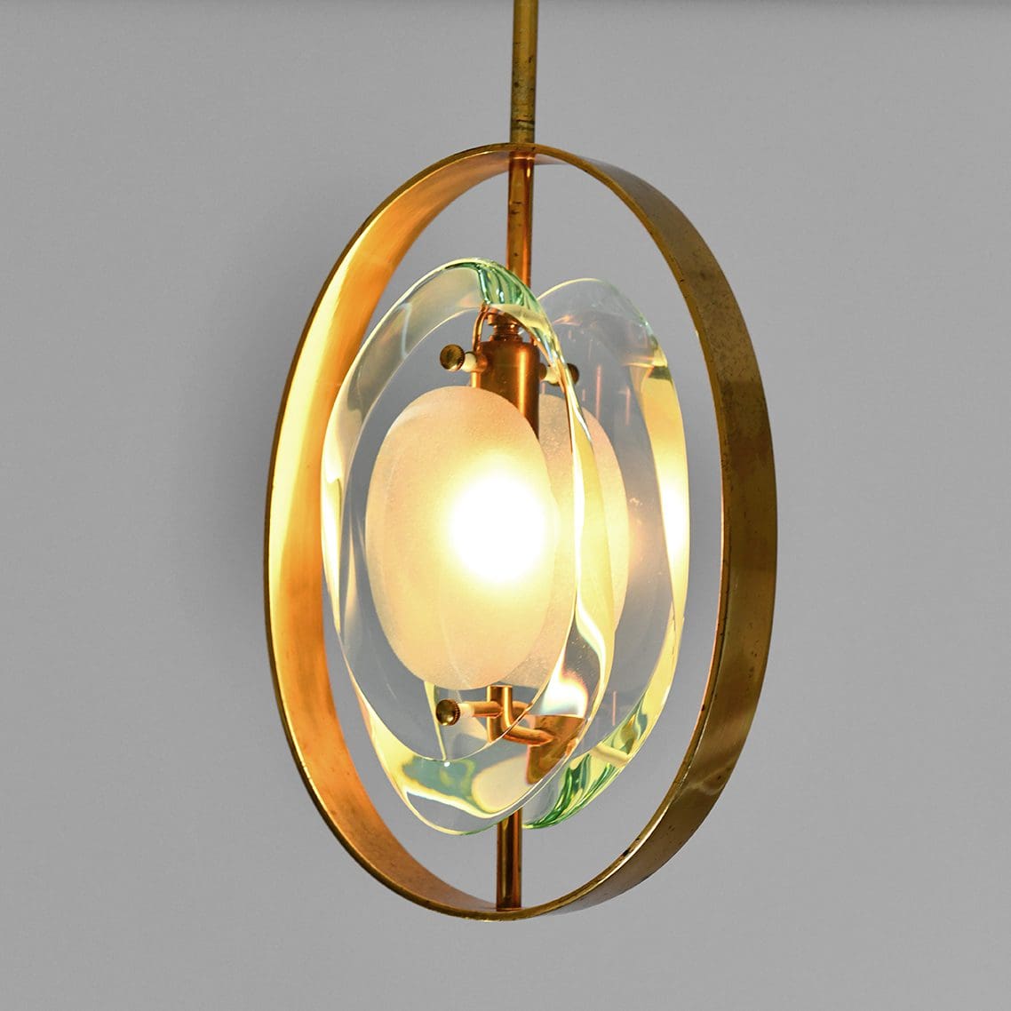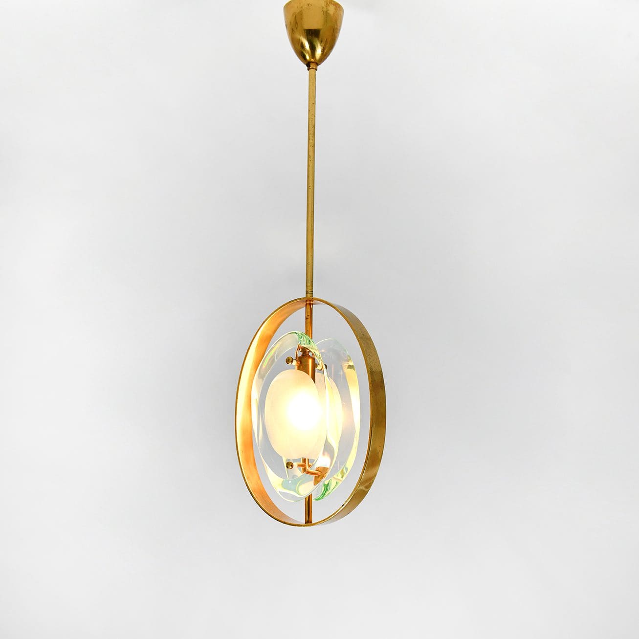 Max Ingrand (1908-1969) 'Micro' Ceiling Light Brass and partly sanded glass Model no. 1933, Produced by Fontana Arte Italy c 1960