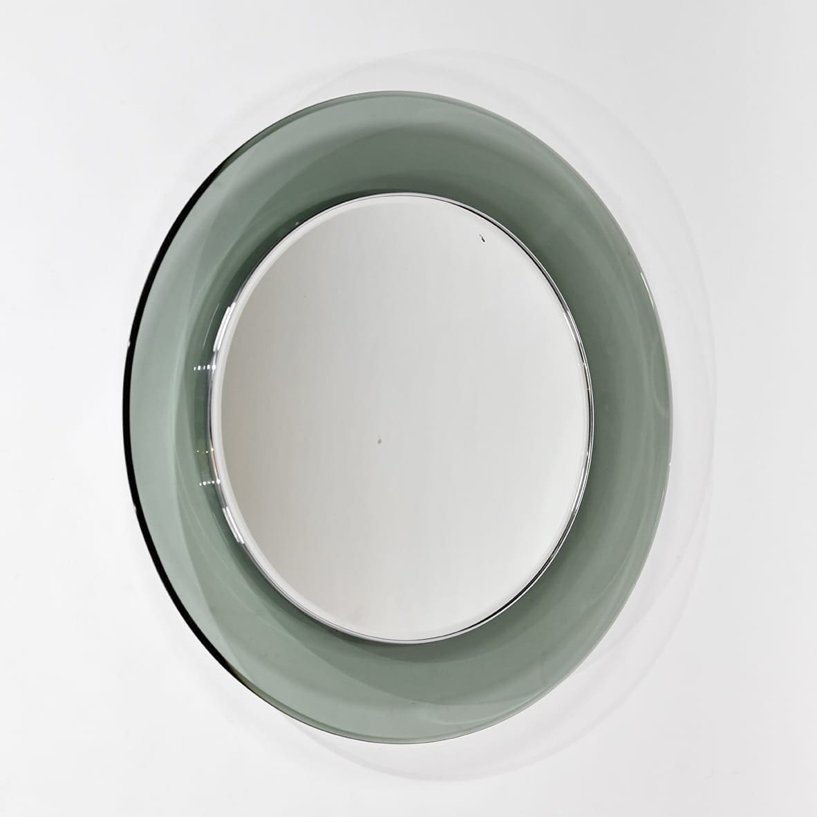 Concave glass mirror Coloured glass,mirrored glass and chromed brass. Produced by Fontana Arte Italy c 1964