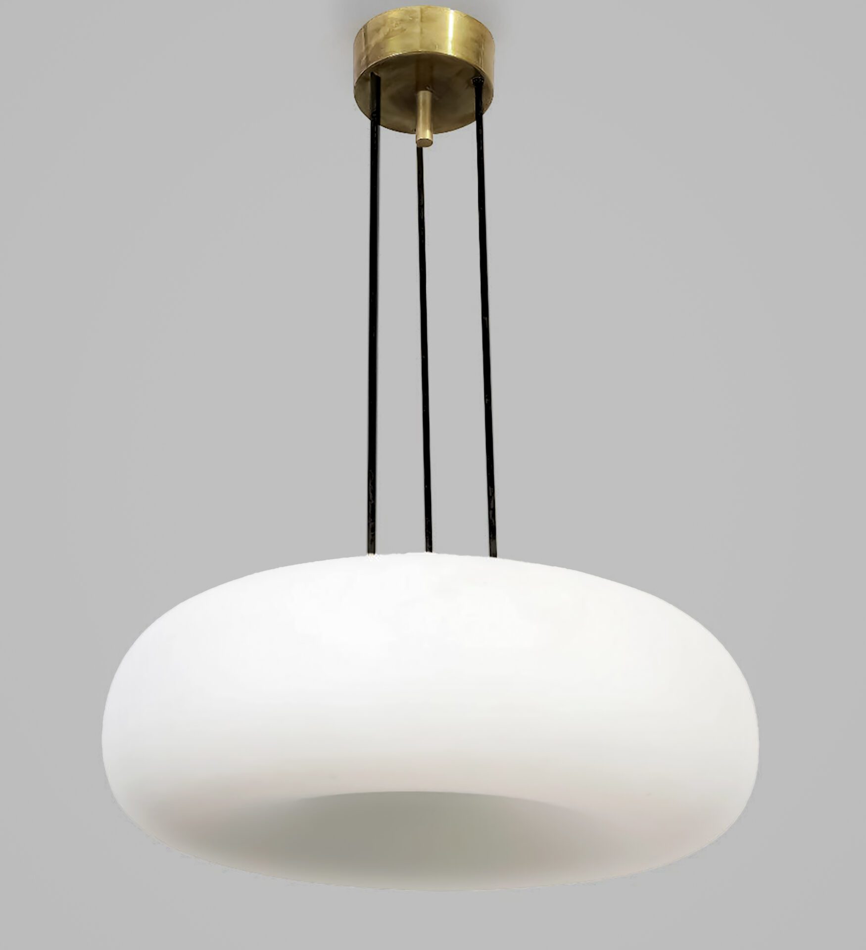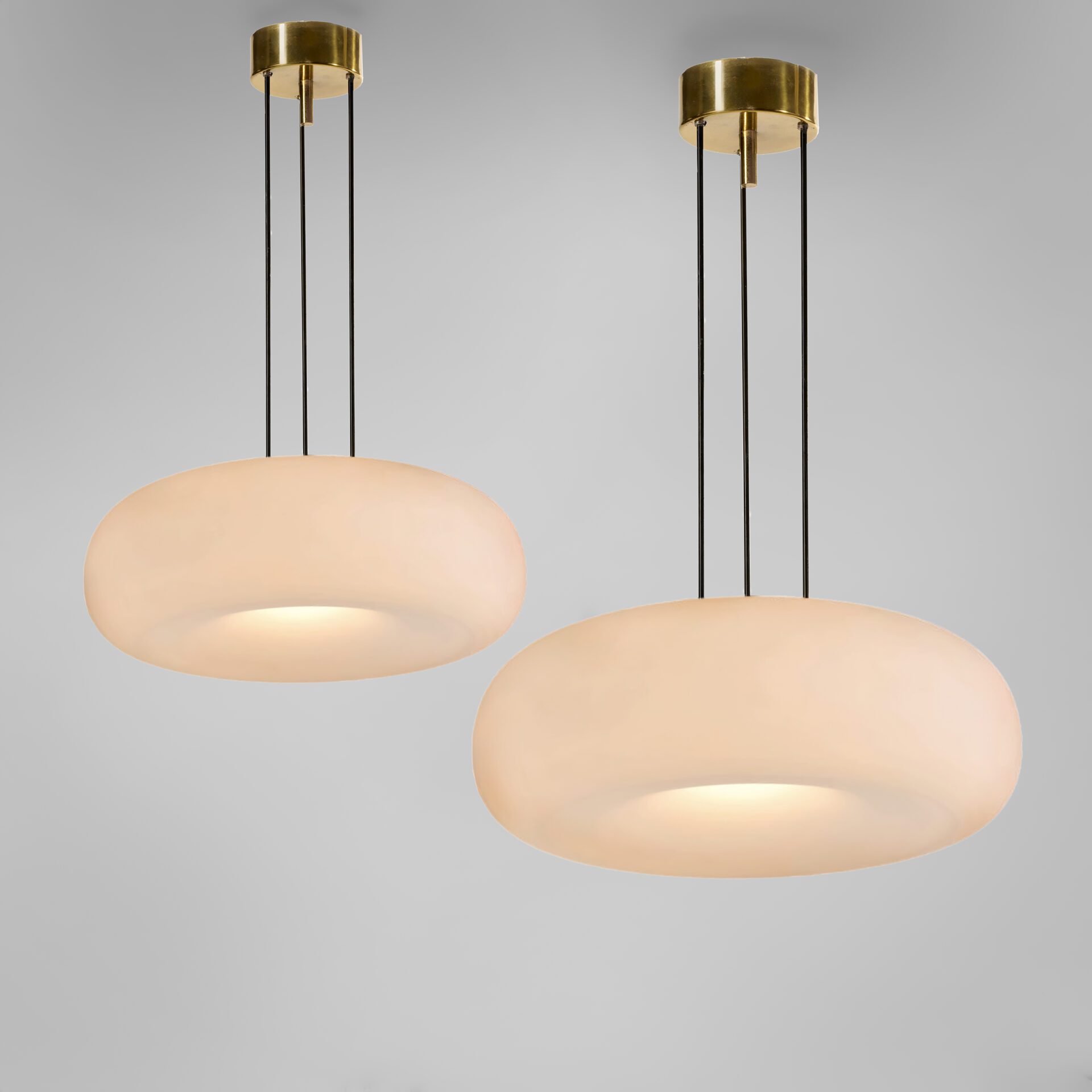 Max Ingrand (1908-1969) Pair of ceiling lights Painted metal, brass, painted brass and opaline glass Model 2356 Produced by Fontana Arte c. 1967 Italy