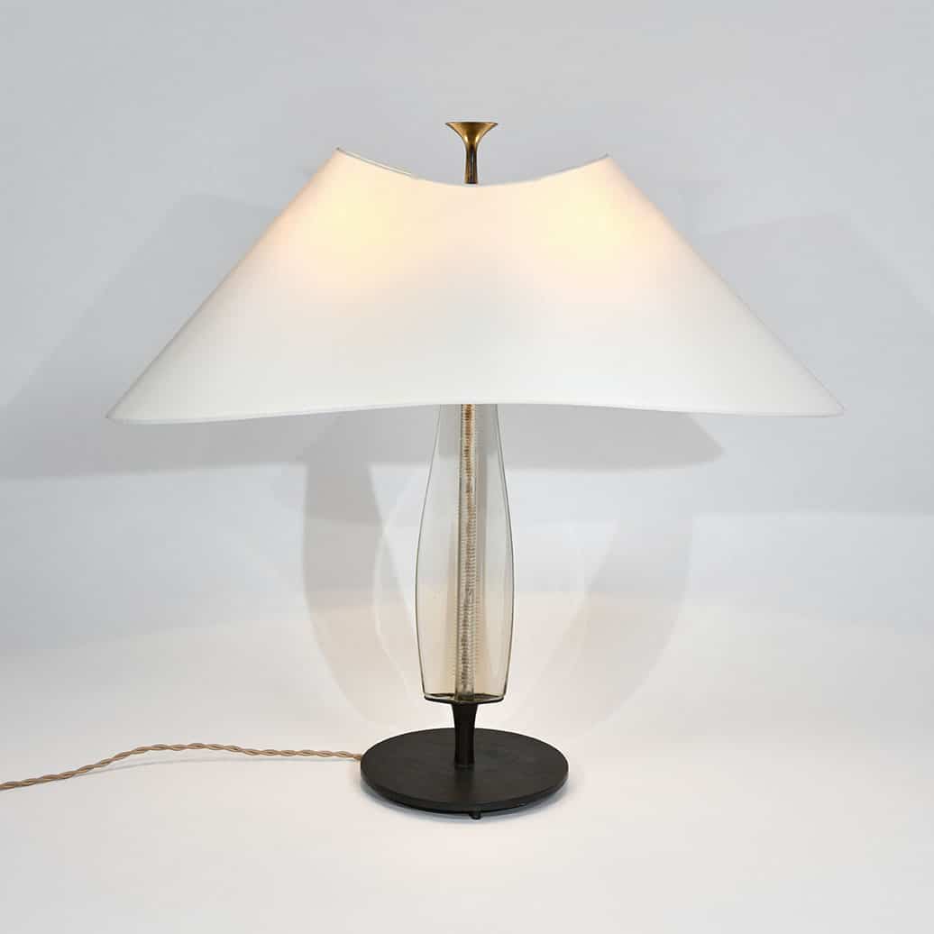 Rare table lamp in etched glass and patinated brass Max Ingrand for Fontana Arte