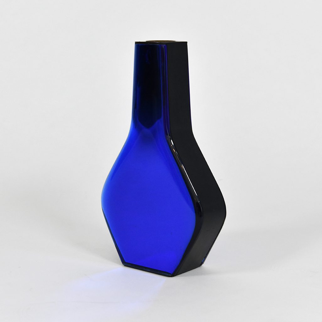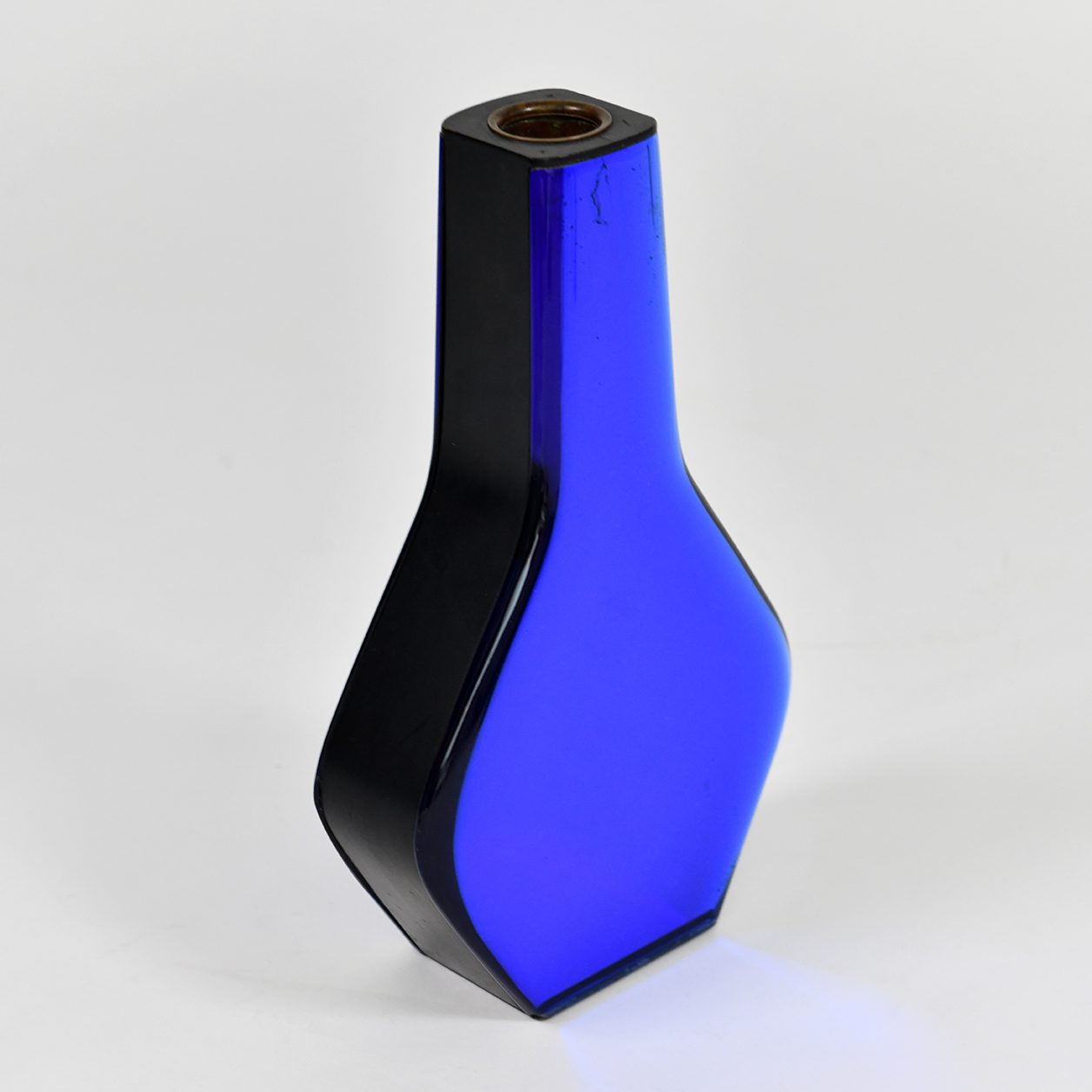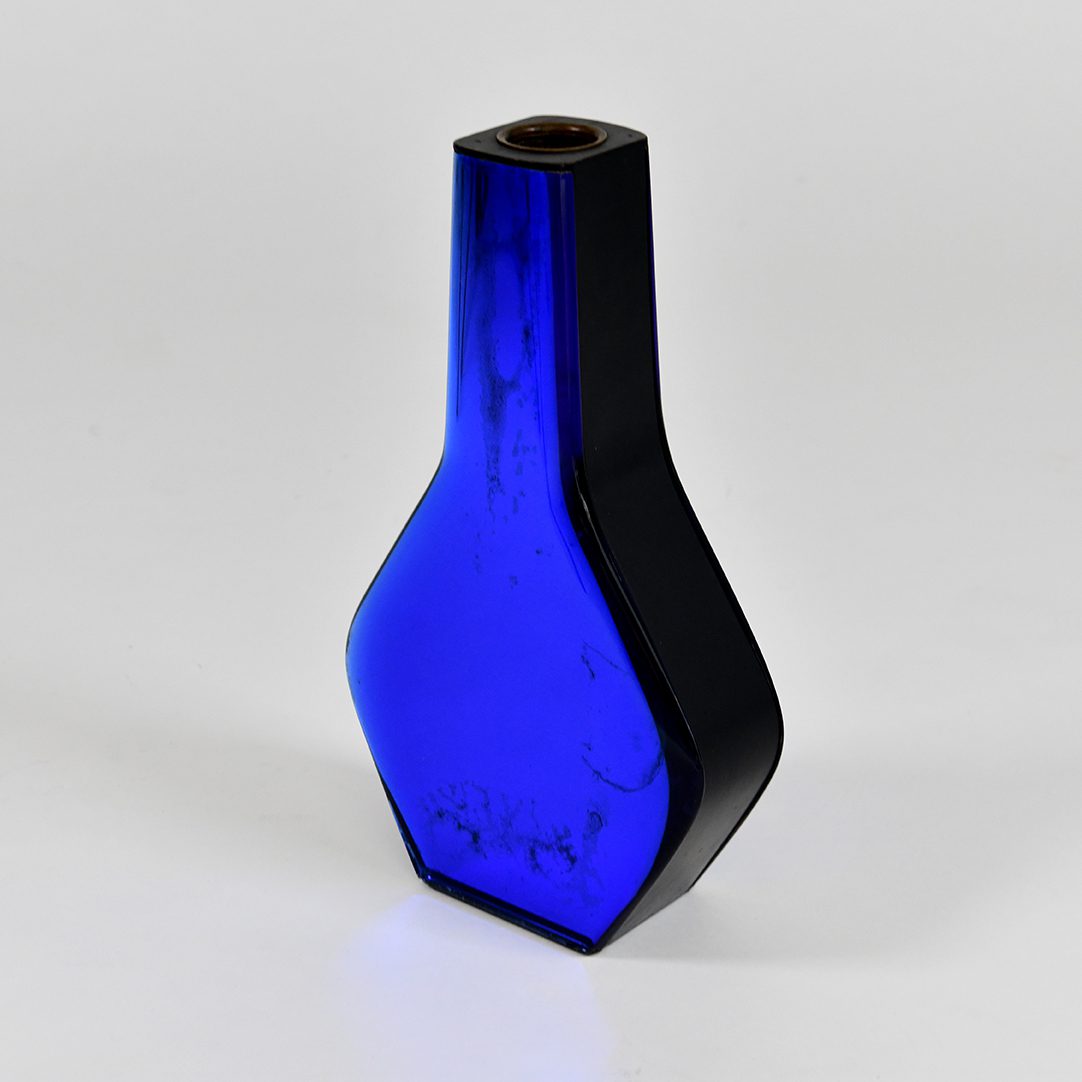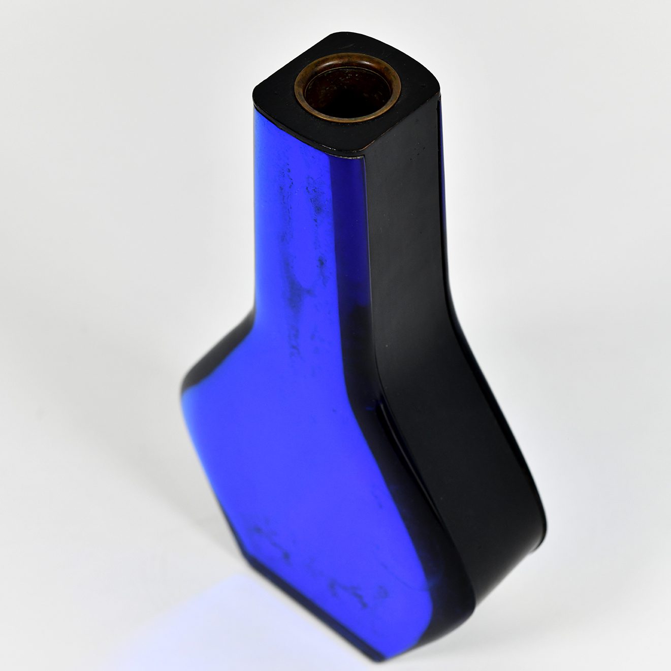 Max Ingrand (1908-1969) Blue coloured glass vase, Model 2122 Lacquered wood, mirrored glass & brass Produced by Fontana Arte c. 1960 Italy