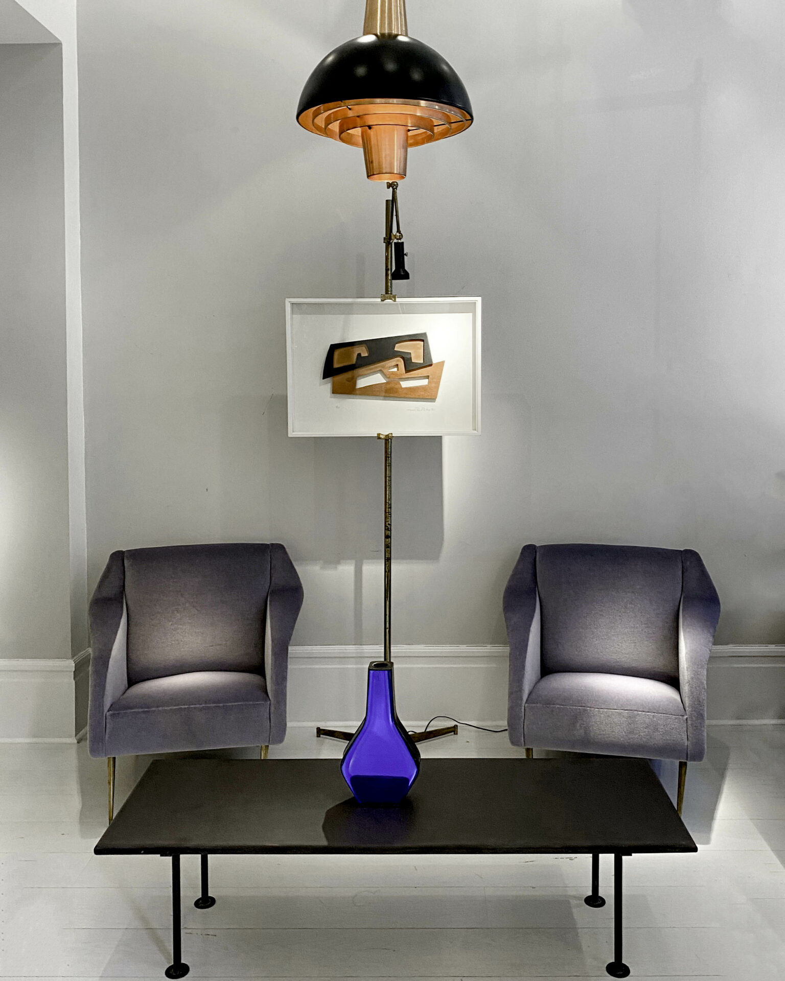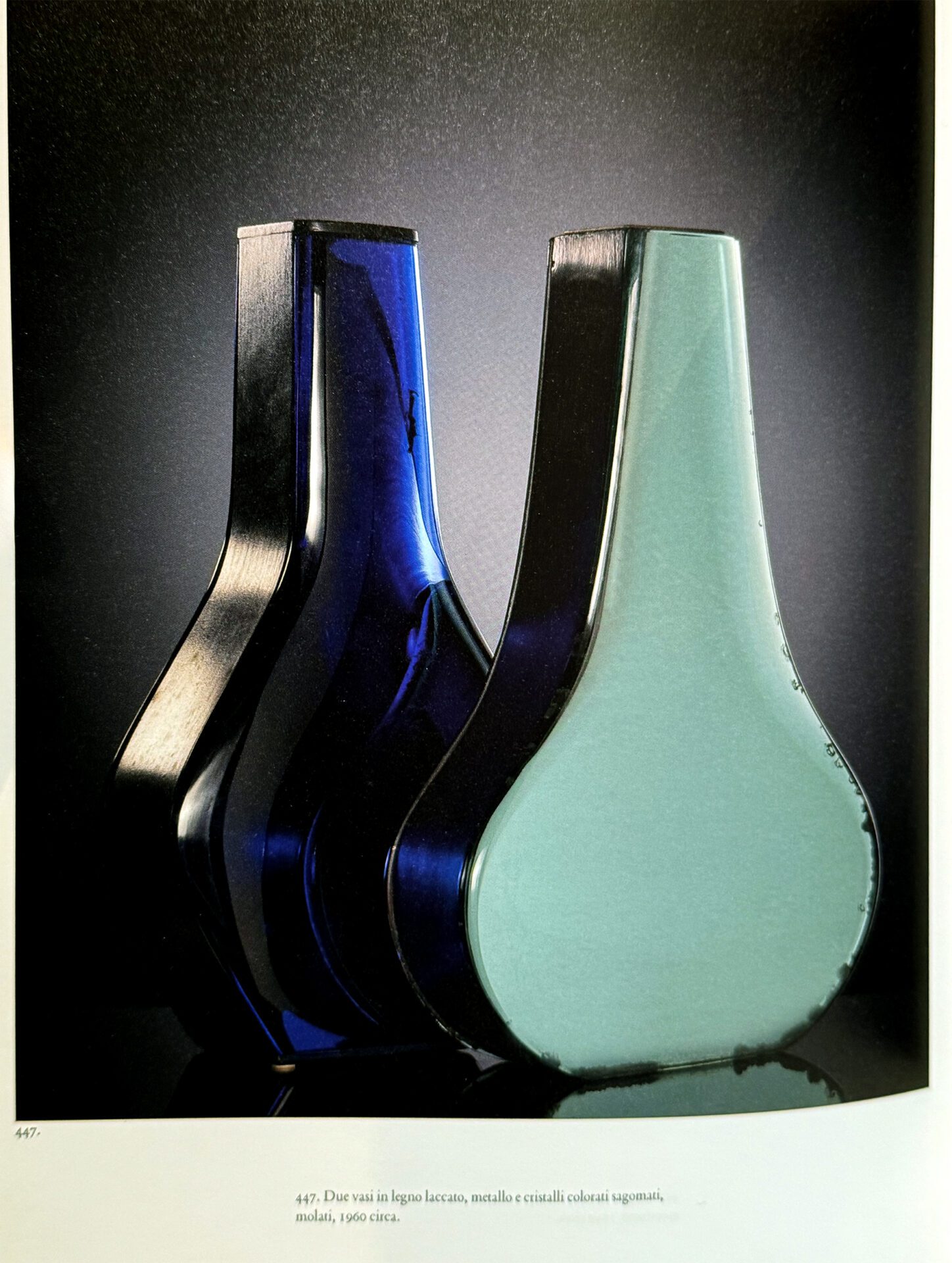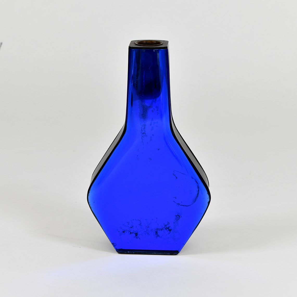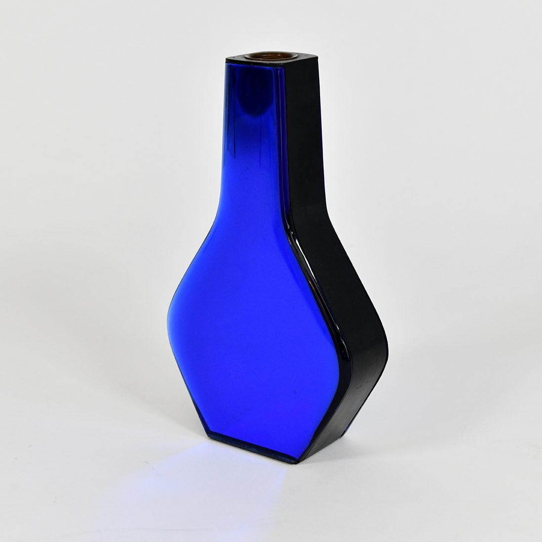 Max Ingrand (1908-1969) Blue coloured glass vase, Model 2122 Lacquered wood, mirrored glass & brass Produced by Fontana Arte c. 1960 Italy