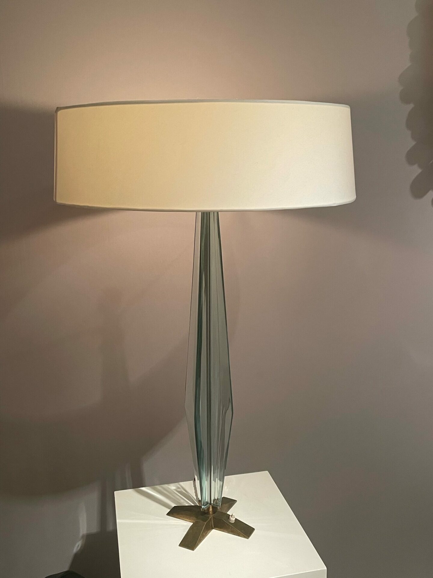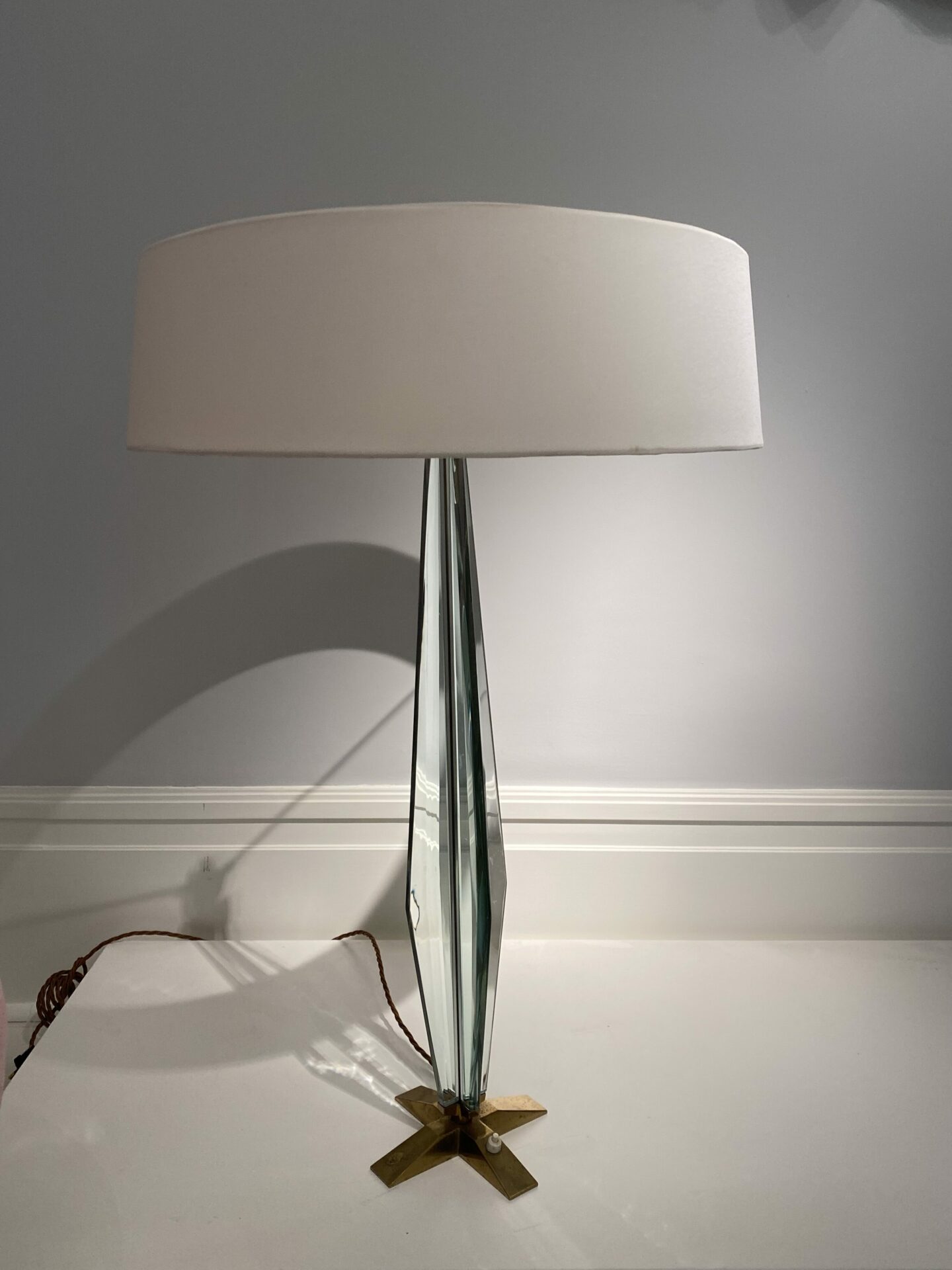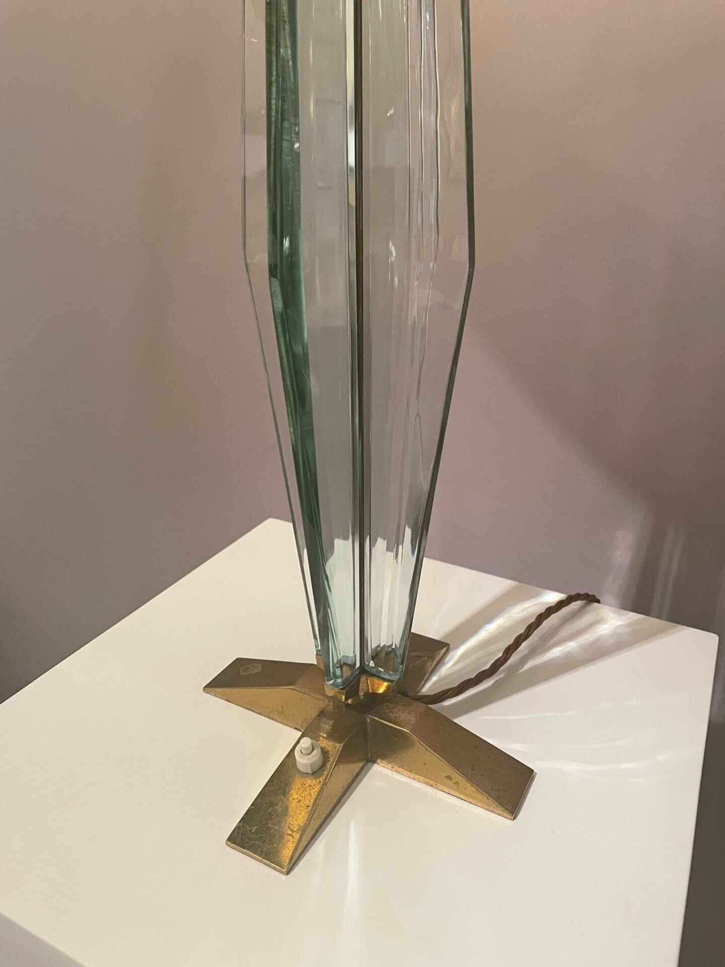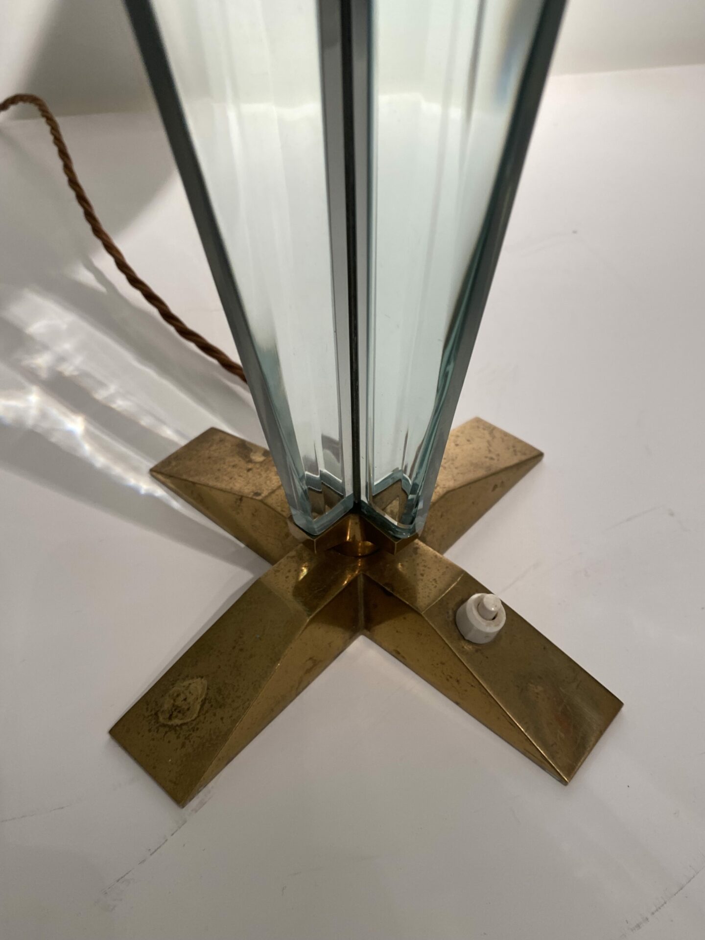 Max Ingrand (1908-1969) Rare pair of table Lamps Model 2048 nickelled brass and polished bevelled glass Produced by Fontana Arte c. 1956 Italy