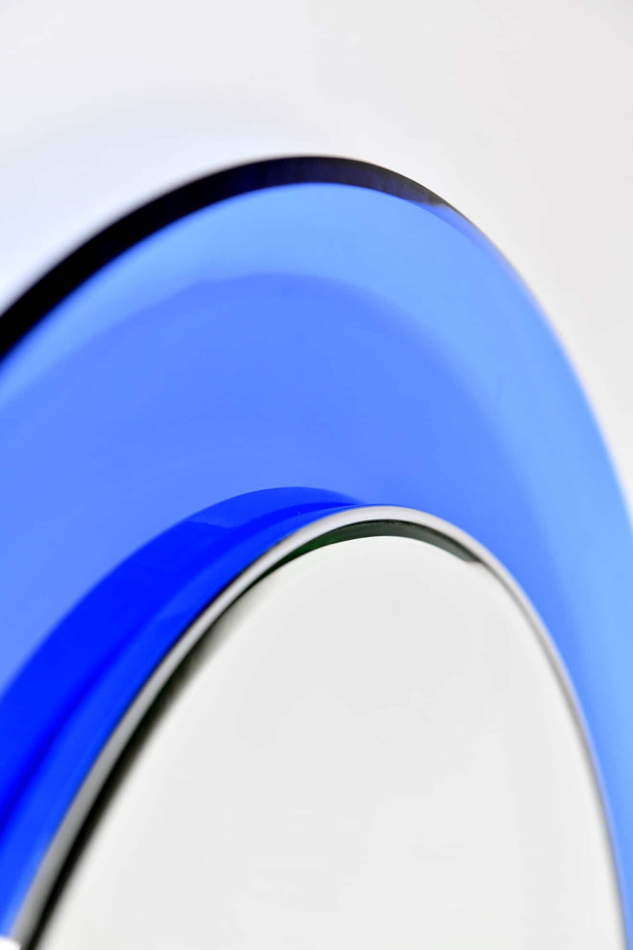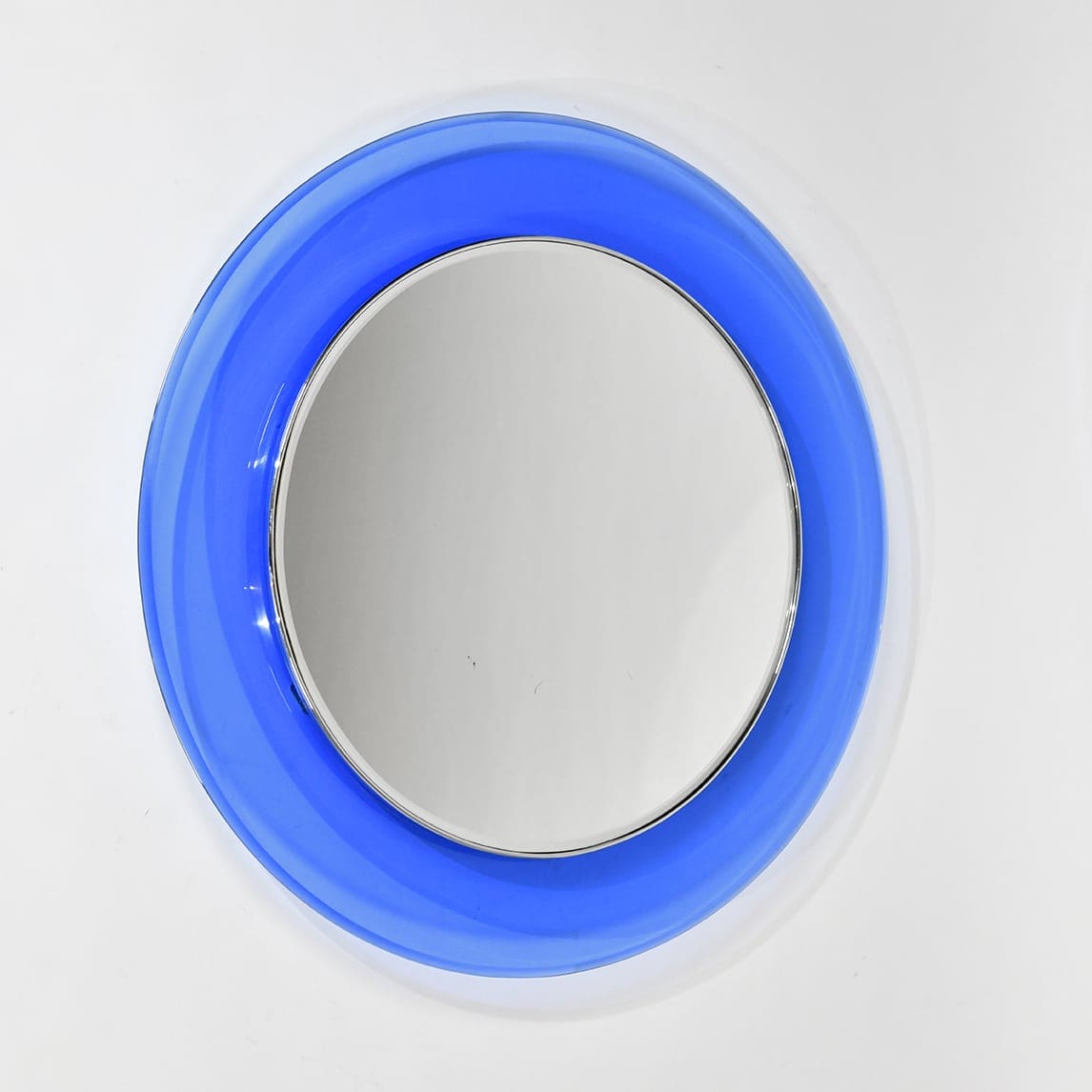 Concave glass mirror Coloured glass,mirrored glass and chromed brass. Produced by Fontana Arte Italy c 1964