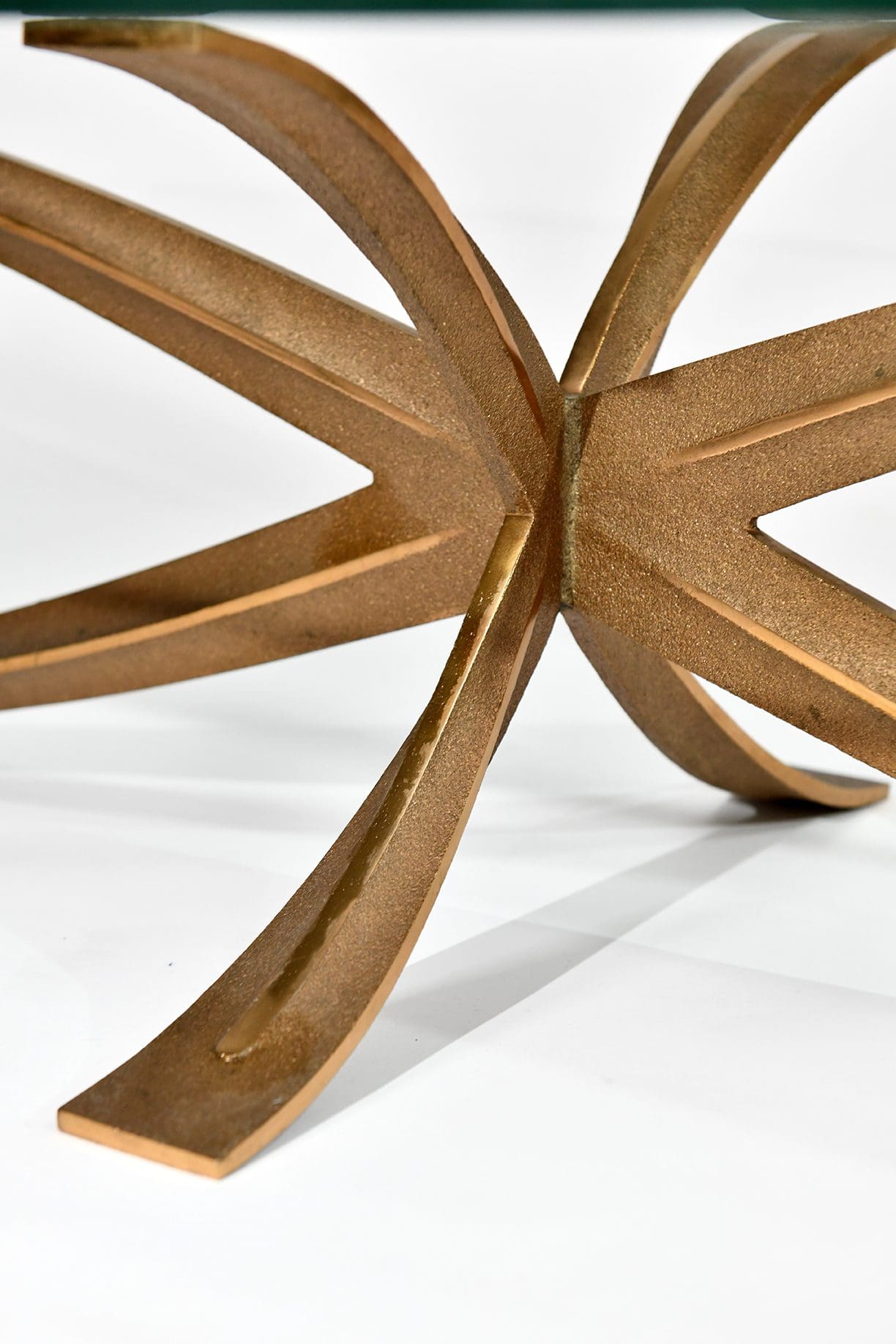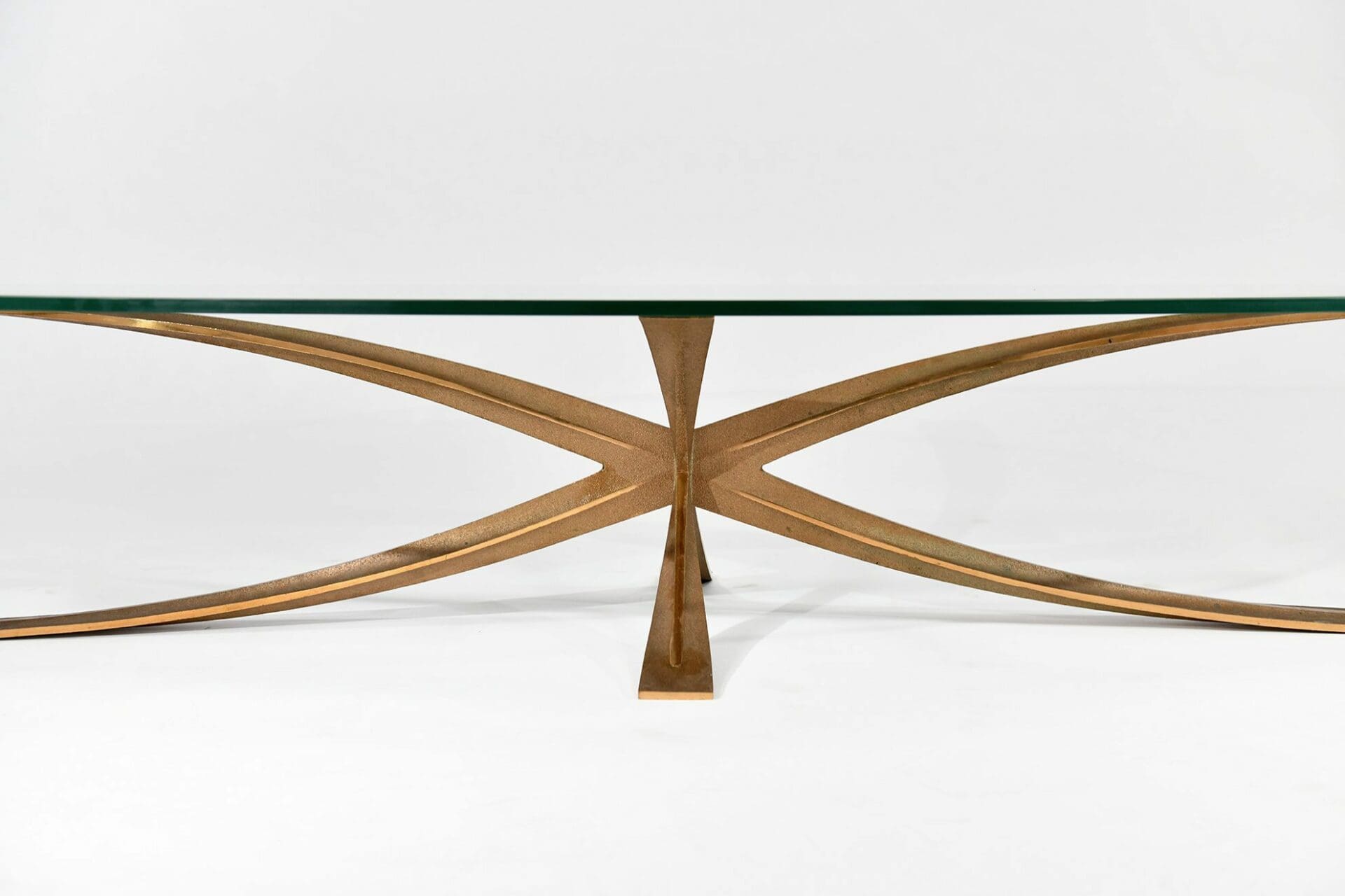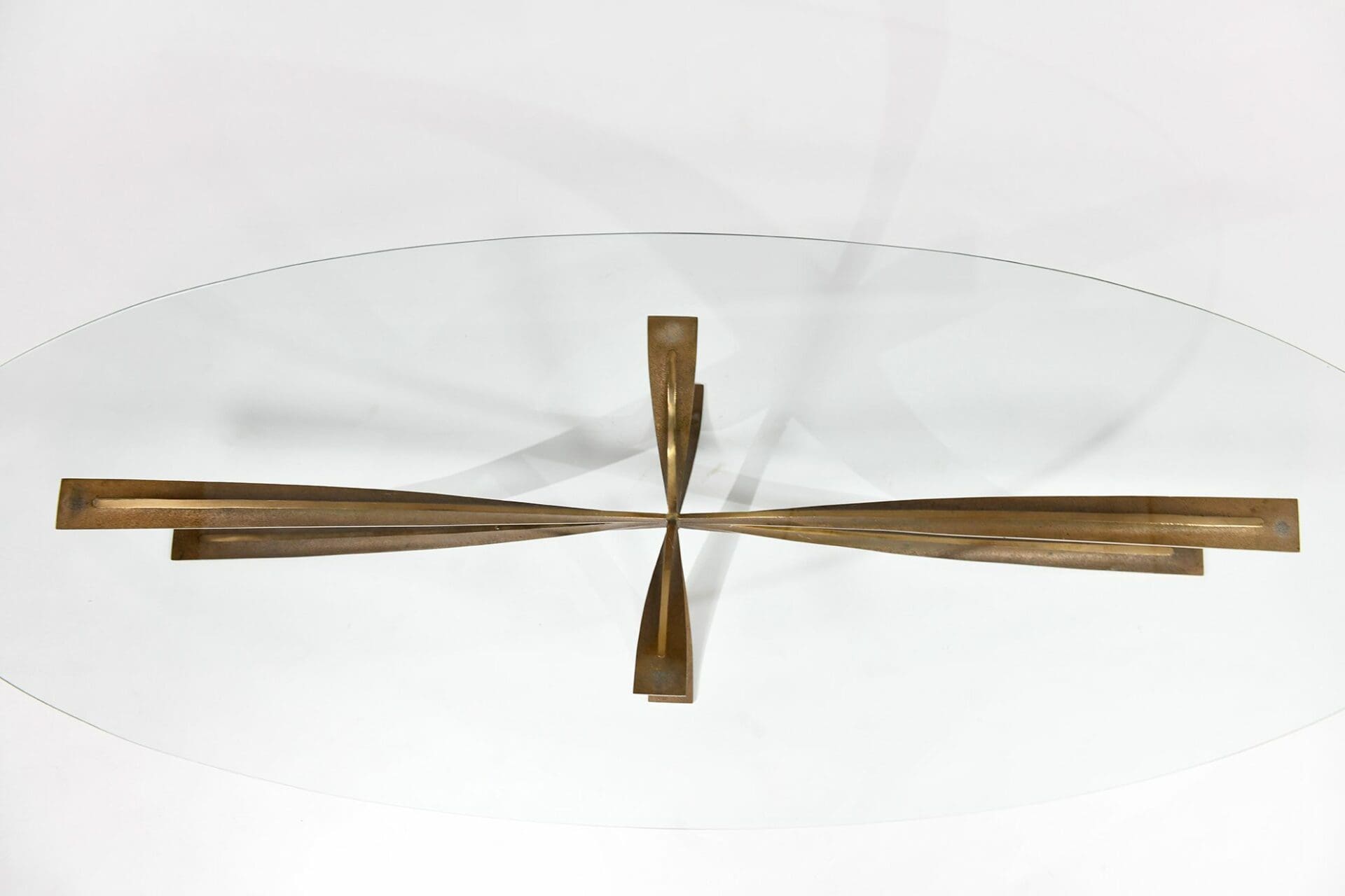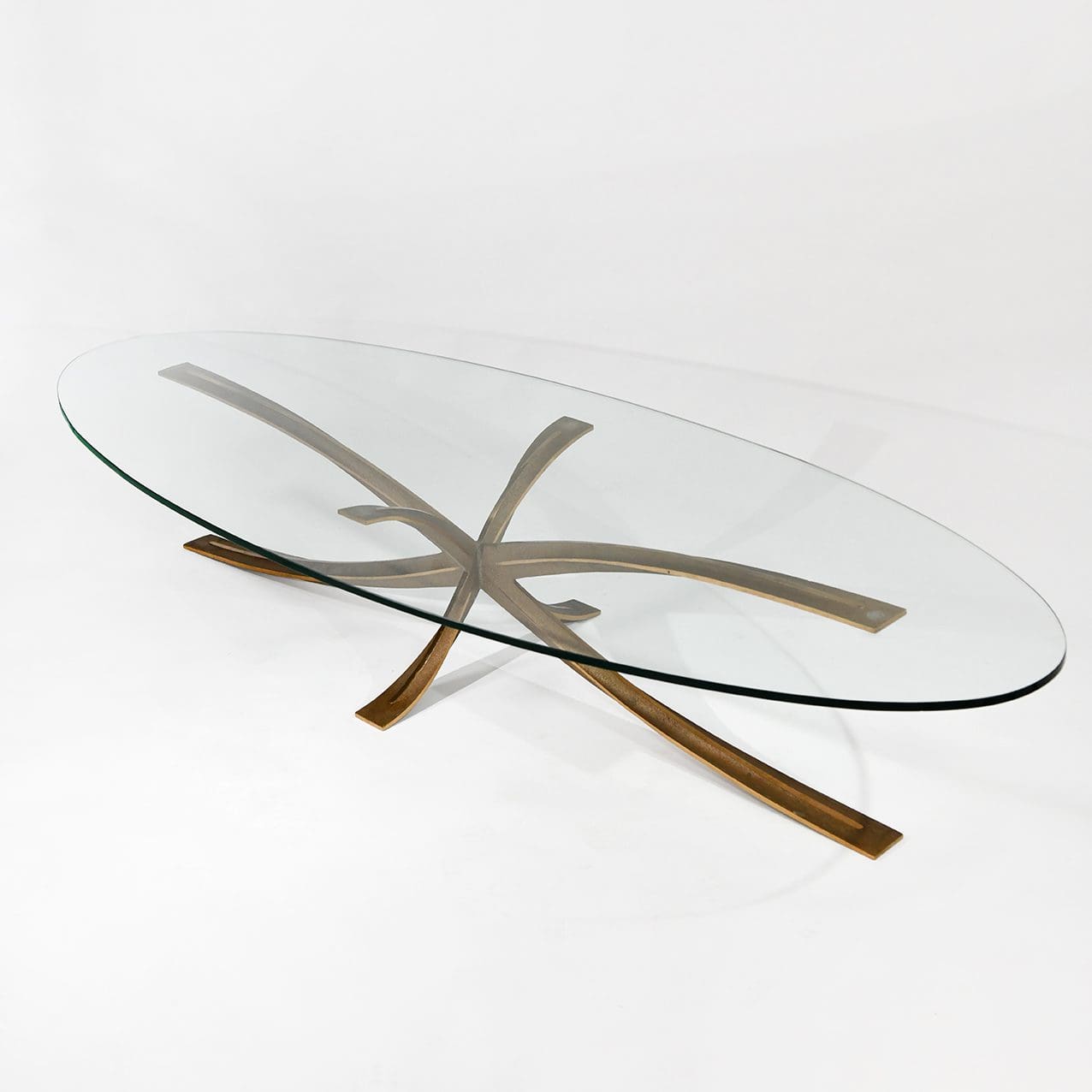 Oval Coffee Table in Patinated Bronze and Glass.