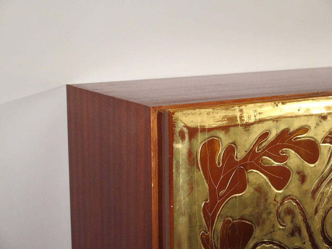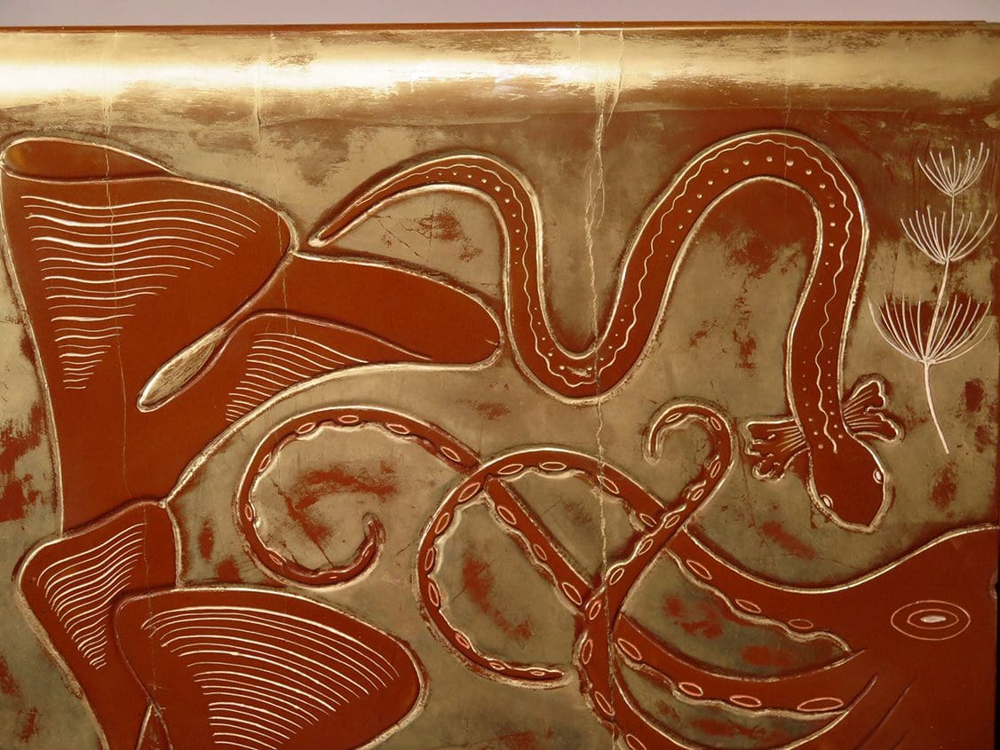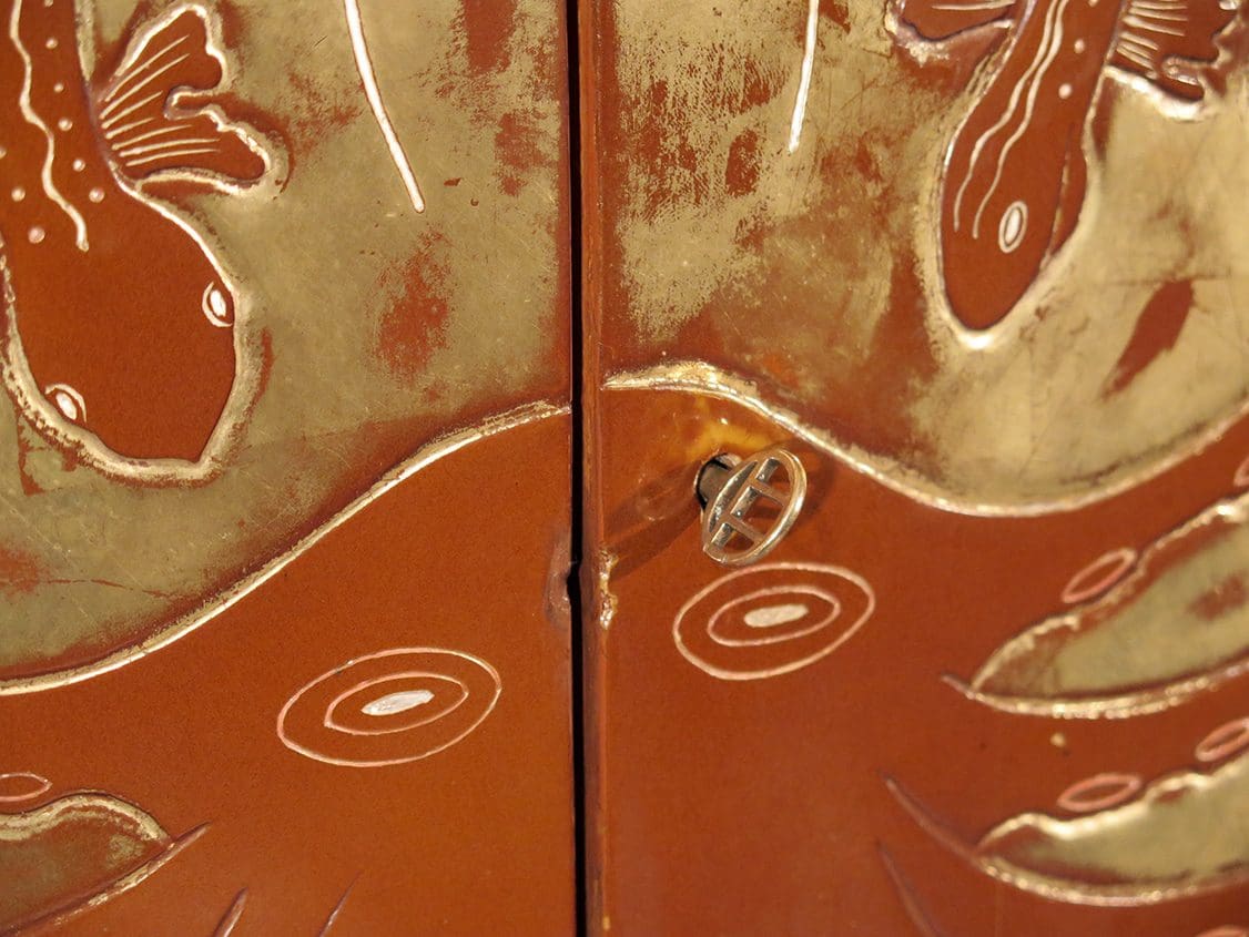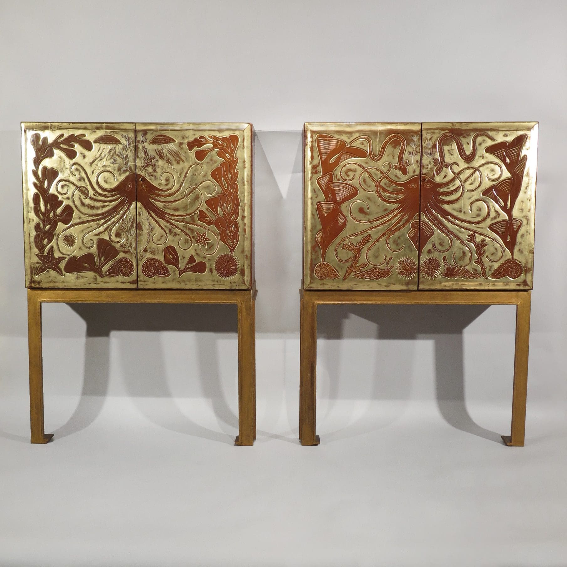 Rare pair of gilt lacquered cabinets with marine decorations