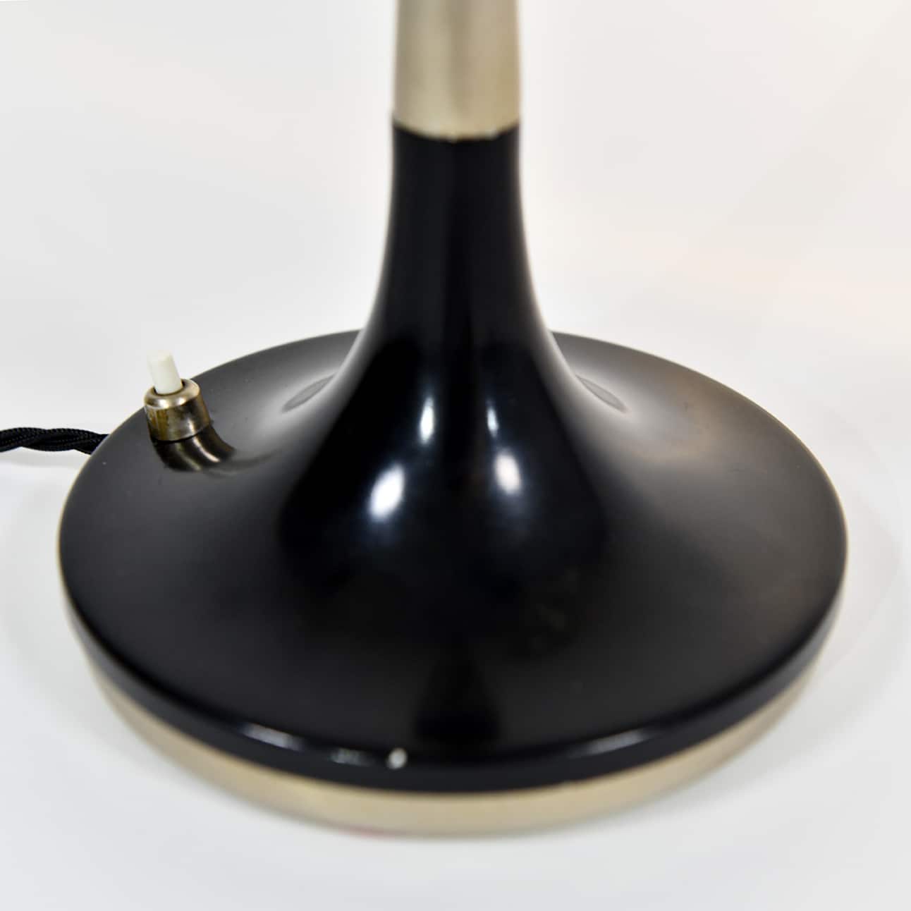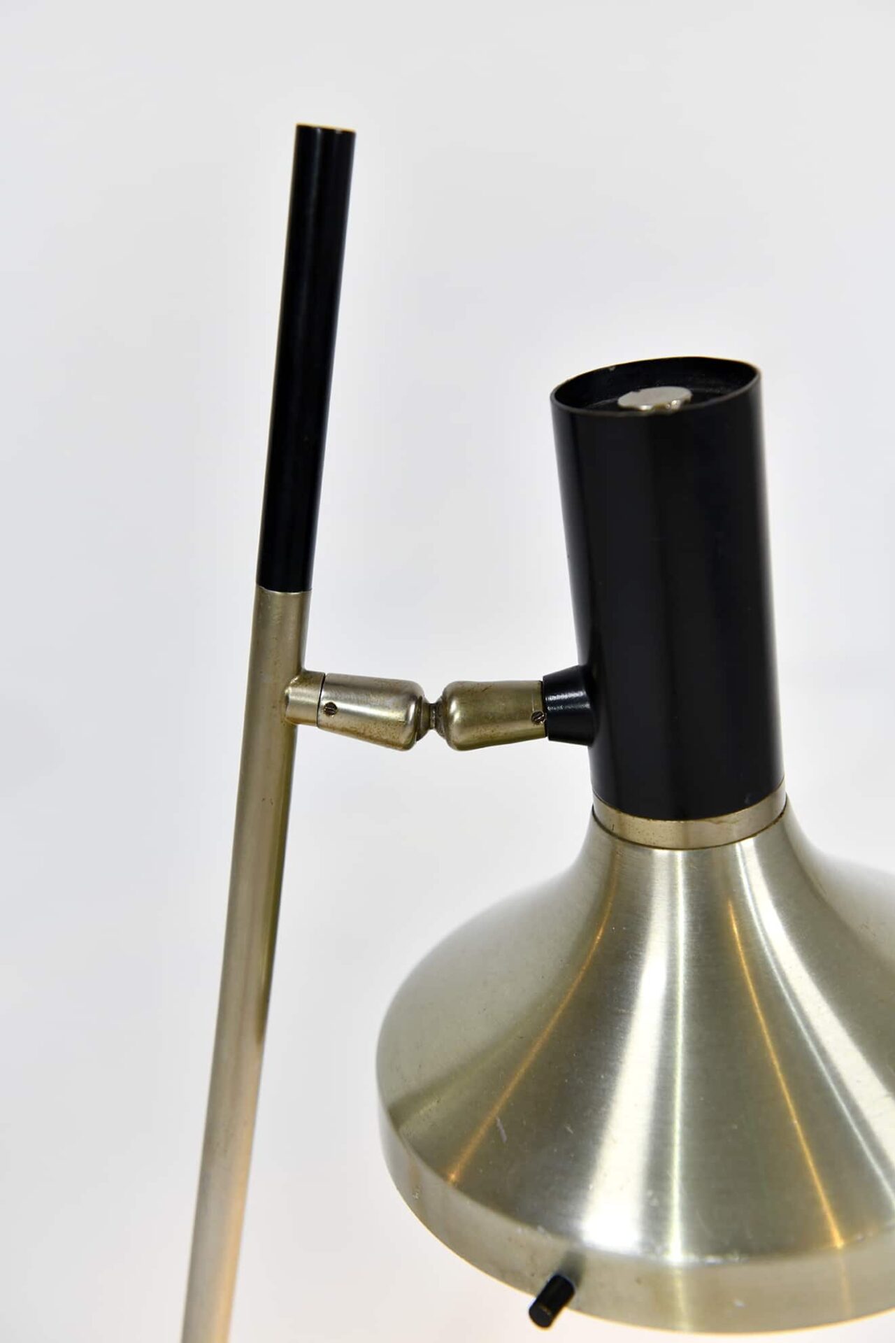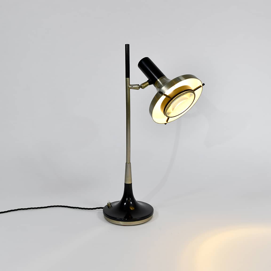 Oscar Torlasco Desk lamp in nickelled brass, nickelled and painted aluminium with glass lens. Model 553, Edited by Lumi. Italy c 1960