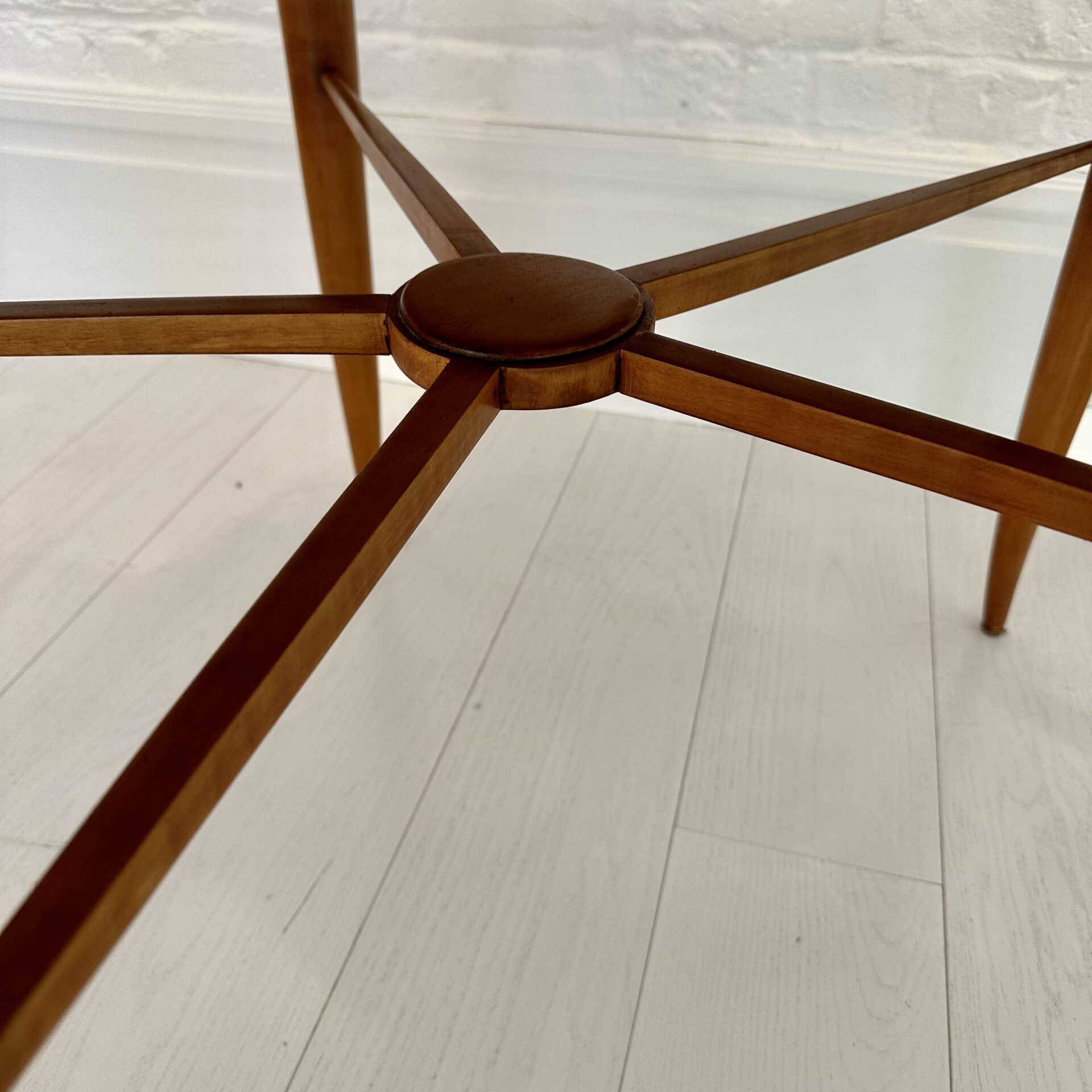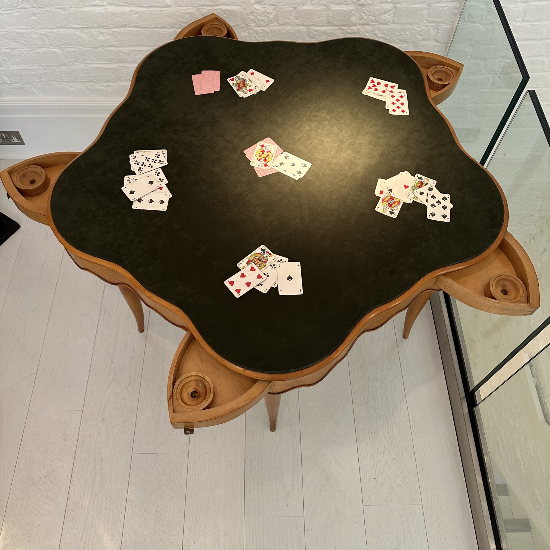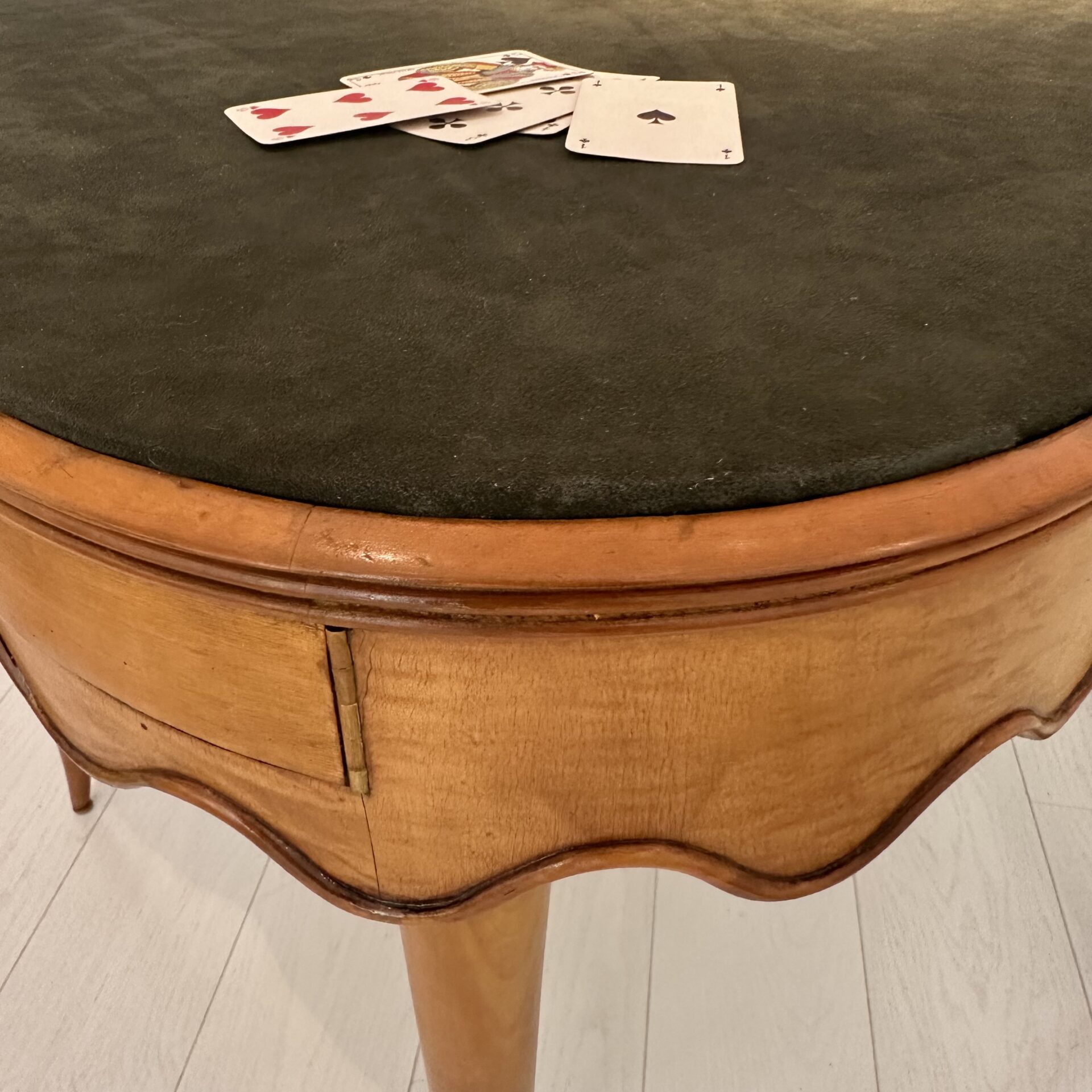 Attributed to Paolo Buffa (1903-1970) Rare games table Games table with scalloped edge and five drawers, the top inset with green faux suede Maple wood and faux suede c. 1950 Italy