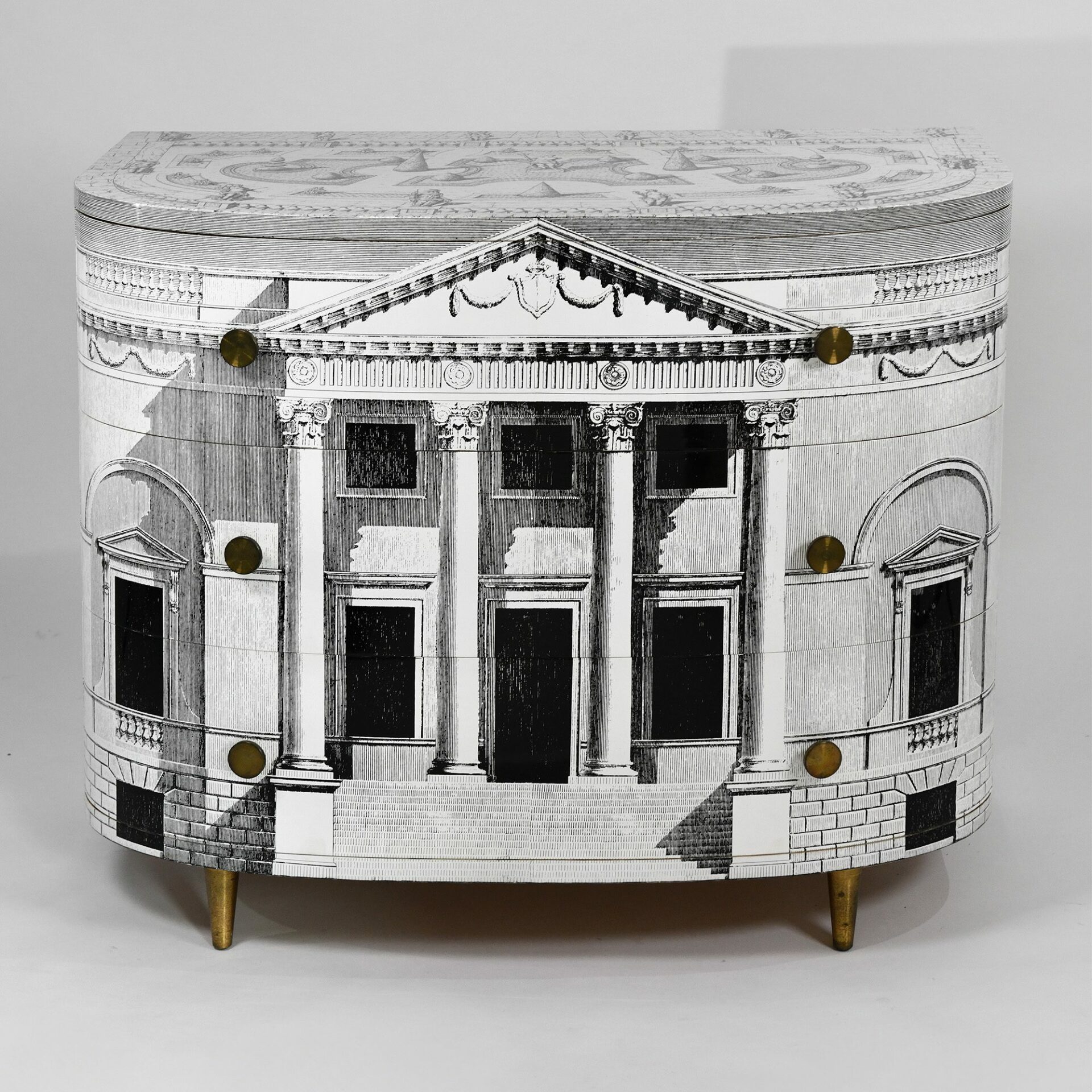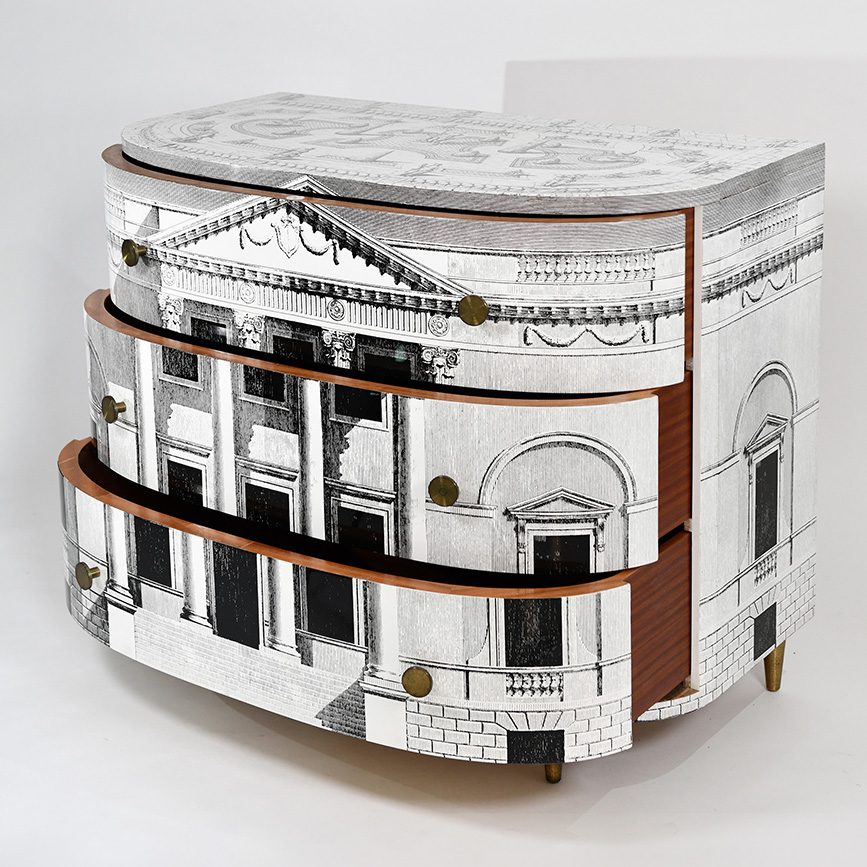 Interior of top drawer with plastic roundel impressed logo and ‘FORNASETTI/MILANO’