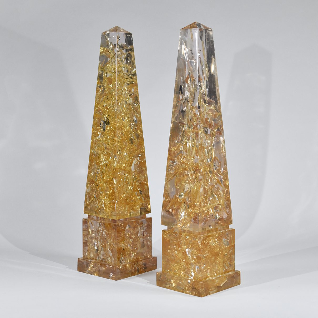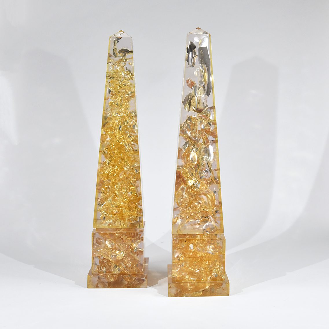 Attributed to Pierre Giraudon (1923-2012) Pair of impressive obelisks on square bases Fractal Resin c. 1970 France