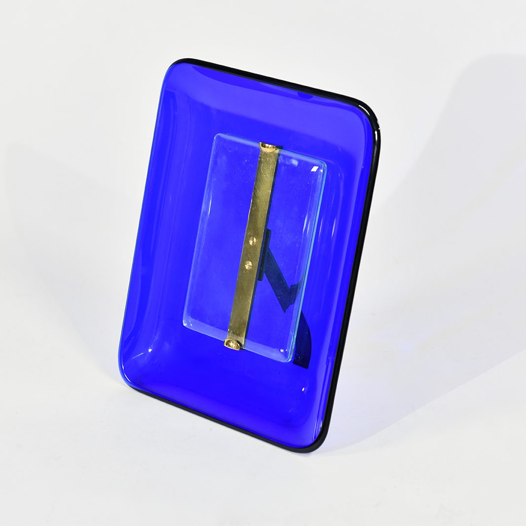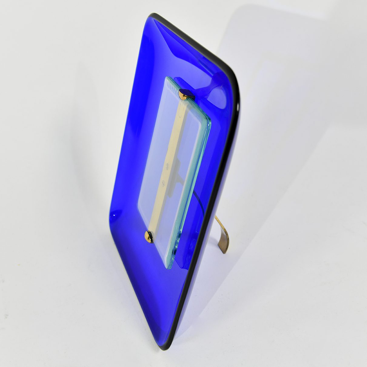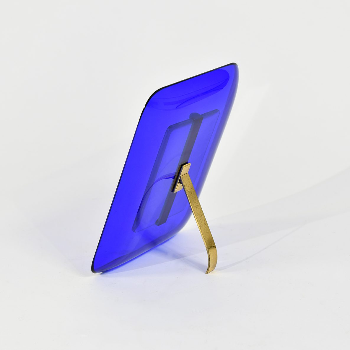 Blue glass and brass portrait photo frame